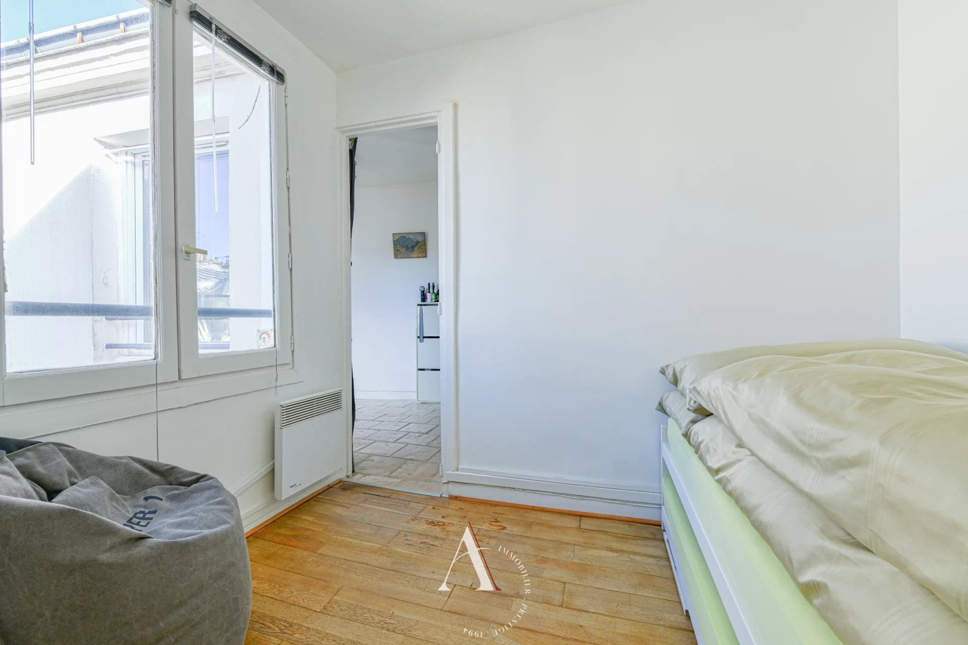 Rue Godot de Mauroy. Dans un Immeuble bien entretenu, au 6e et dernier étage sans ascenseur. Appartement F1 de 18 m² comprenant une cuisine dinatoire, une chambre et une salle d'eau avec wc sani-broyeur. Très bon état générale. Calme et clair vue ciel.