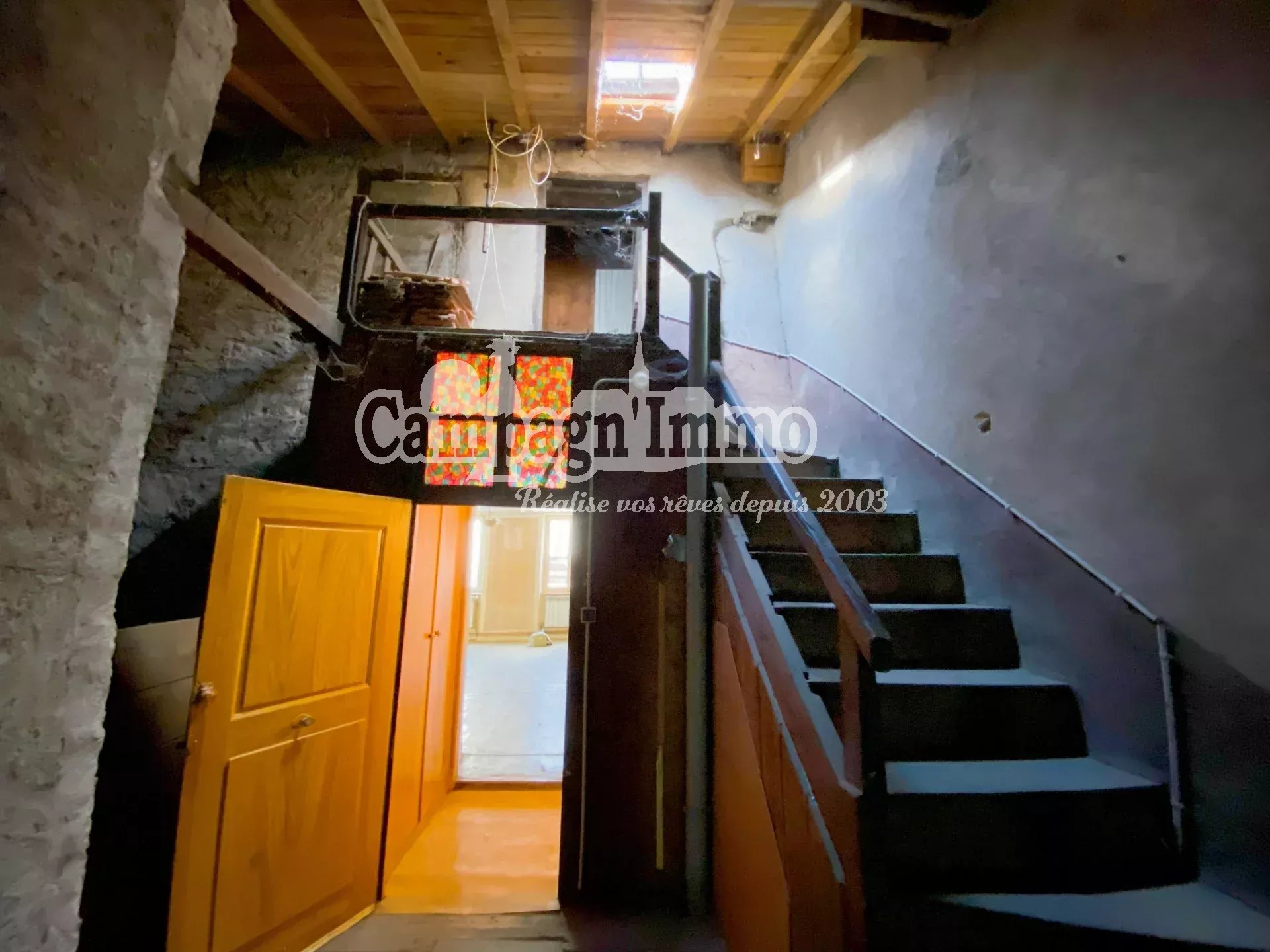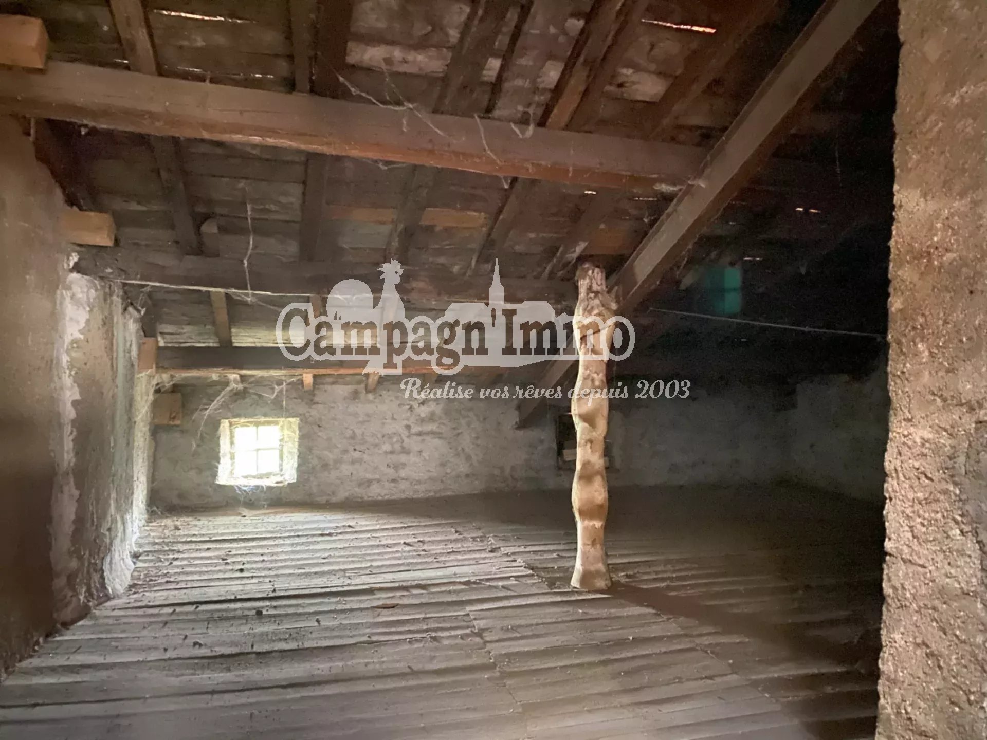 Au premier, une grande chambre, une dépendance non aménagée en sous-pente.