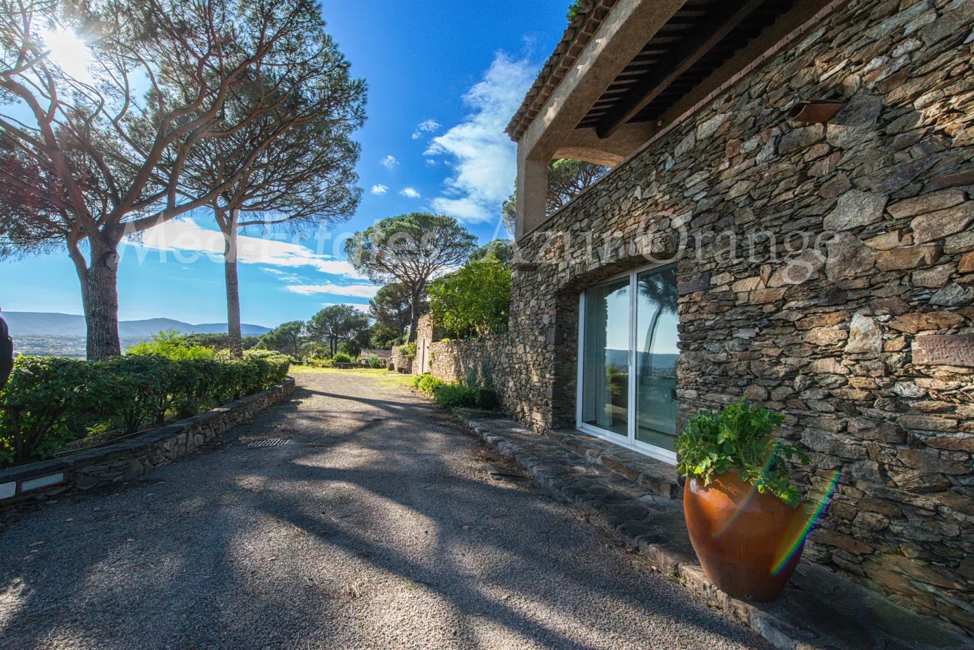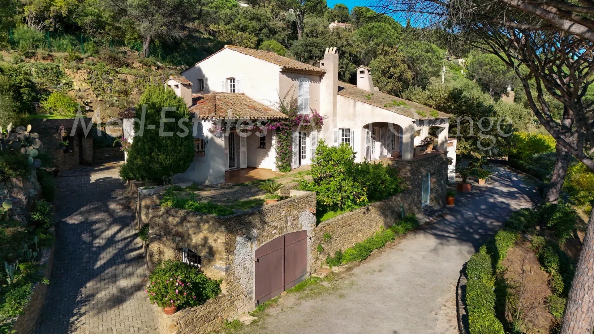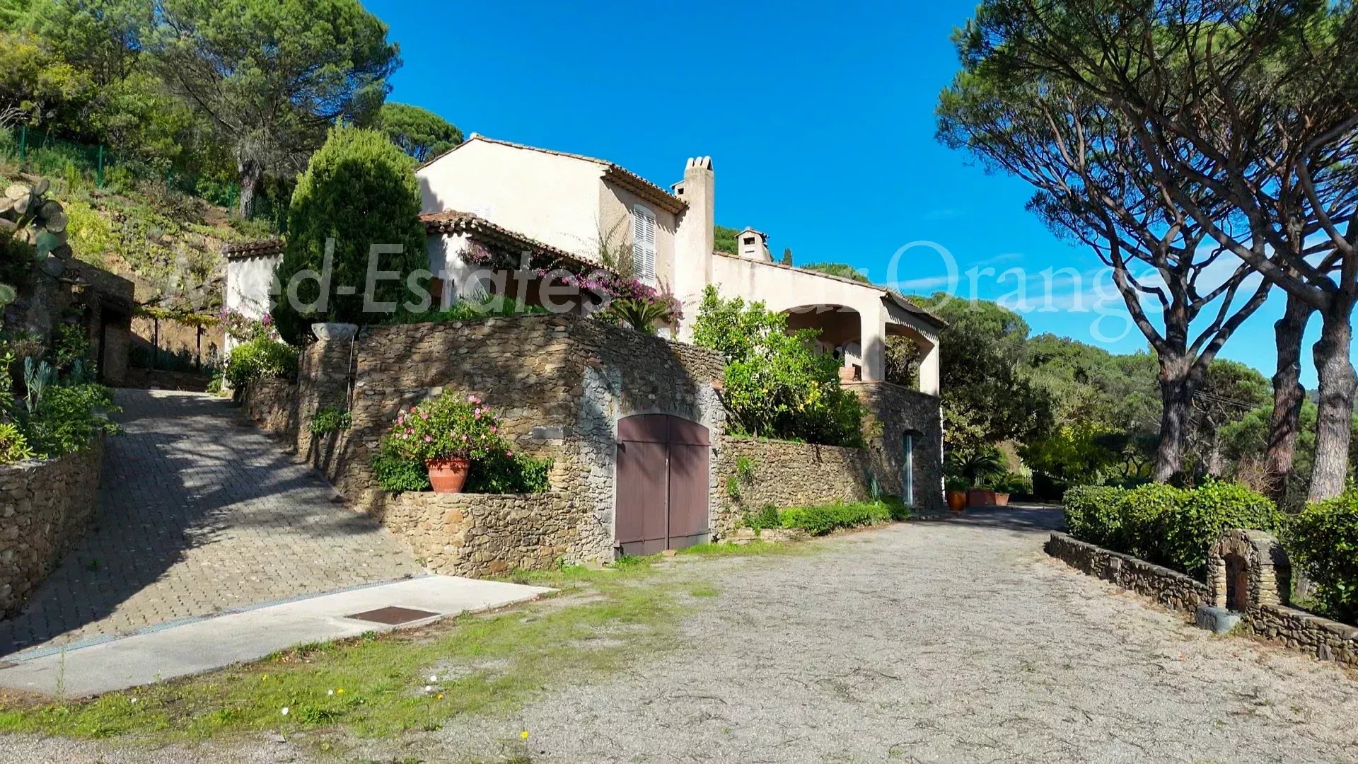 Cette villa provençale, édifiée sur trois niveaux, offre environ 300 m² de surface habitable sur un terrain de 4 086 m², avec vue panoramique sur la campagne et le château de Grimaud.