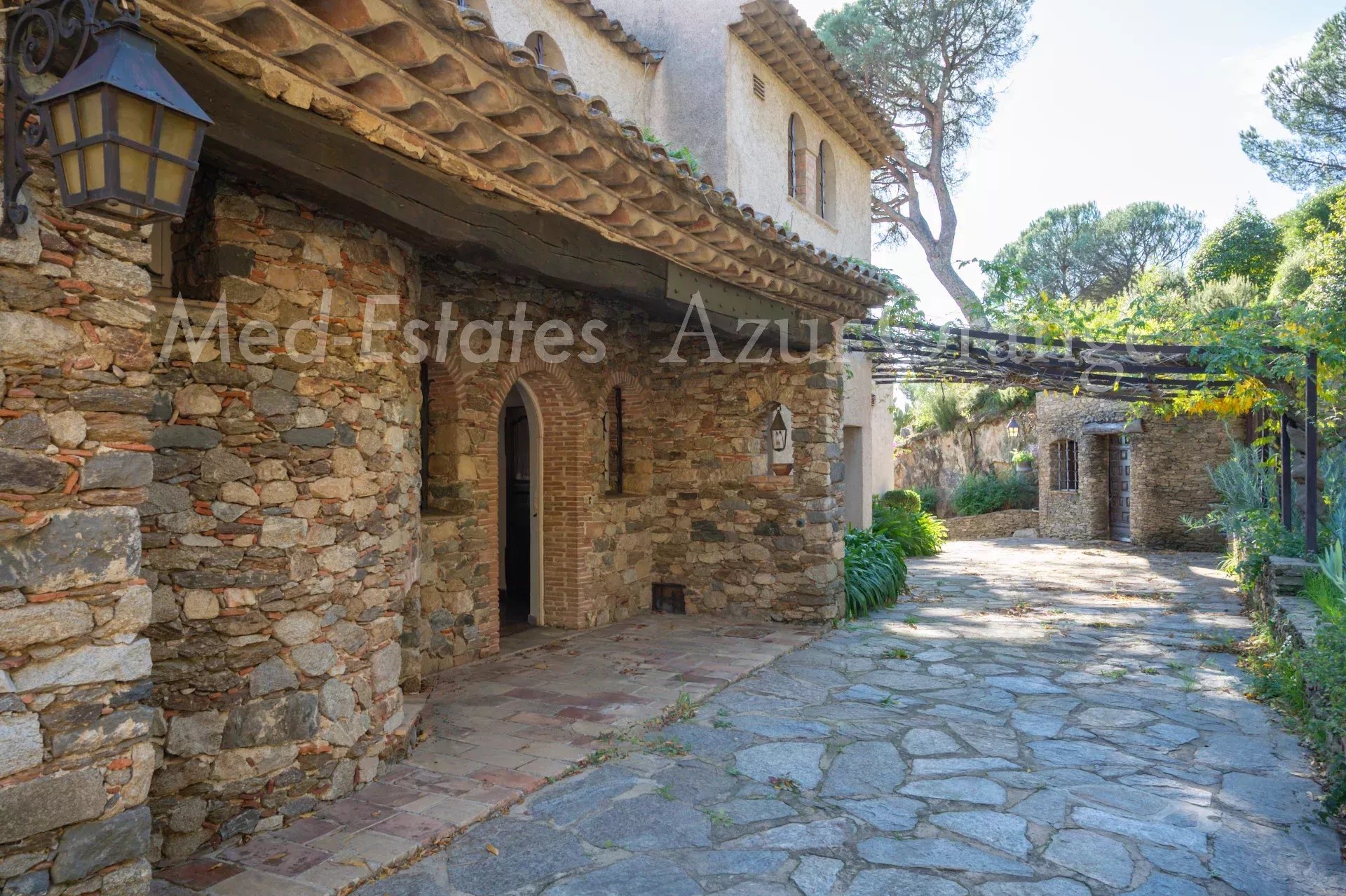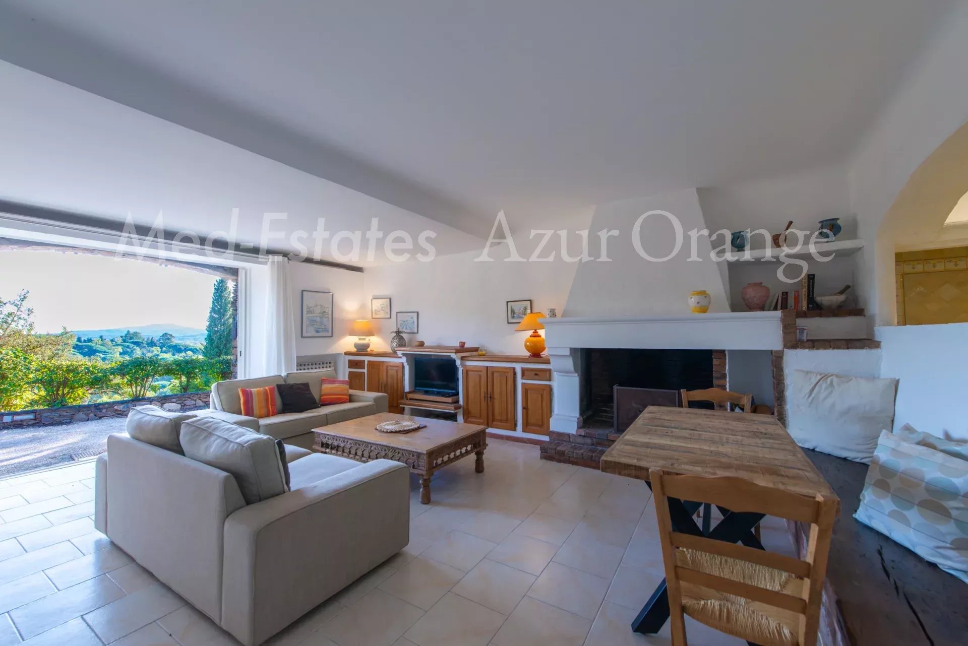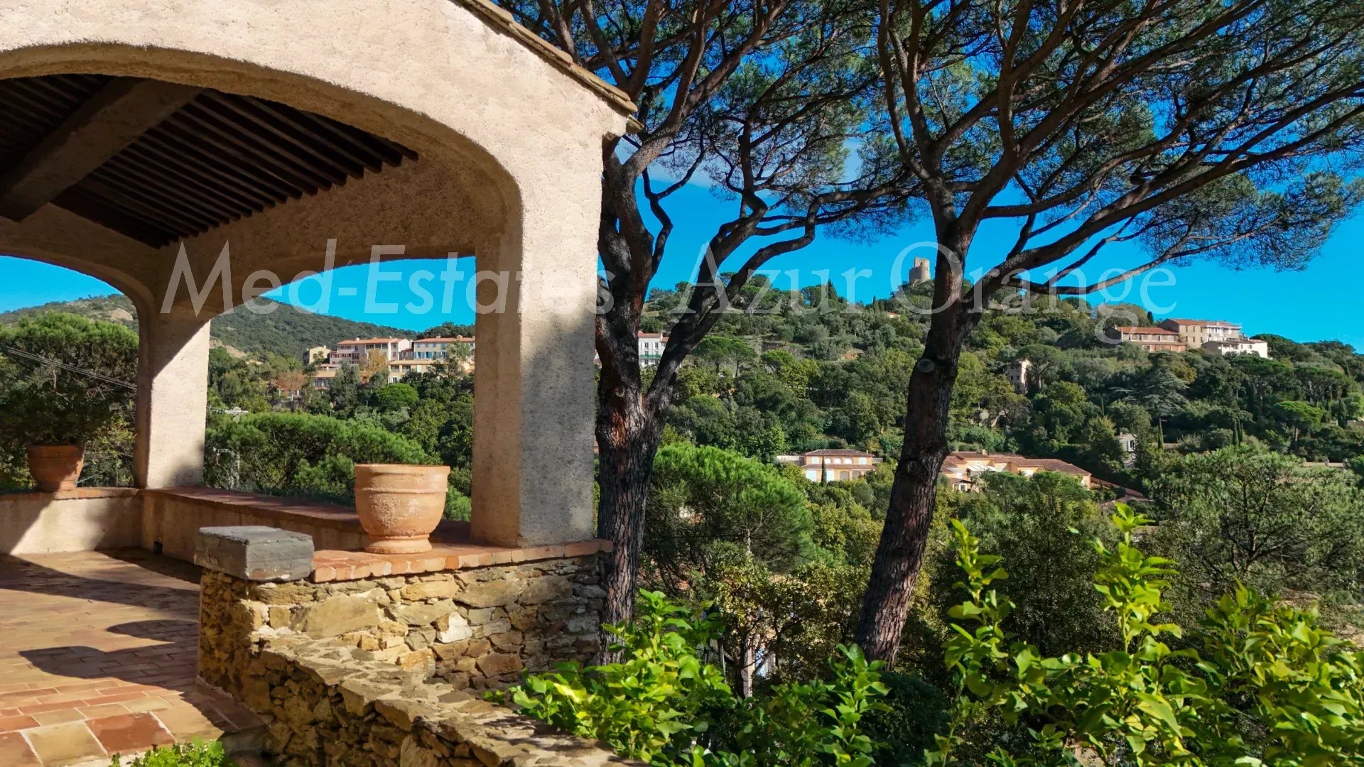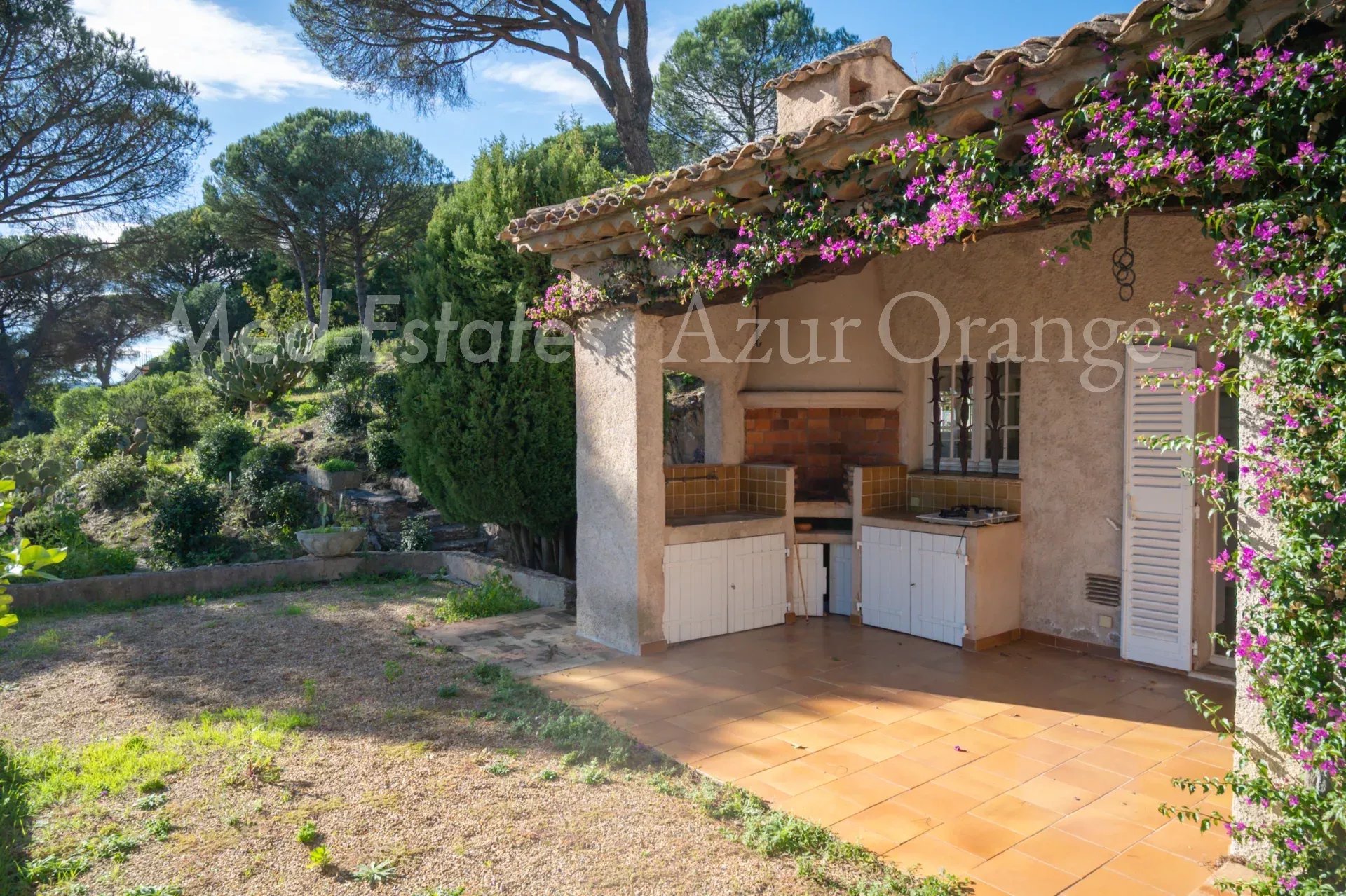 Cette villa provençale, édifiée sur trois niveaux, offre environ 300 m² de surface habitable sur un terrain de 4 086 m², avec vue panoramique sur la campagne et le château de Grimaud.