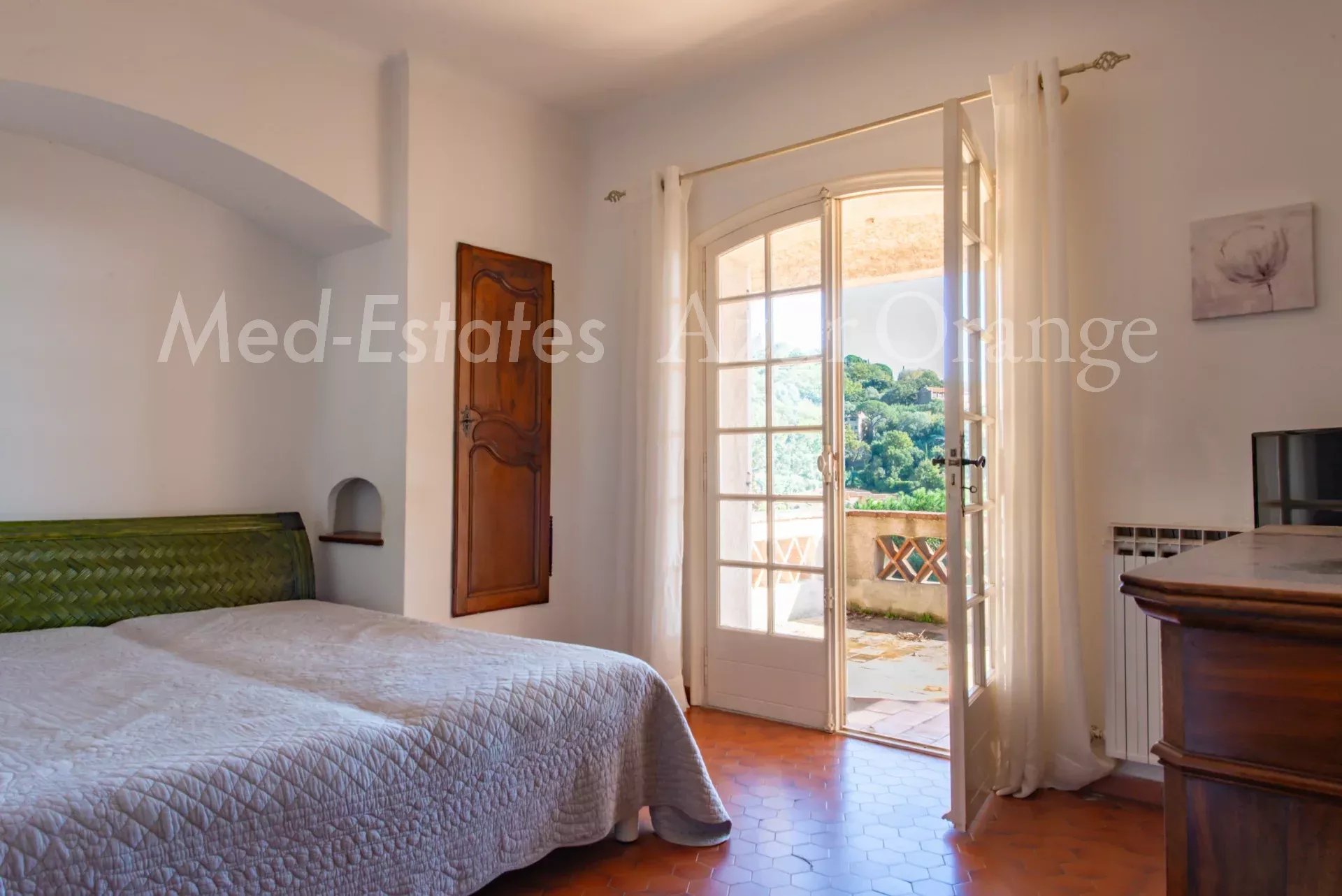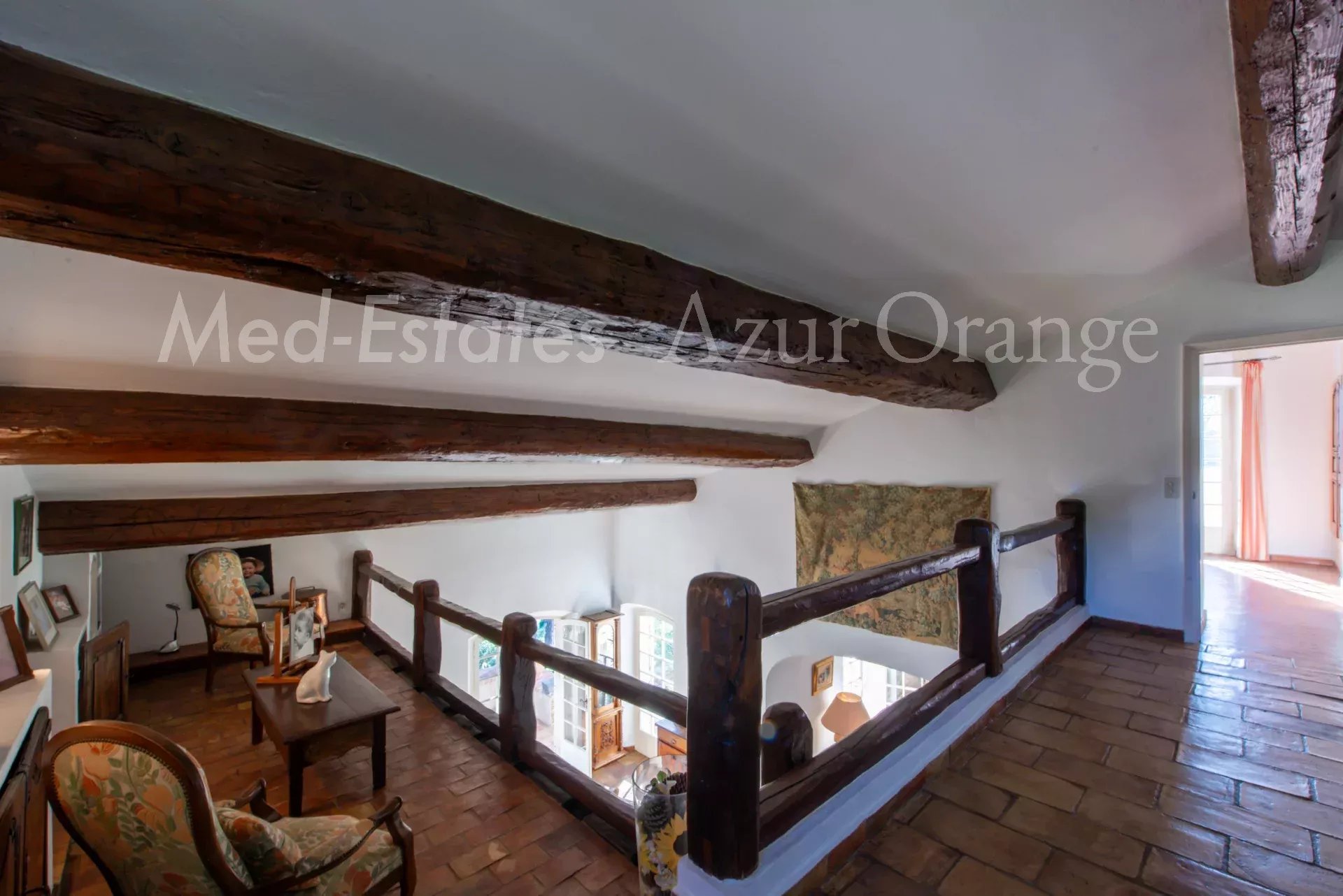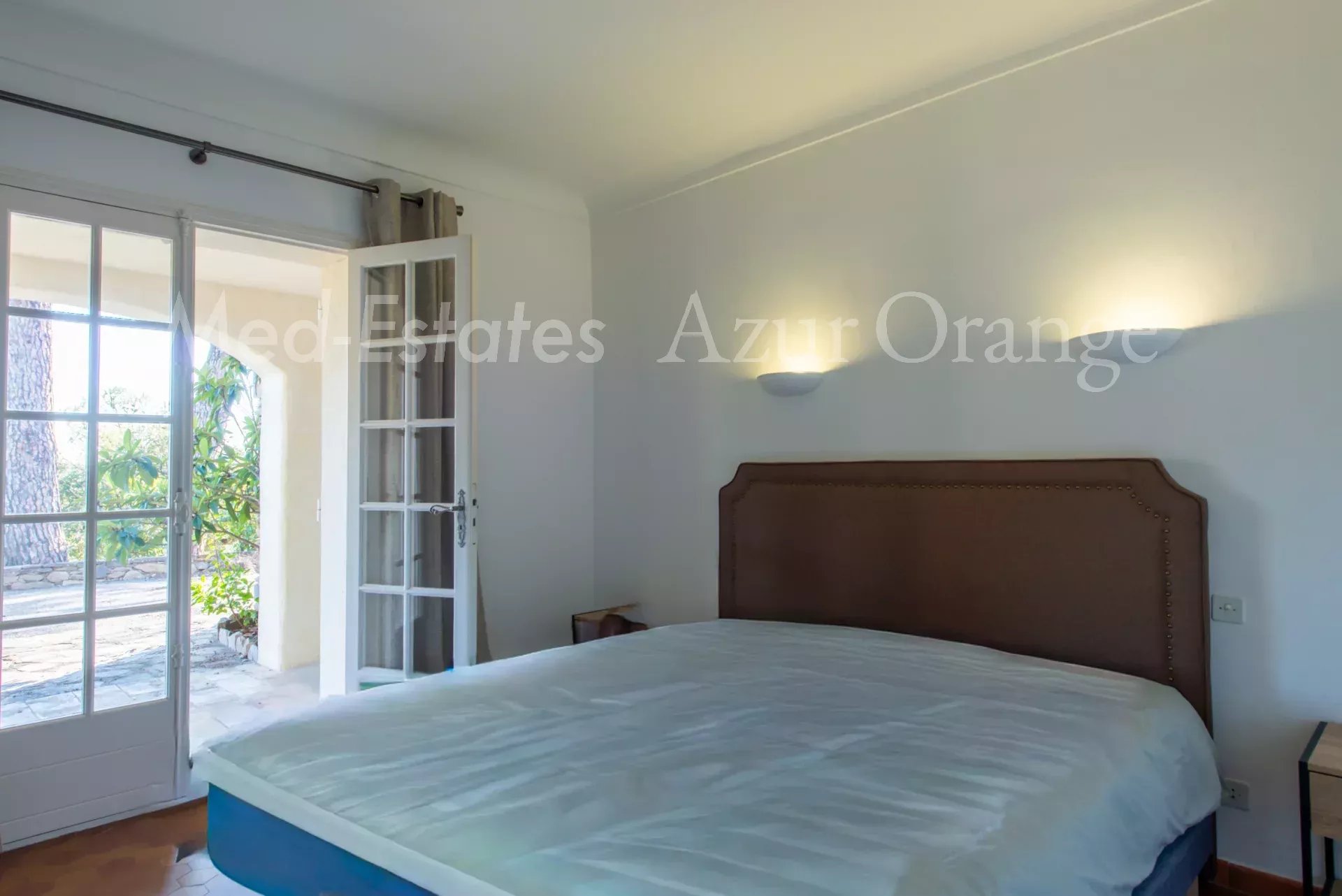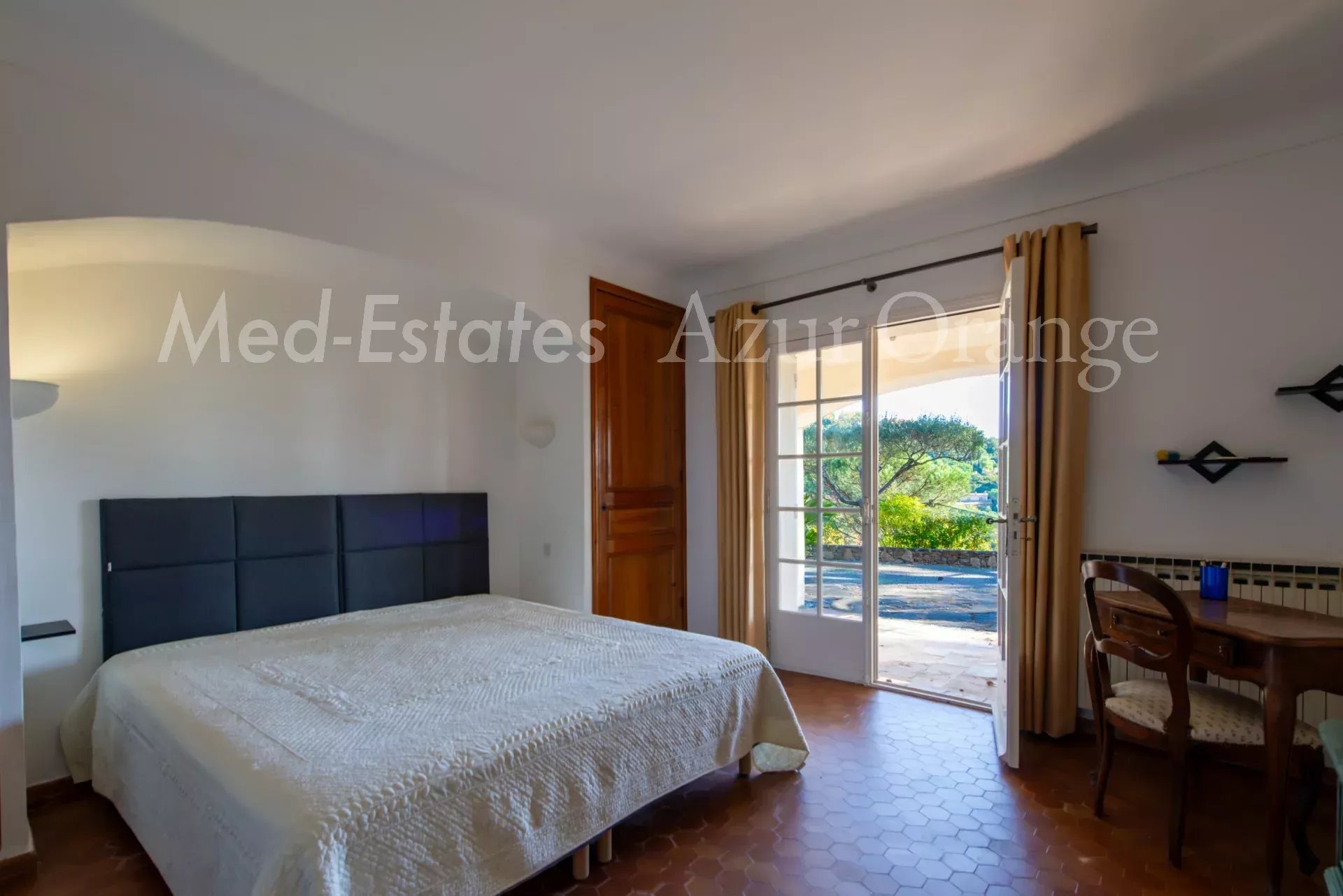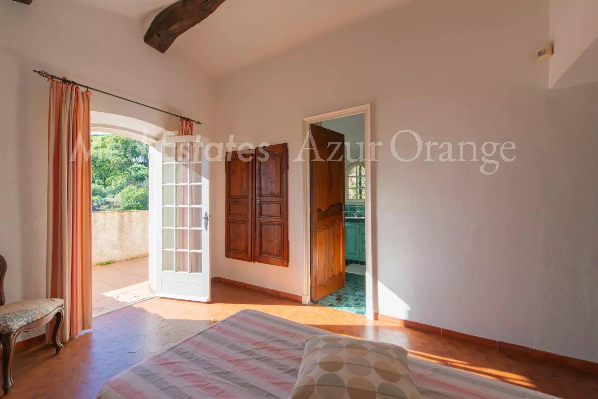 À l’étage, la suite parentale dispose d’une salle de bains complète, terrasse tropézienne et espace bureau/détente.