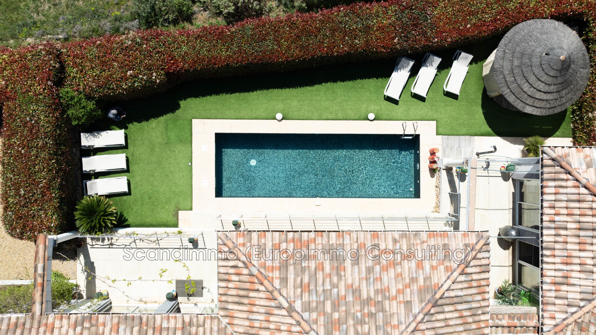 Le terrain de 4 150 m², clos, paysager et planté de nombreux arbres fruitiers, abrite aussi une grande terrasse de 75 m², une piscine maçonnée (9x3 m) sans vis-à-vis, un gazebo, ainsi qu'un studio indépendant actuellement aménagé en bureau. Idéal pour recevoir famille et amis, ou envisager un revenu locatif.