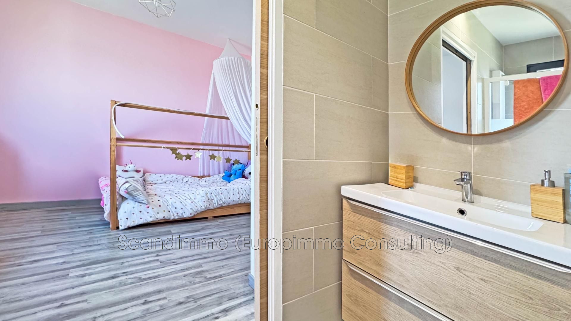 Côté nuit, deux chambres partagent une salle d'eau accessible depuis chacune, tandis que la suite parentale bénéficie de sa propre salle d'eau et de son WC.
