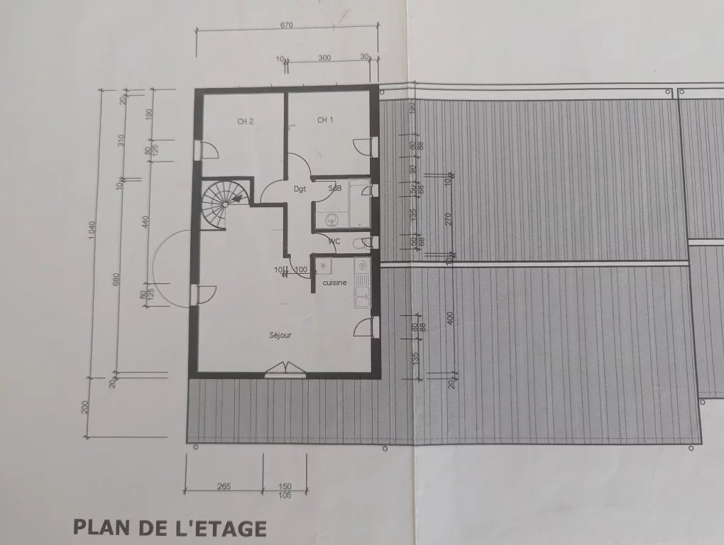 - Au premier étage un appartement de 3 pièces pour une surface d'environ 65 m2 disposant d'une pièce de vie, une cuisine ouverte, de 2 chambres et une salle d'eau-wc.