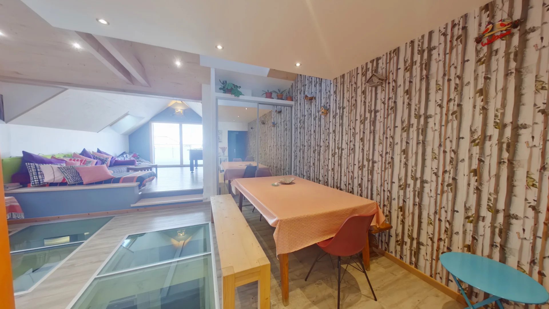 - Au 1er étage, une salle à manger, un salon avec sa grande baie vitrée donnant sur une terrasse, une chambre, un sanitaire.