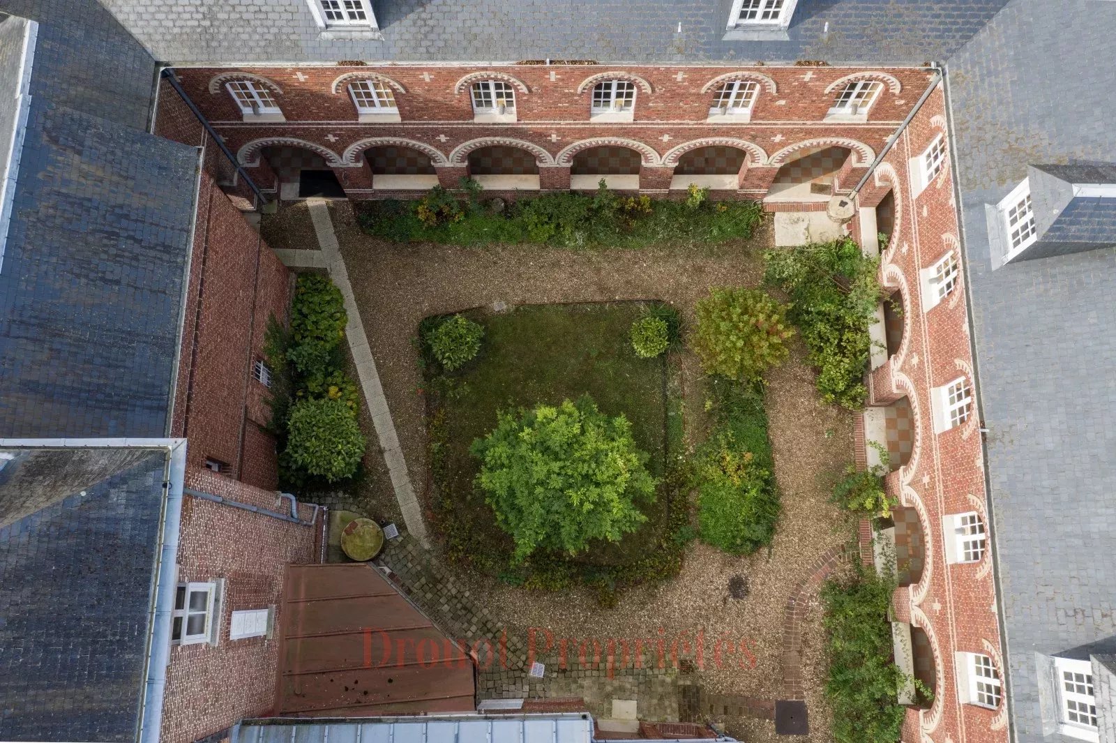 IMMEUBLE - ANCIEN MONASTÈRE DU XIXe SIECLE Situé à proximité immédiate du centre ville de Beauvais, ancien carmel datant de 1892 d'une surface de 2000 m² habitables répartis sur quatre niveaux. Cette élégante bâtisse en brique, surmontée d'une toiture en ardoise, se compose de trois ailes entourant un cloître, d'une chapelle et d'une grande maison de gardien indépendante (180 m²) marquant l'entrée de la propriété. Elle est édifiée au coeur d'un beau parc arboré clos de murs (environ 10000 m²). Libre d'occupation, cet ensemble immobilier en bon état général peut facilement se prêter à différents projets : immeuble d'habitation, hôtel, résidence étudiante ou sénior, coliving, coworking, école, etc.