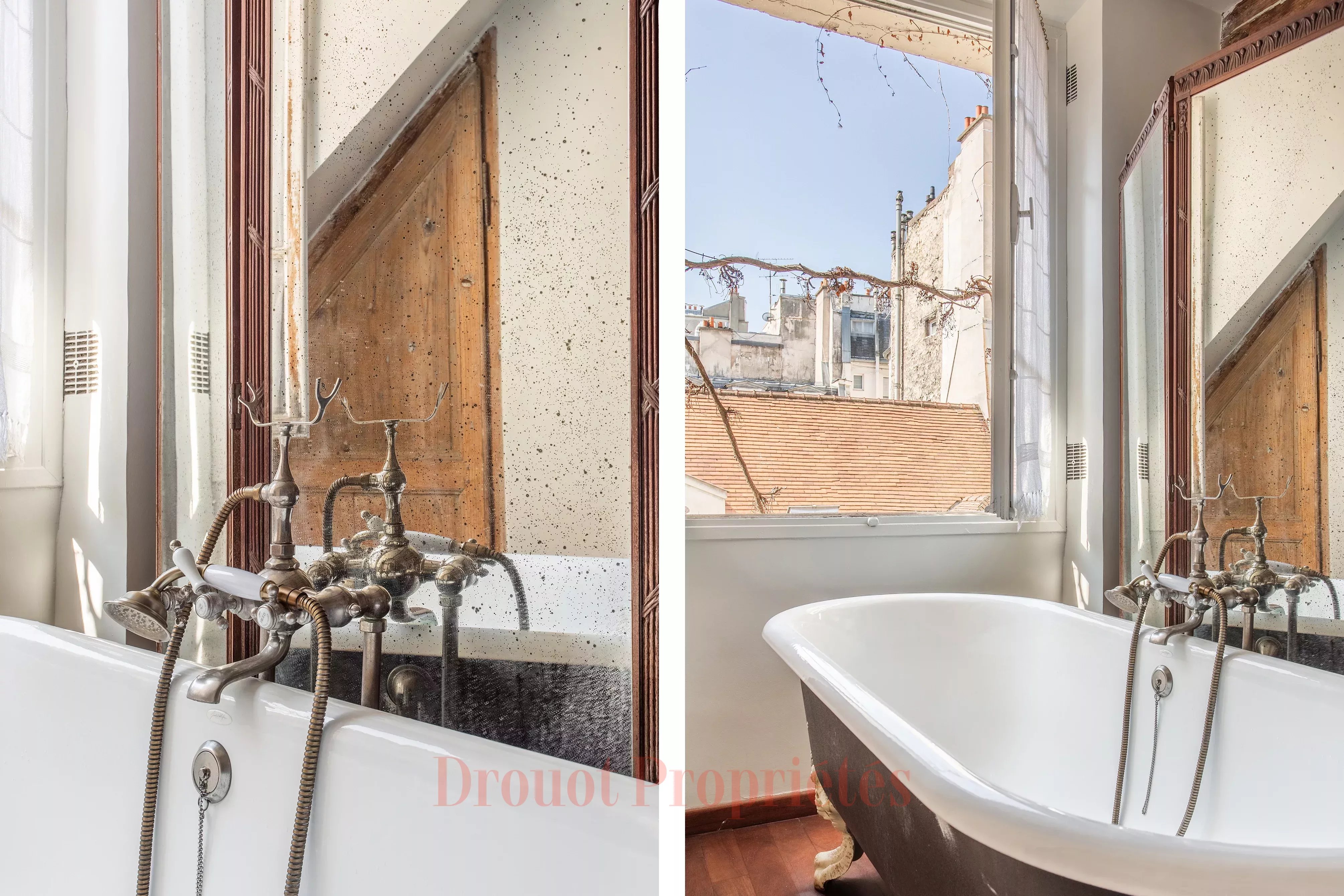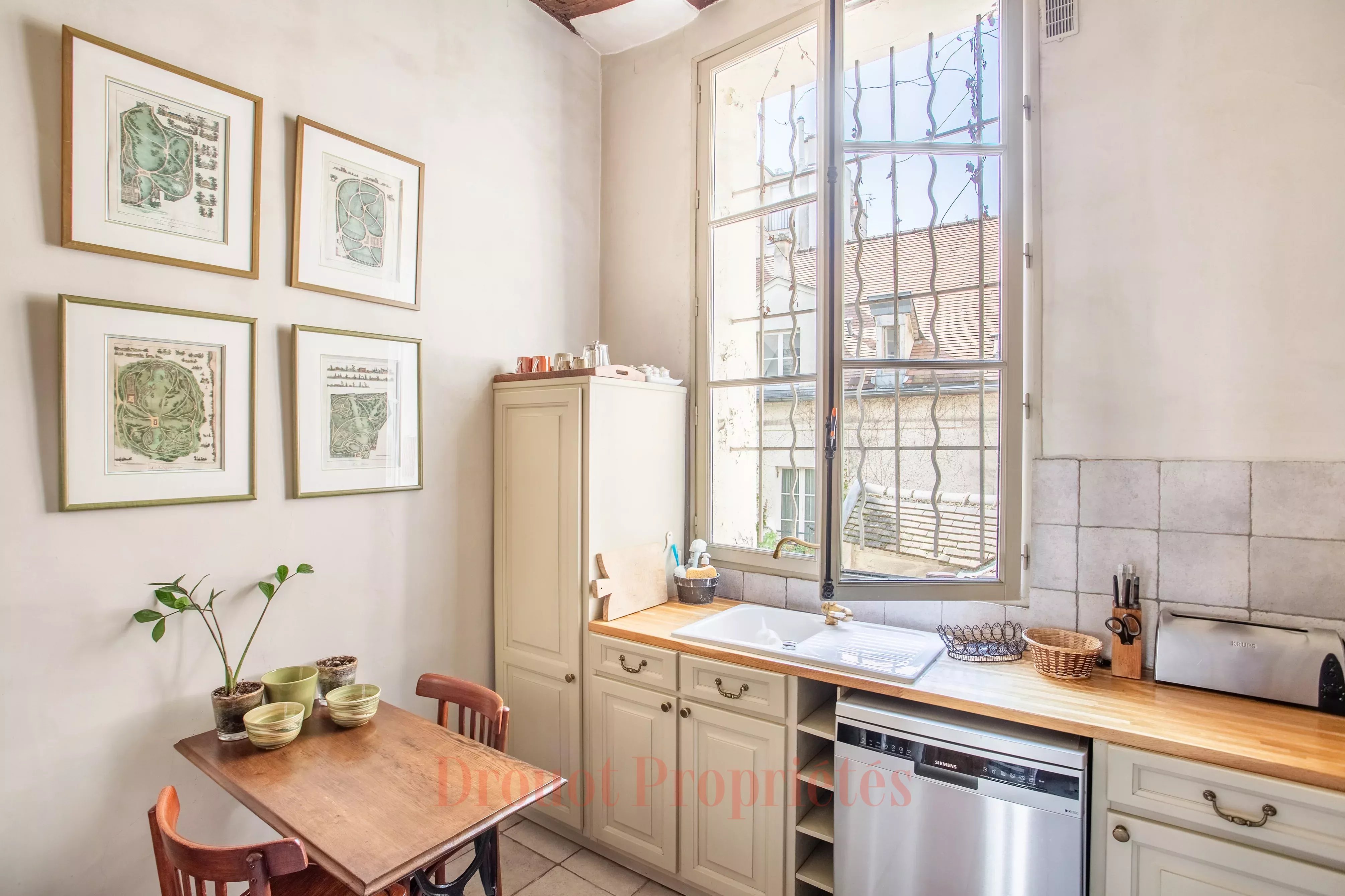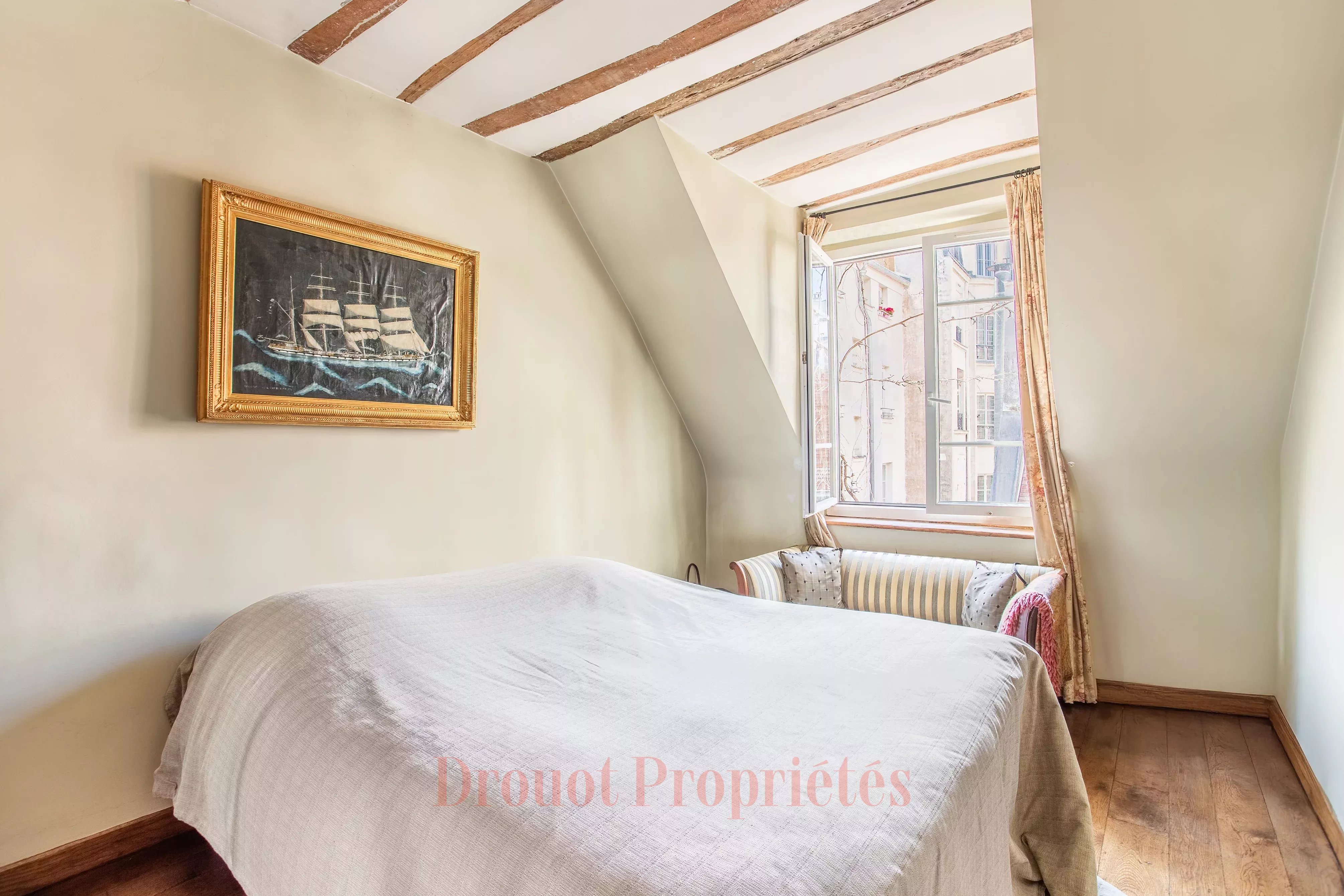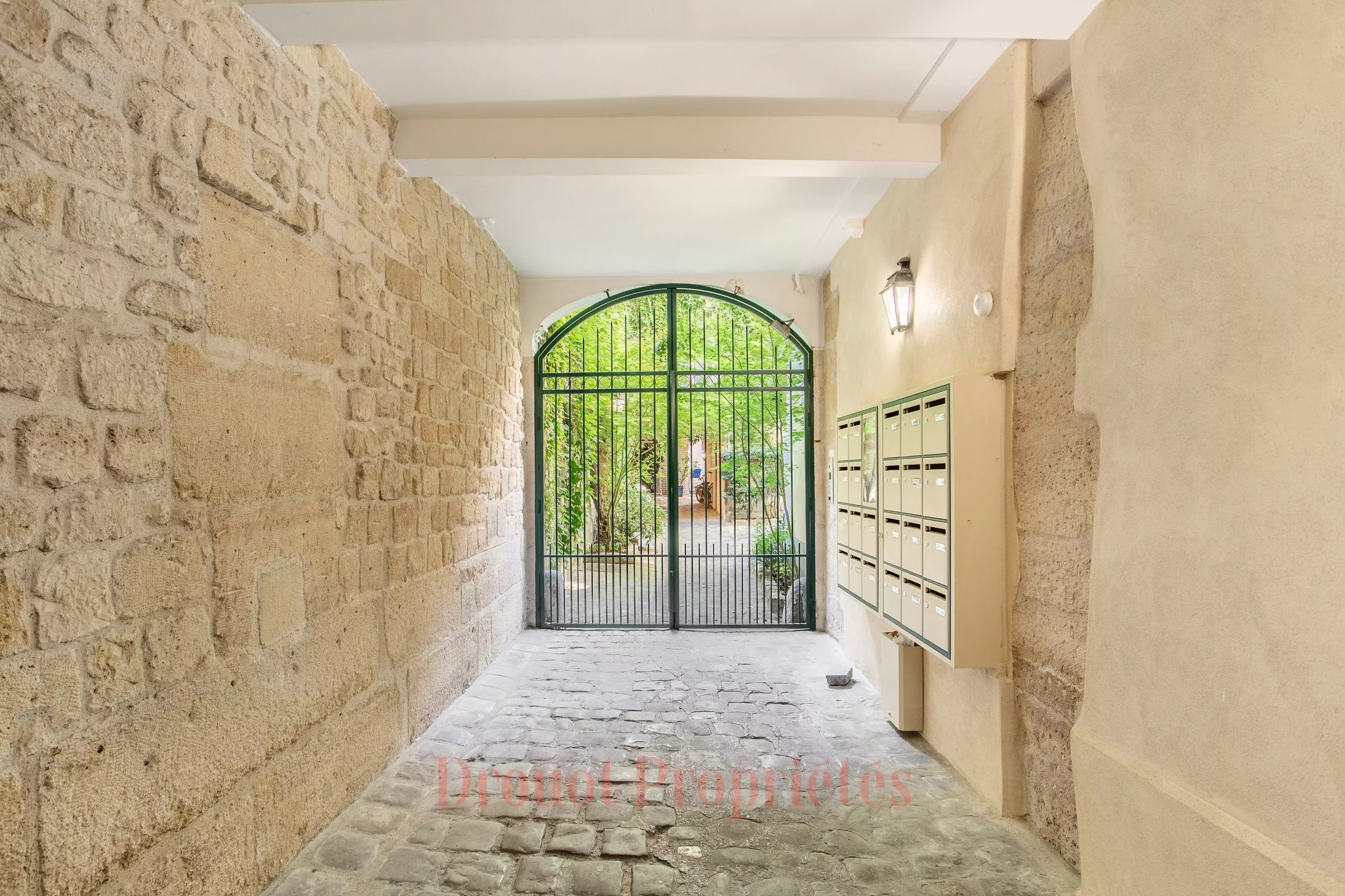 DUPLEX TRAVERSANT- ODEON- CALME- Situé en plein cur du 6ème arrondissement, magnifique duplex traversant aux 2ème et 3ème étages d'un immeuble du 17ème siècle, dont les parties communes étaient les anciennes écuries d'Henri IX. Une très belle porte cochère cloutée d'époque donne accès à une cour arborée où se trouve un puits classé aux monuments historiques. L'appartement, qui a gardé ses éléments authentiques d'origine (poutres apparentes, portes en bois, etc.), bénéficie d'une agréable distribution et de volumes remarquables (hauteur sous plafond de 4 mètres). Il se compose au premier niveau d'un grand salon lumineux avec cheminée, d'une cuisine dinatoire donnant sur la cour arborée et assurant un dépaysement immédiat. Un escalier intérieur conduit à l'étage supérieur composé d'un grand bureau et de deux vastes chambres avec leurs salles de bains attenantes donnant sur l'église Saint-Sulpice. Deux grands greniers, directement accessibles par l'escalier, et deux grandes caves complètent ce bien. Possibilité, en sus, de racheter les parties communes à ces niveaux, permettant d'être ainsi le seul occupant des 2ème et 3ème étages. Un lieu hors du temps, une page d'histoire pour un bien exceptionnel et plein de charme.