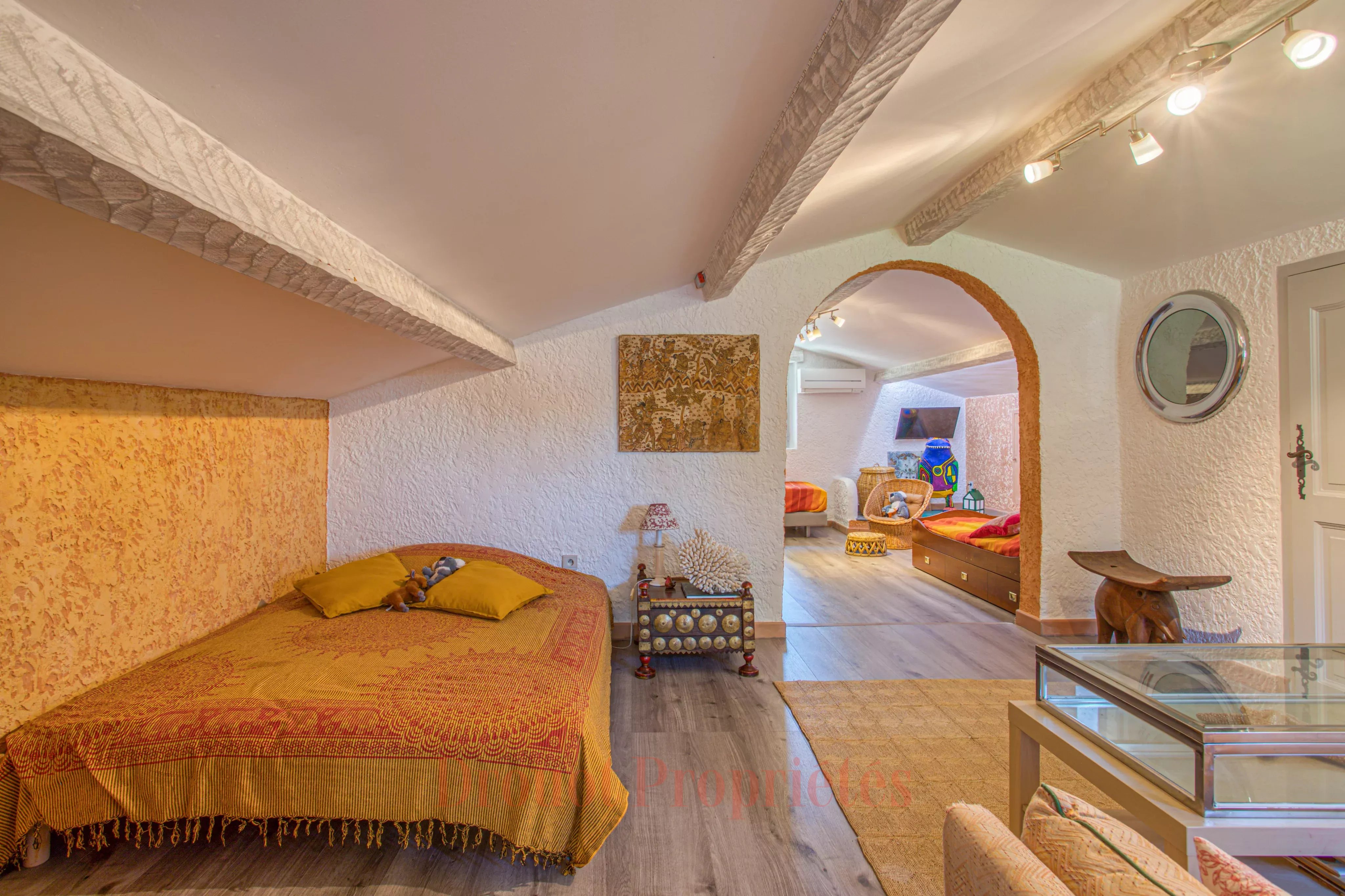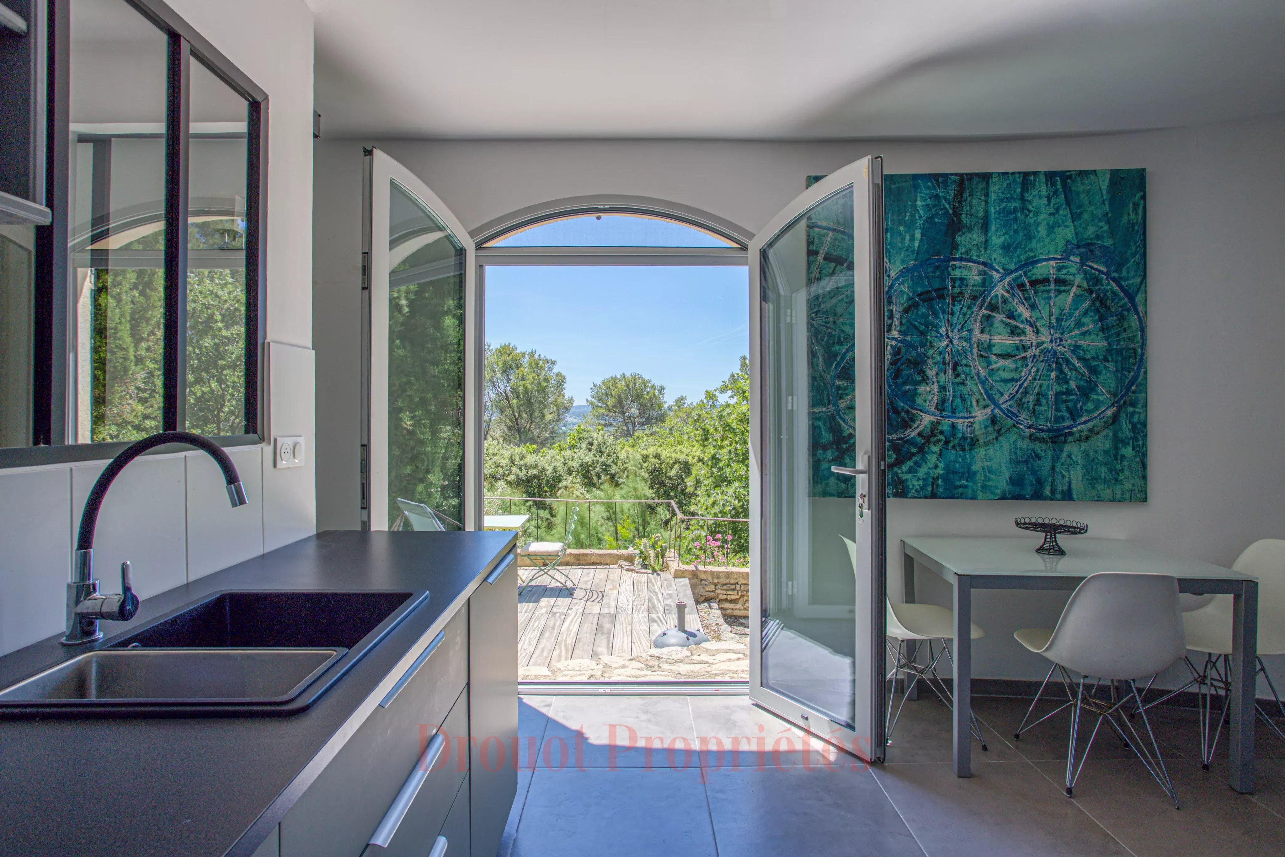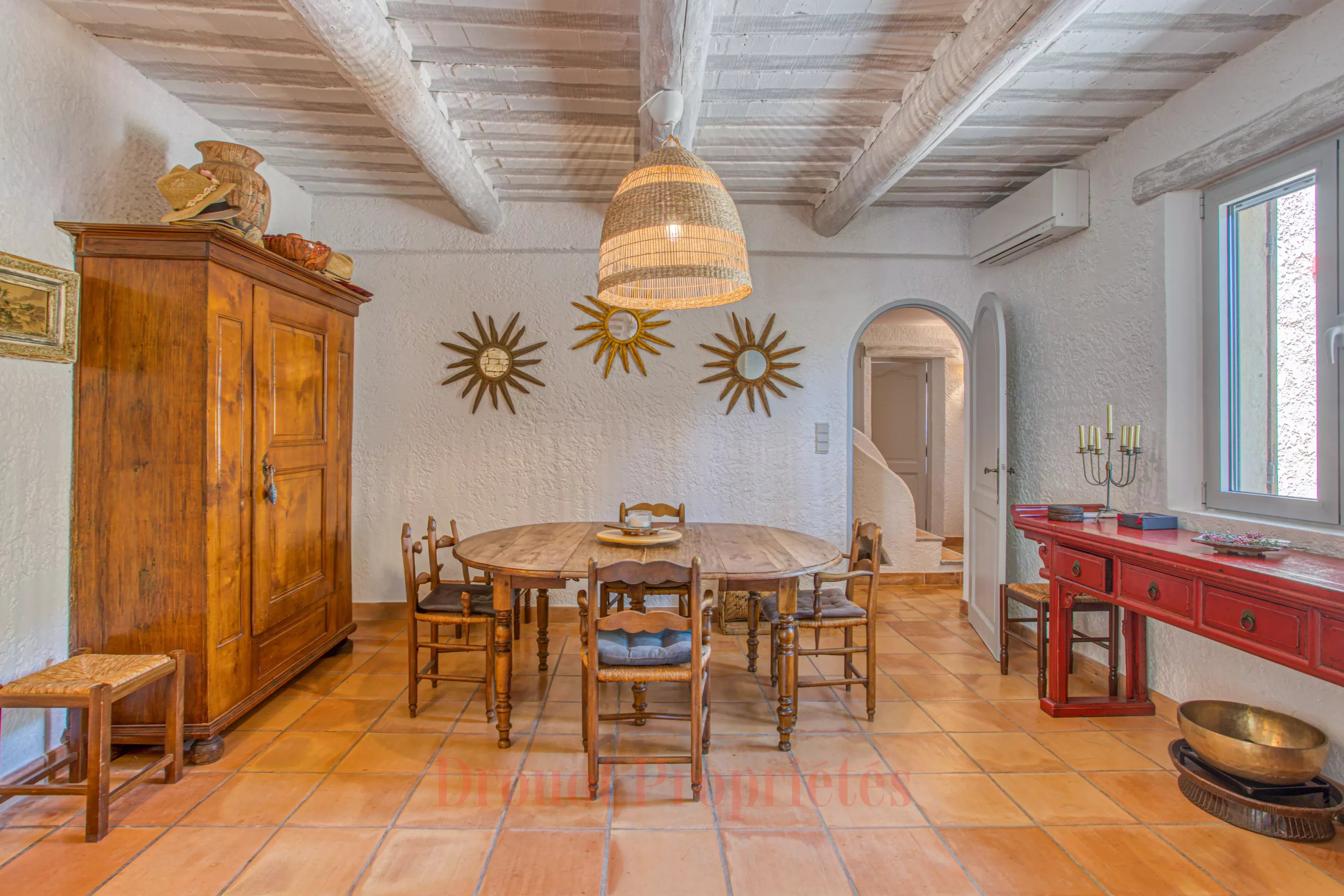 EXCLUSIVITE - MAISON DE CARACTERE - JARDIN - PISCINE - 6 CHAMBRES Nichée sur les hauteurs du charmant village de Mérindol, situé au sud du massif du Luberon, cette propriété de 208 m² offre un cadre de vie rare, à la fois intime et ouvert sur les paysages infinis de la vallée de la Durance. Édifiée dans les années 1970 sur un terrain en terrasses de 2 640 m², cette maison de caractère mêle le charme provençal aux volumes et à l'originalité d'une architecture pensée pour dialoguer avec la nature. Chaque niveau, chaque terrasse, chaque ouverture cadre la vue et invite à la contemplation. La maison principale se déploie sur deux niveaux : un vaste espace de vie structuré autour d'un mur de pierres sèches et de poutres blanchies s'ouvre sur plusieurs terrasses baignées de lumière. Une salle à manger chaleureuse attenante et une cuisine indépendante équipée complètent cet espace convivial, idéal pour recevoir en toute saison. Deux chambres, chacune avec salle de bain, s'invitent sur le même niveau. Un escalier central baigné de lumière, signature architecturale des lieux mènent à un petit salon et une terrasse dominant la vallée. Sous les toits, deux chambres en enfilade et une salle d'eau offrent un espace ludique ou une suite inspirante, baignée de lumière naturelle.Au rez-de-jardin, deux logements indépendants complètent l'ensemble : un appartement de 45 m² avec salon, cuisine, chambre et salle de bain, ainsi qu'une chambre de 20m² avec salle d'eau, dressing et accès terrasse. Ces espaces peuvent accueillir famille, amis ou être valorisés dans le cadre d'une activité locative saisonnière. Le jardin, délicatement paysagé et ponctué d'oliviers s'étage autour de restanques en pierre sèche, d'essences méditerranéennes et d'escaliers bucoliques menant à une grande piscine (11 x 6 m) et son pool-house, nichés à l'abri des regards. À seulement 40 minutes d'Avignon, d'Aix-en-Provence ou de Marseille, à 10 minutes du célèbre village de Lourmarin, cette propriété réunit tous les atouts d'une maison de famille, d'une résidence secondaire inspirée ou d'un projet d'accueil. Ce bien unique est en parfaite harmonie avec la douceur de vivre provençale.