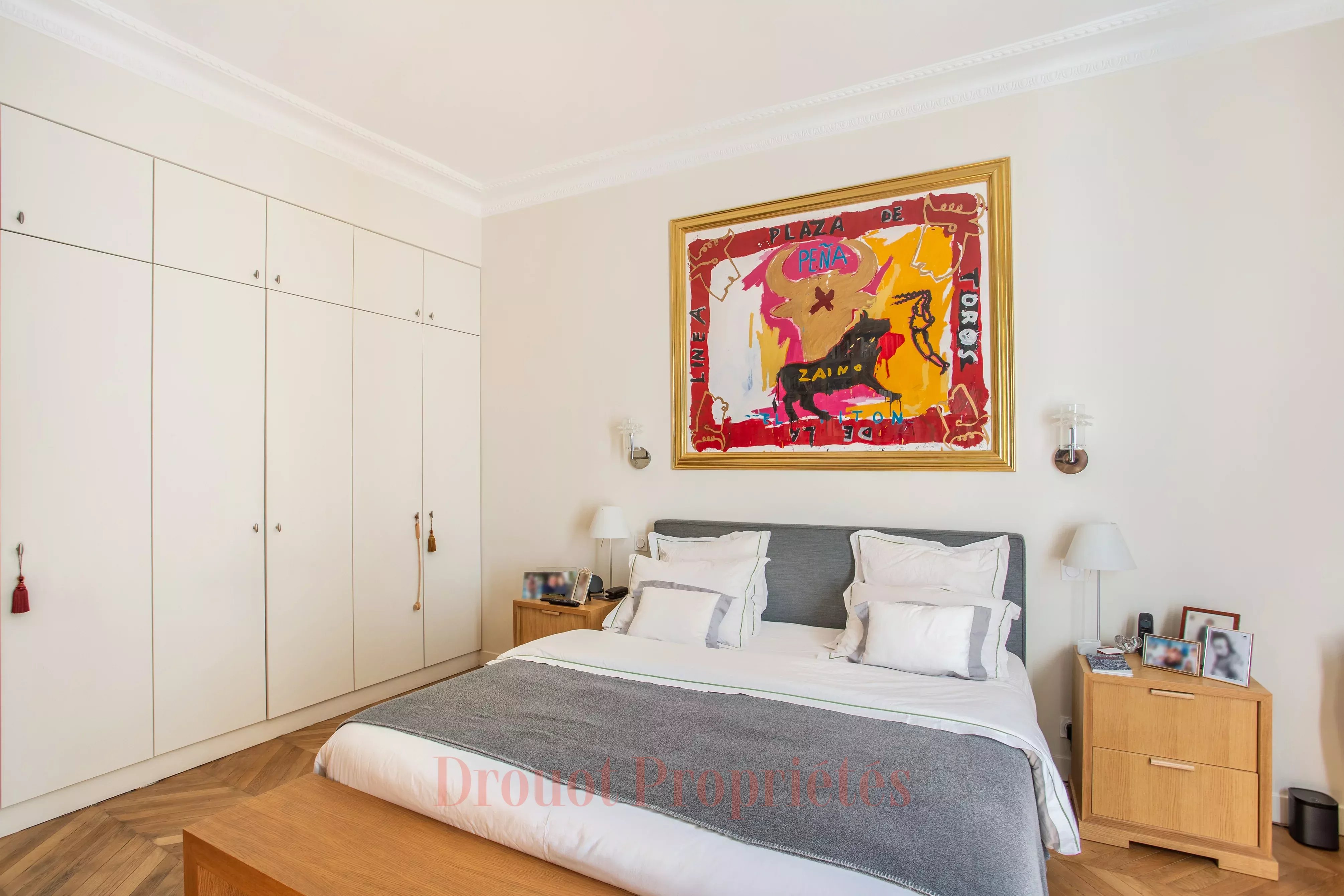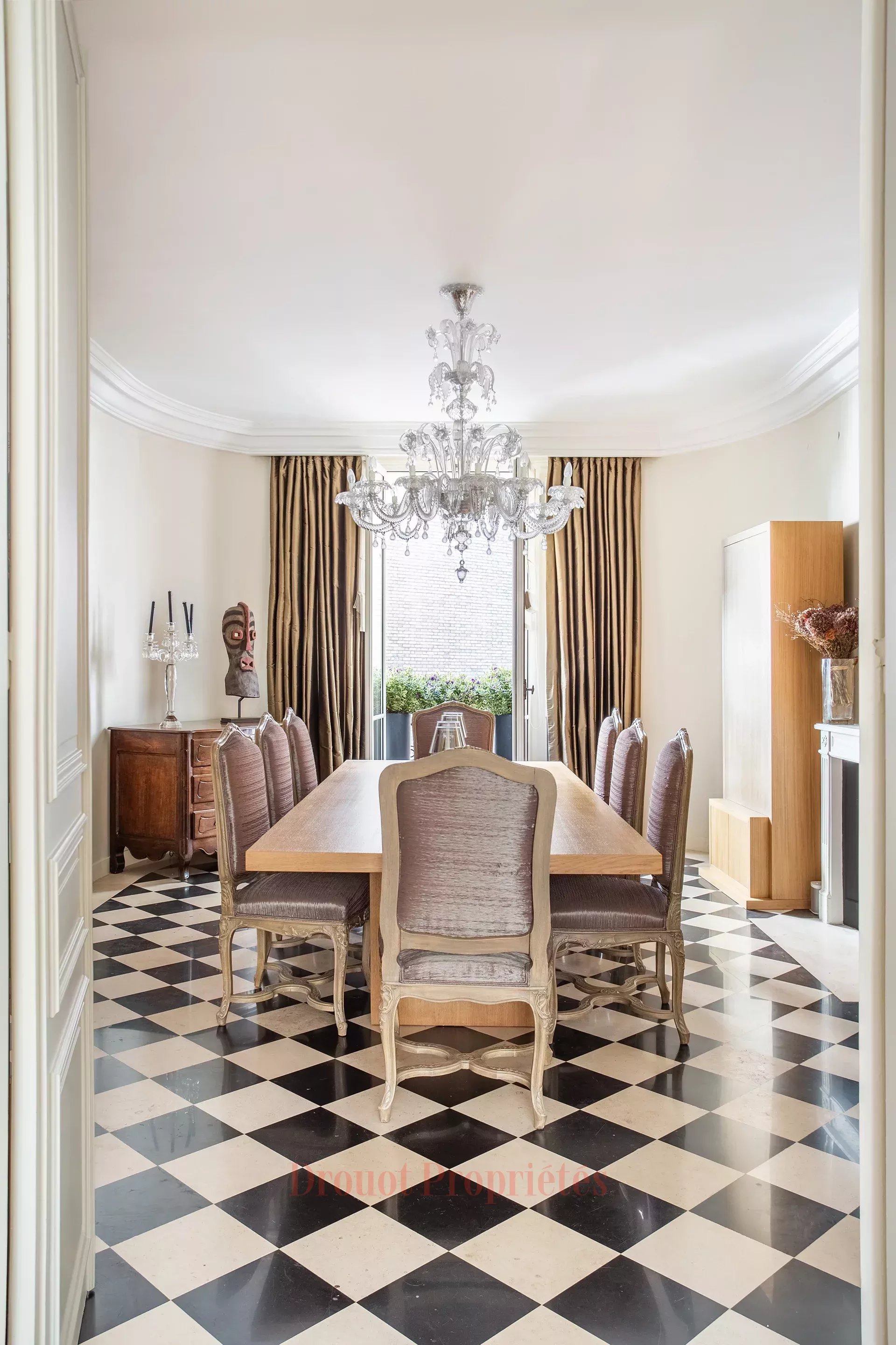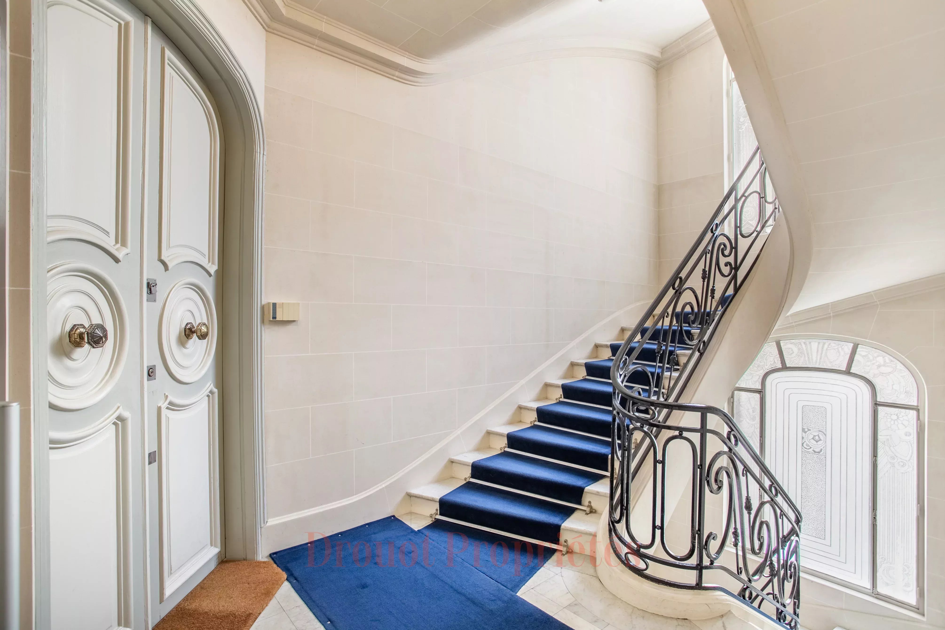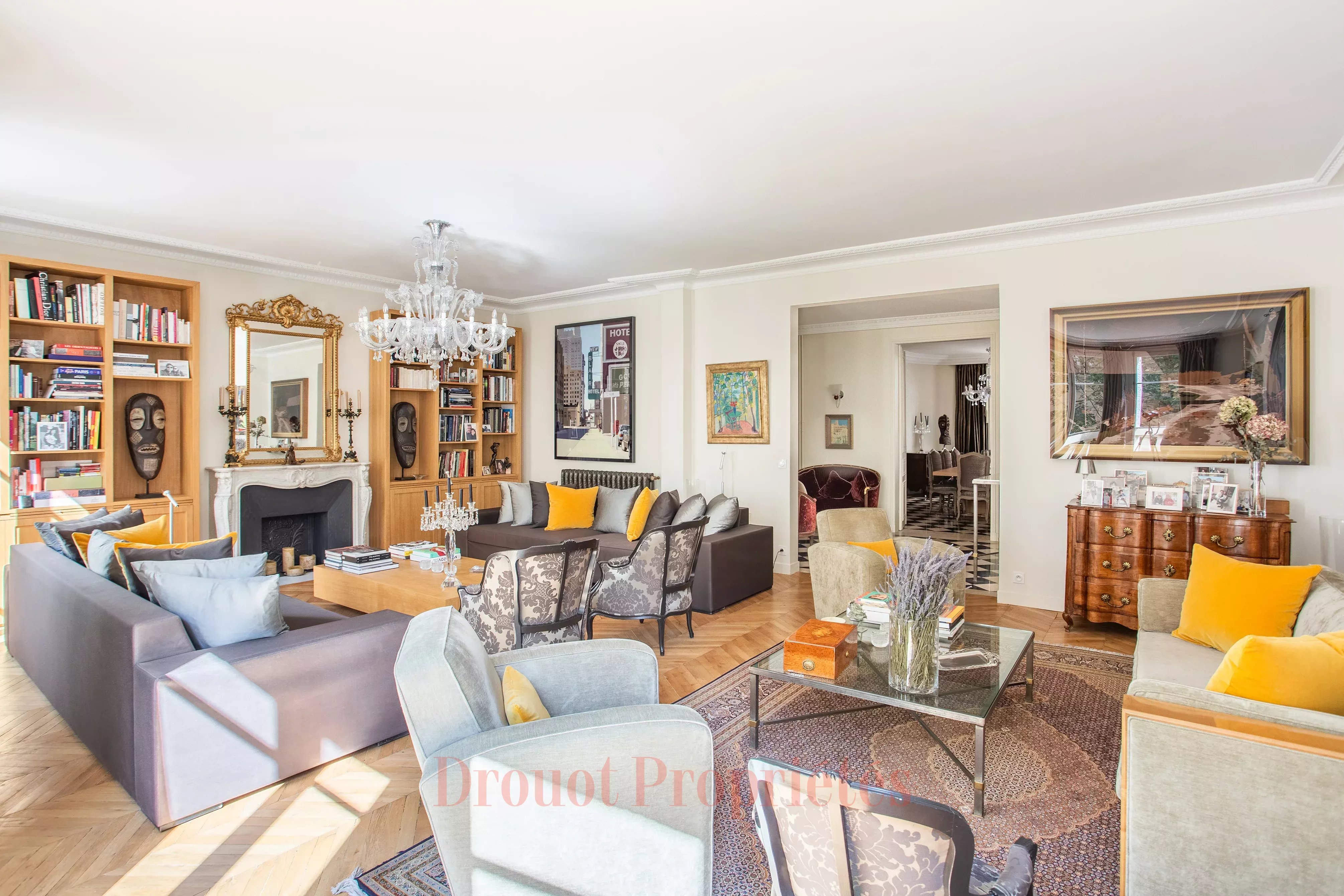 APPARTEMENT FAMILIAL ET DE RECEPTION - CALME ET LUMINEUX - CHAMBRES DE SERVICES Situé dans une rue calme, entre l'avenue Victor Hugo et la Porte Dauphine, à l'étage noble d'un immeuble de grand standing des années 1930 avec ascenseur, appartement familial et de réception traversant de 235 m². Pensé et agencé par un architecte d'intérieur, l'appartement se compose d'une galerie d'entrée desservant d'un côté un vaste double séjour exposé sud et une chambre parentale avec sa salle de bains, une salle de douche et des toilettes ; de l'autre côté une salle à manger spacieuse et une cuisine indépendante meublée et équipée. Dans la continuité, un couloir distribue deux suites, ainsi qu'un vaste dressing (quatrième chambre possible). L'appartement, en excellent état, bénéficie de tout le charme de l'ancien : parquet, moulures, cheminées, hauteur sous plafond généreuse. Deux chambres de service accessibles par ascenseur (10,56 m² et 7,89 m²) avec pièce d'eau privée (local de 5,05 m2) et deux caves blindées (14,7 m² et 5,6 m²) complètent ce bien. Gardien à demeure.
