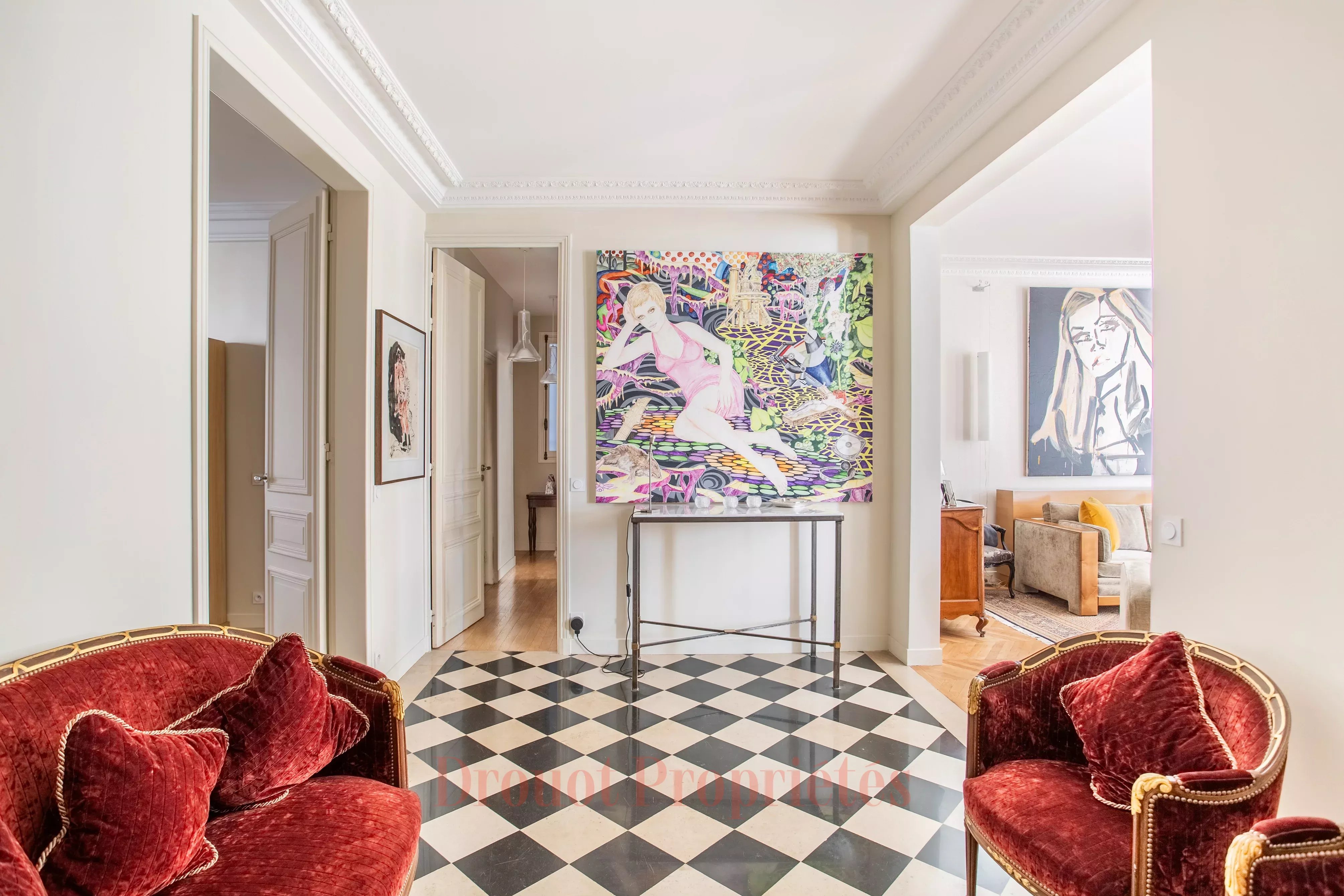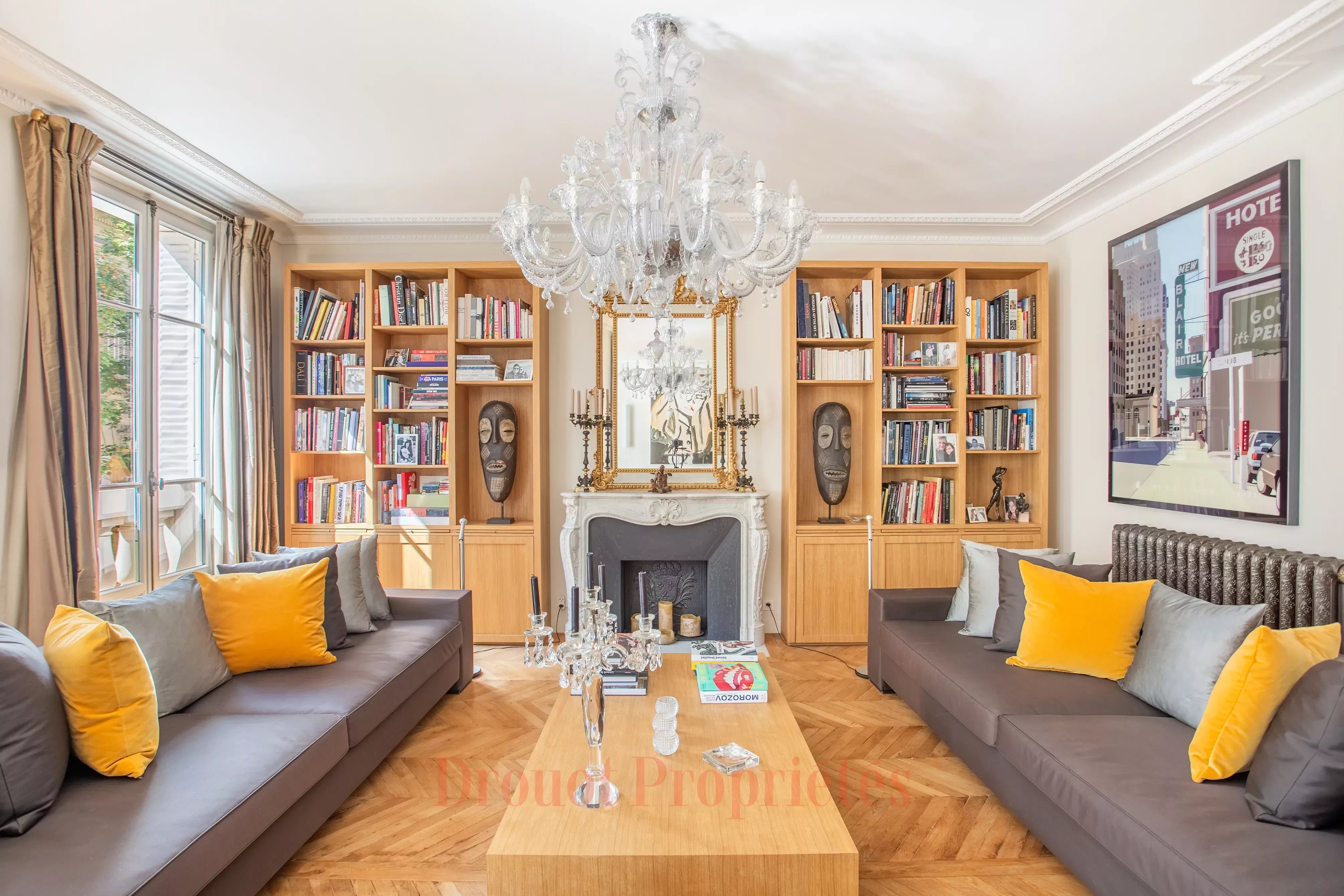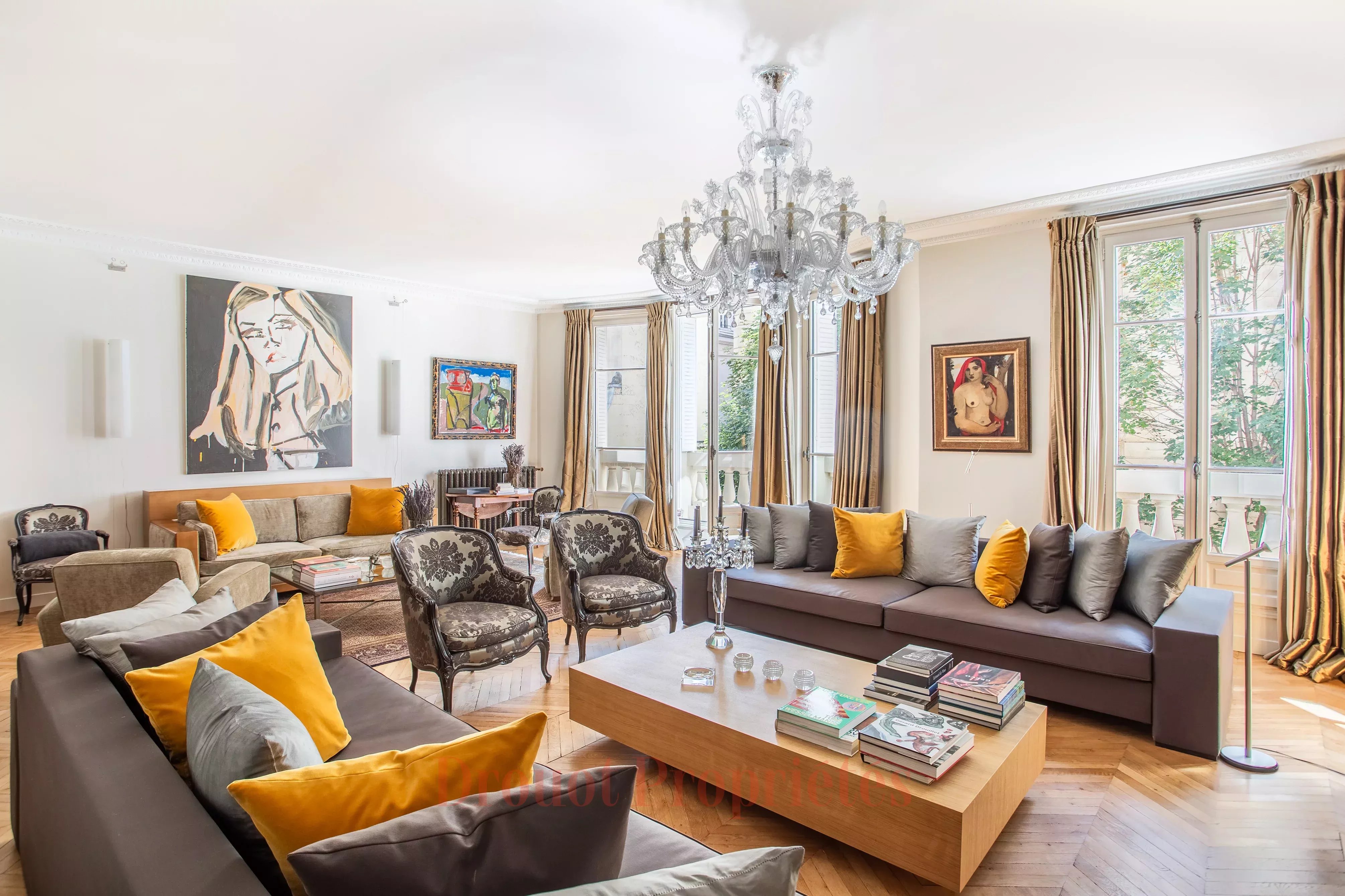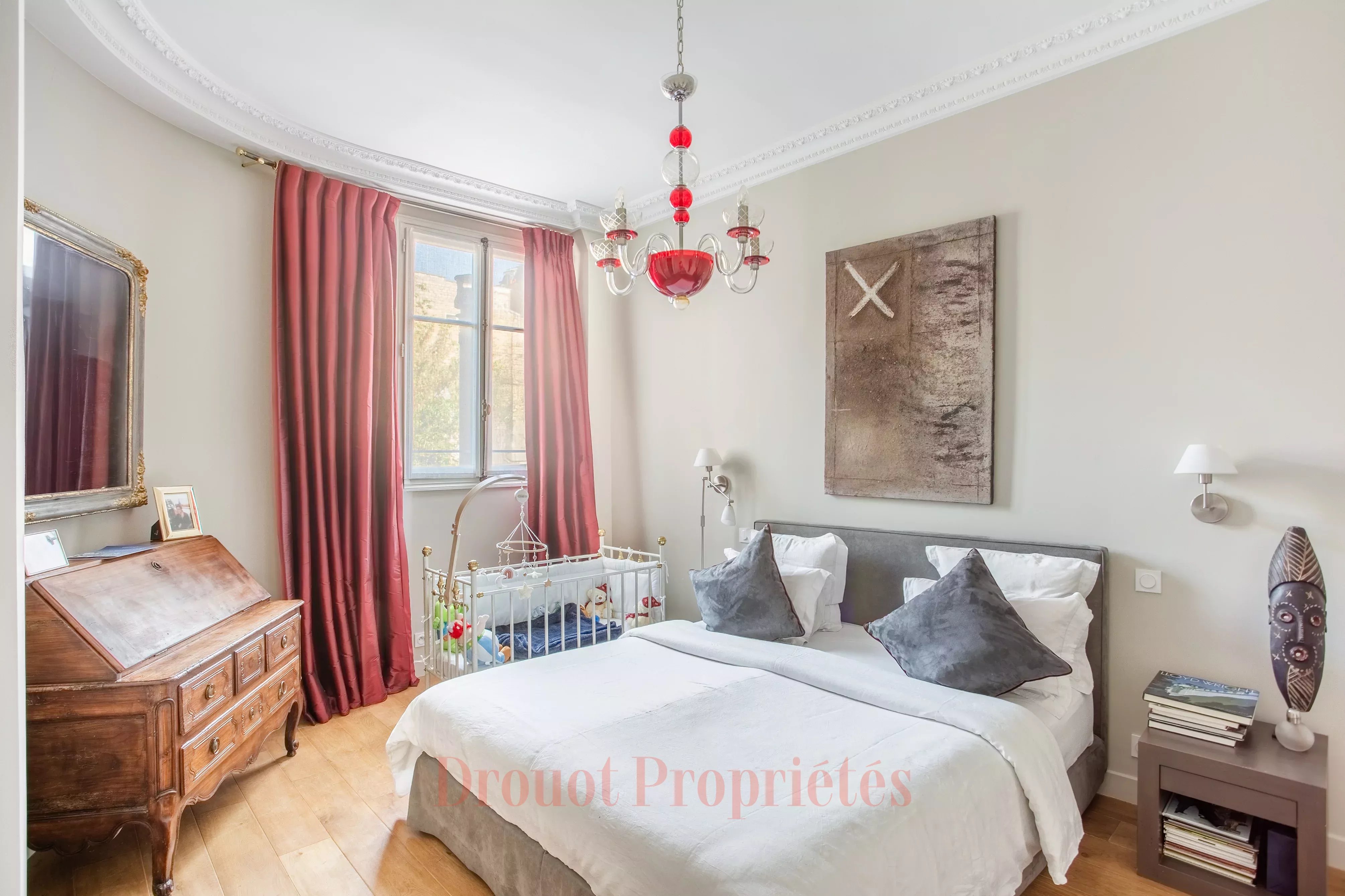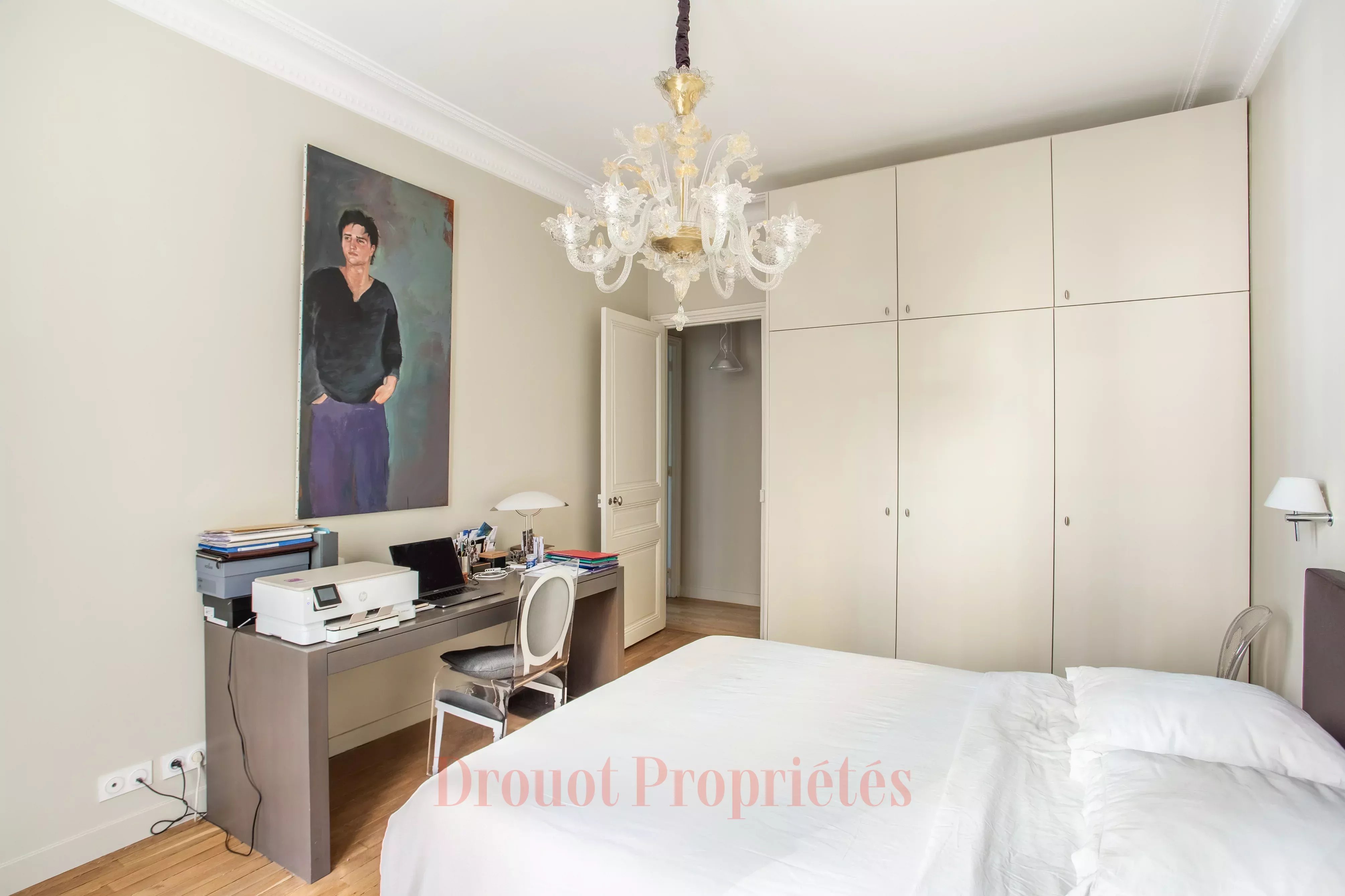 APPARTEMENT FAMILIAL ET DE RECEPTION - CALME ET LUMINEUX - CHAMBRES DE SERVICES Situé dans une rue calme, entre l'avenue Victor Hugo et la Porte Dauphine, à l'étage noble d'un immeuble de grand standing des années 1930 avec ascenseur, appartement familial et de réception traversant de 235 m². Pensé et agencé par un architecte d'intérieur, l'appartement se compose d'une galerie d'entrée desservant d'un côté un vaste double séjour exposé sud et une chambre parentale avec sa salle de bains, une salle de douche et des toilettes ; de l'autre côté une salle à manger spacieuse et une cuisine indépendante meublée et équipée. Dans la continuité, un couloir distribue deux suites, ainsi qu'un vaste dressing (quatrième chambre possible). L'appartement, en excellent état, bénéficie de tout le charme de l'ancien : parquet, moulures, cheminées, hauteur sous plafond généreuse. Deux chambres de service accessibles par ascenseur (10,56 m² et 7,89 m²) avec pièce d'eau privée (local de 5,05 m2) et deux caves blindées (14,7 m² et 5,6 m²) complètent ce bien. Gardien à demeure.