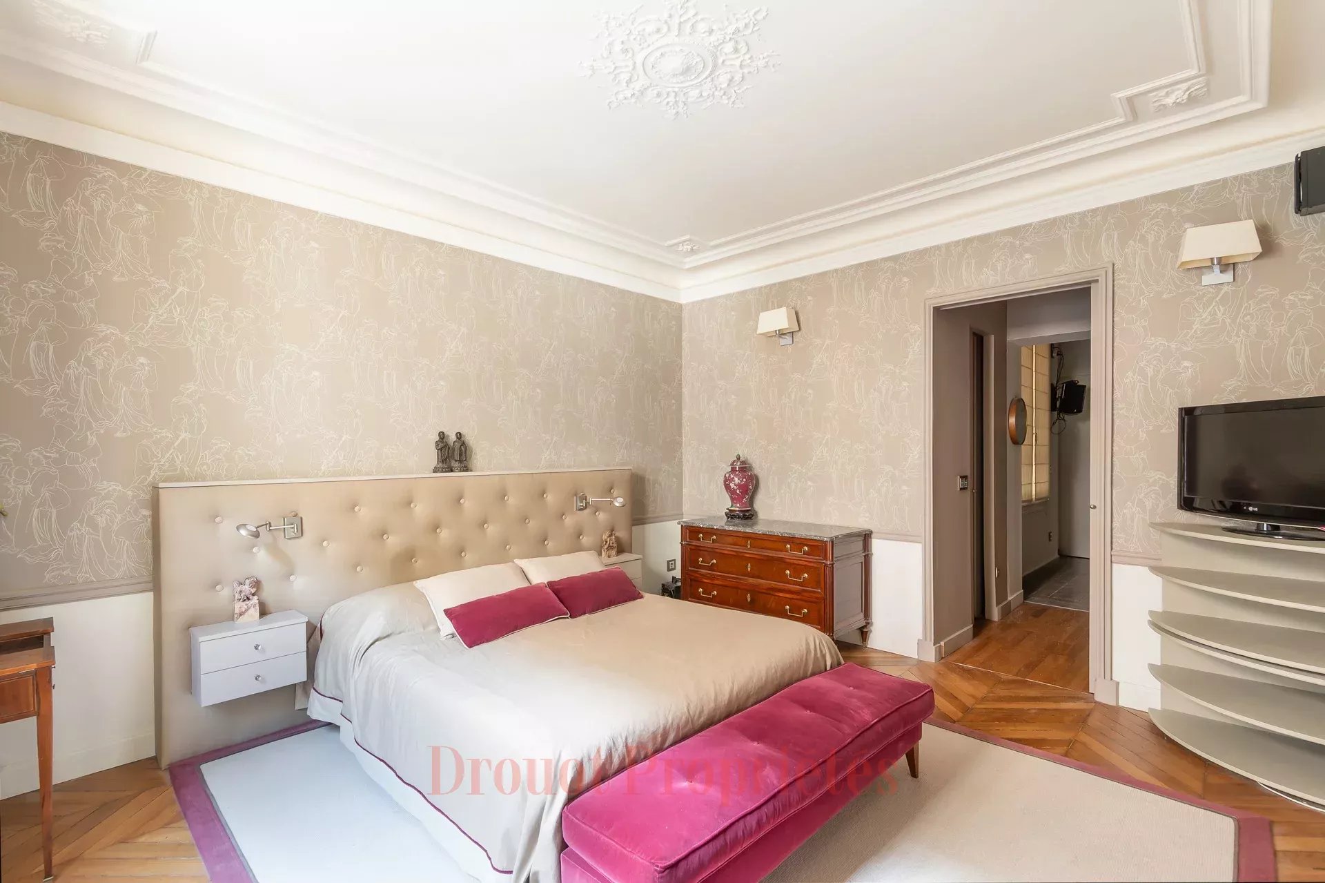 EXCLUSIVITE - APPARTEMENT DE RECEPTION - LUXE - CALME ABSOLU - SECURISE Ce bien vous est proposé en vente aux enchères par l'intermediaire de Drouot Immo. Idéalement situé au coeur du 8ème arrondissement, rue du Faubourg Saint-Honoré, dans le prestigieux square du Roule, appartement familial et de réception au rez-de-chaussée d'un magnifique immeuble haussmannien. Environnement calme et sécurisé avec voie privative et caméras de sécurité. Cet appartement d'exception de 180 m² offre un vaste espace de réception de 70 m² traversant sur une cour arborée. Les trois chambres, dont une suite parentale, ont leur propre salle d'eau, et pour l'une d'entre elle une entrée indépendante comme un studio. Le bien est en excellent état. Emplacement privilégié, à proximité immédiate des boutiques de luxe et de tables réputées. L'appartement est également doté d'un sous-sol aménagé, avec salon de télévision et cave à vin. Profession libérale acceptée. Possibilité d'acquérir une place de parking en supplément. La participation à la vente interactive de ce bien sur Drouot.immo est soumise à agrément préalable.