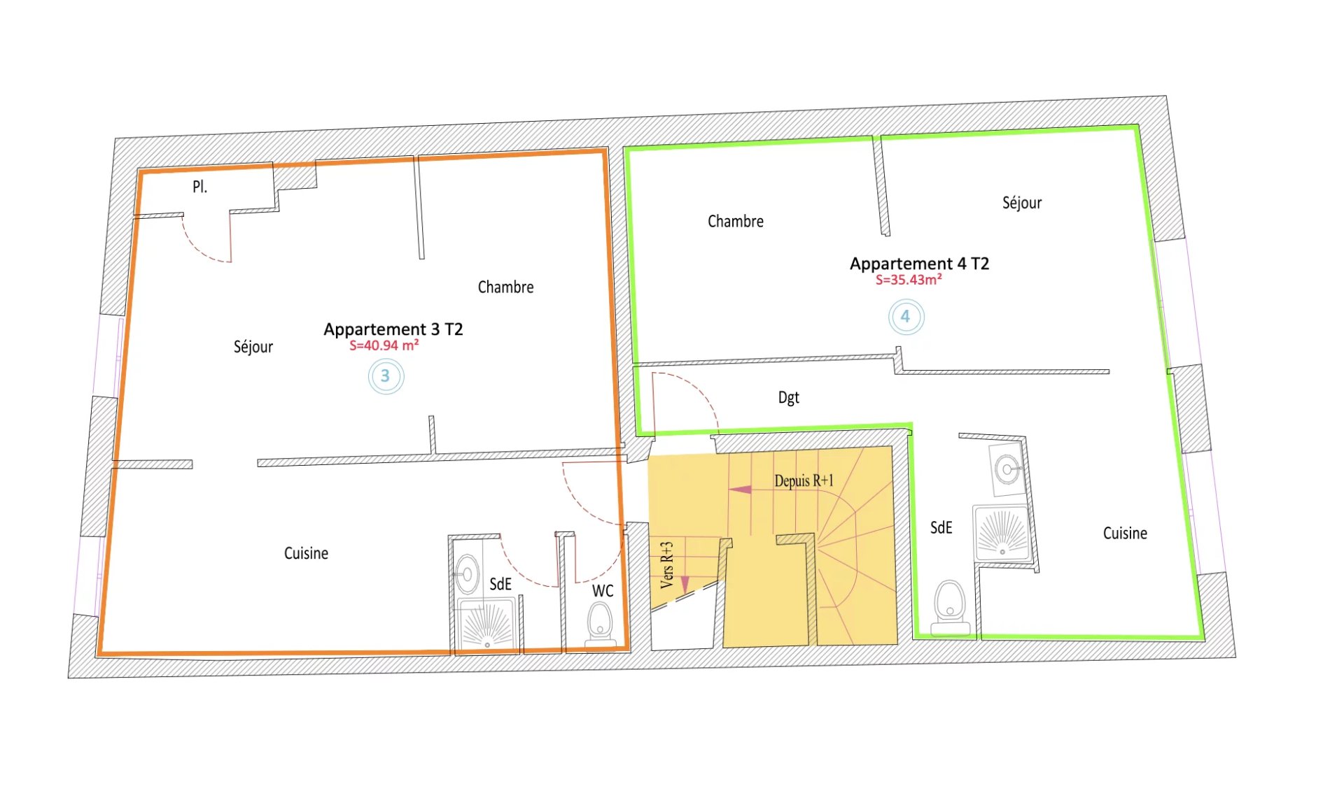 - 2ème étage : Appartement T4 de 87m2