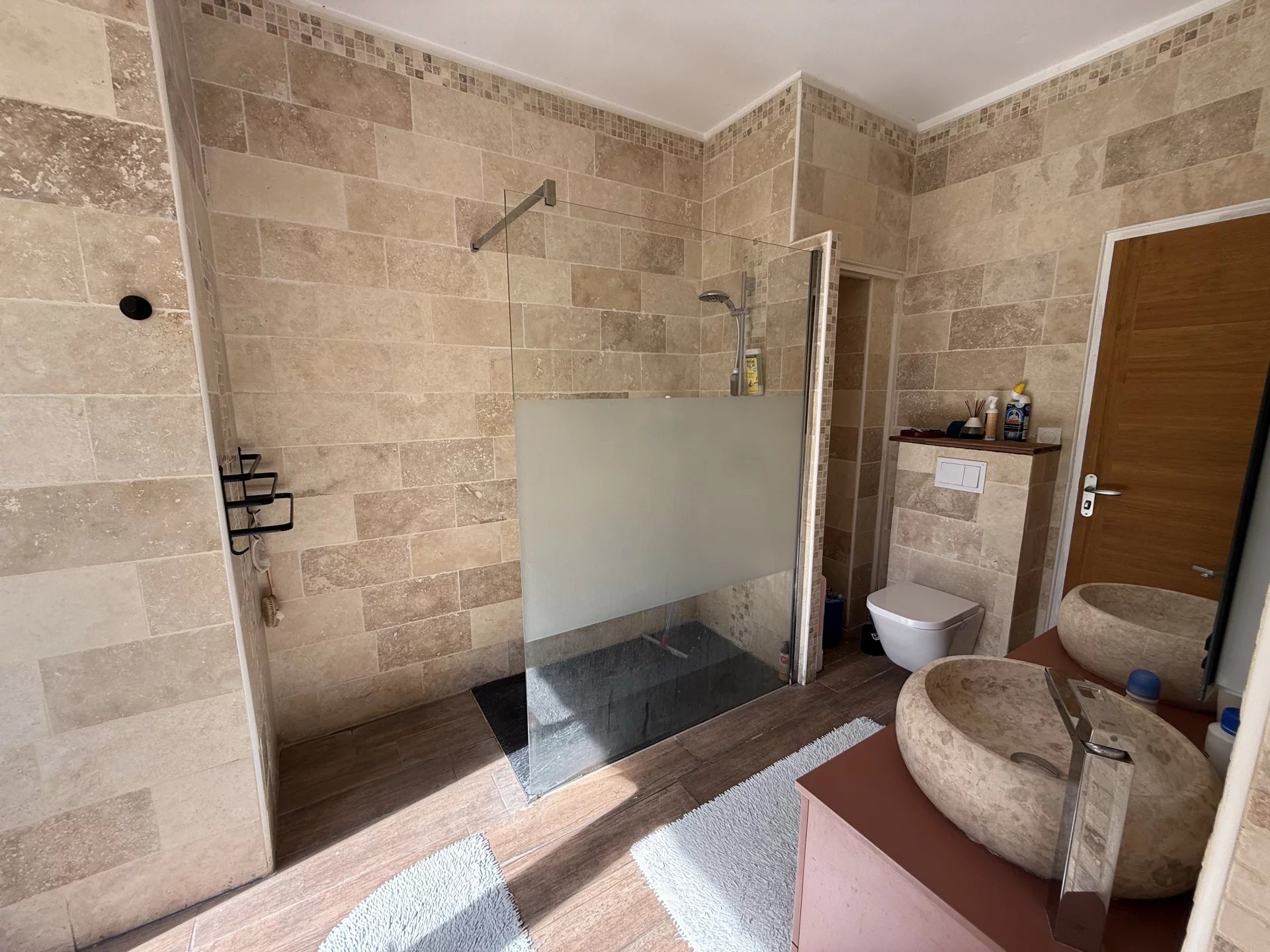 Coté maison vous découvrirez un magnifique hall d'entrée avec une belle hauteur sous plafond qui mène à une grande pièce de vie de 47m2 avec accès direct à une terrasse couverte. Une belle cuisine spacieuse toute neuve. Un cellier. Coté nuit, cinq chambres au total dont deux suites parentales (avec dressing et salle d'eau privative) et une salle d'eau commune.