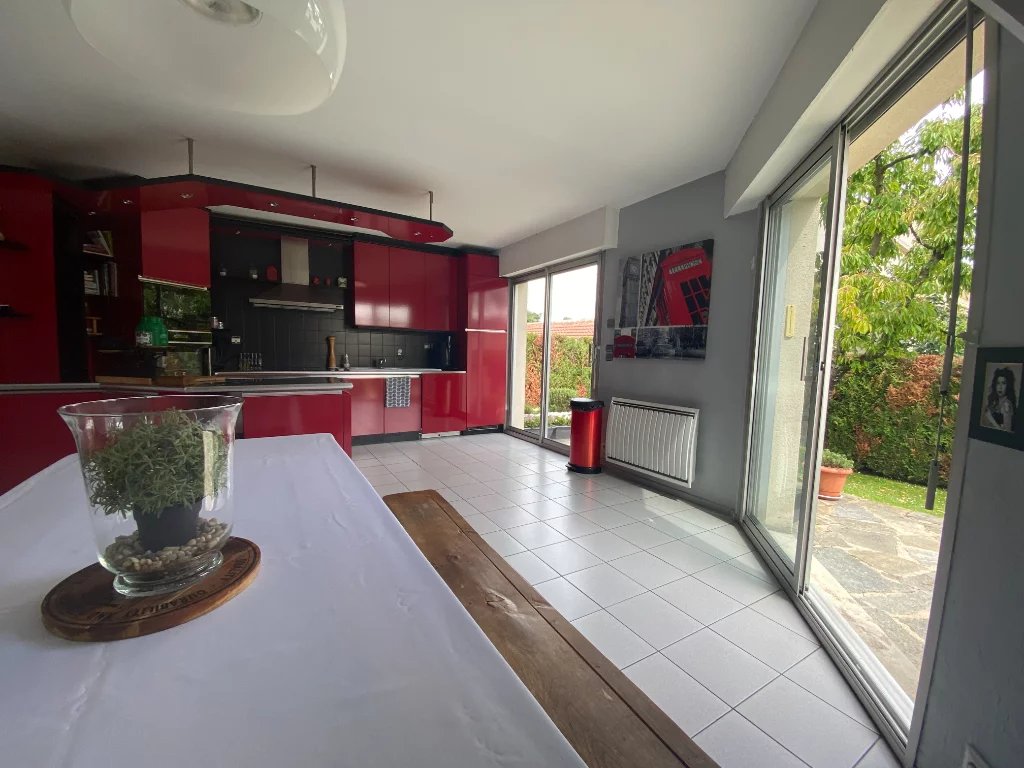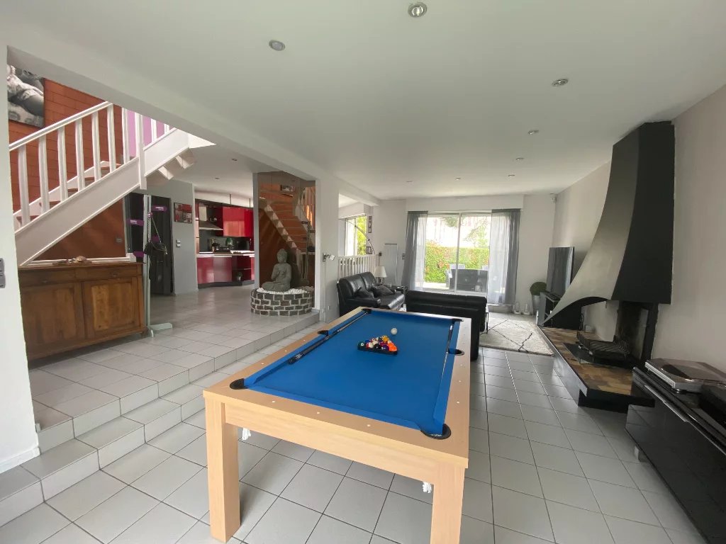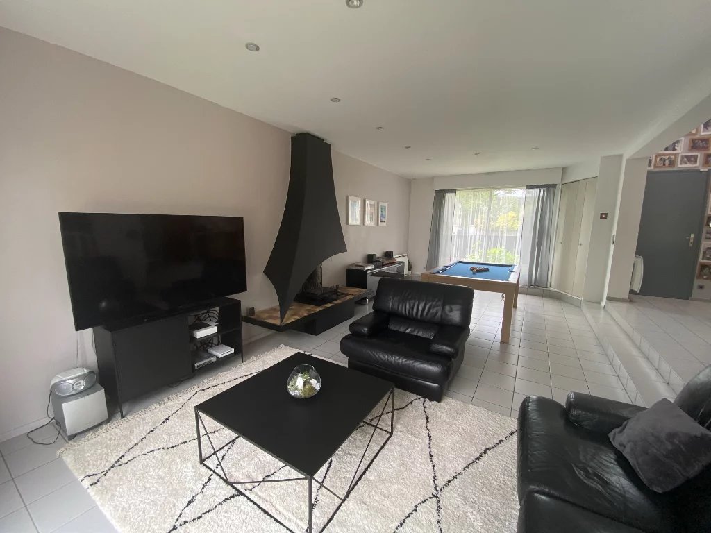 Au rez-de-chaussée, vous apprécierez un espace de vie lumineux et convivial. Dès l’entrée, découvrez un séjour baigné de lumière grâce à sa double exposition et sa grande hauteur sous plafond, offrant une sensation d’espace remarquable.