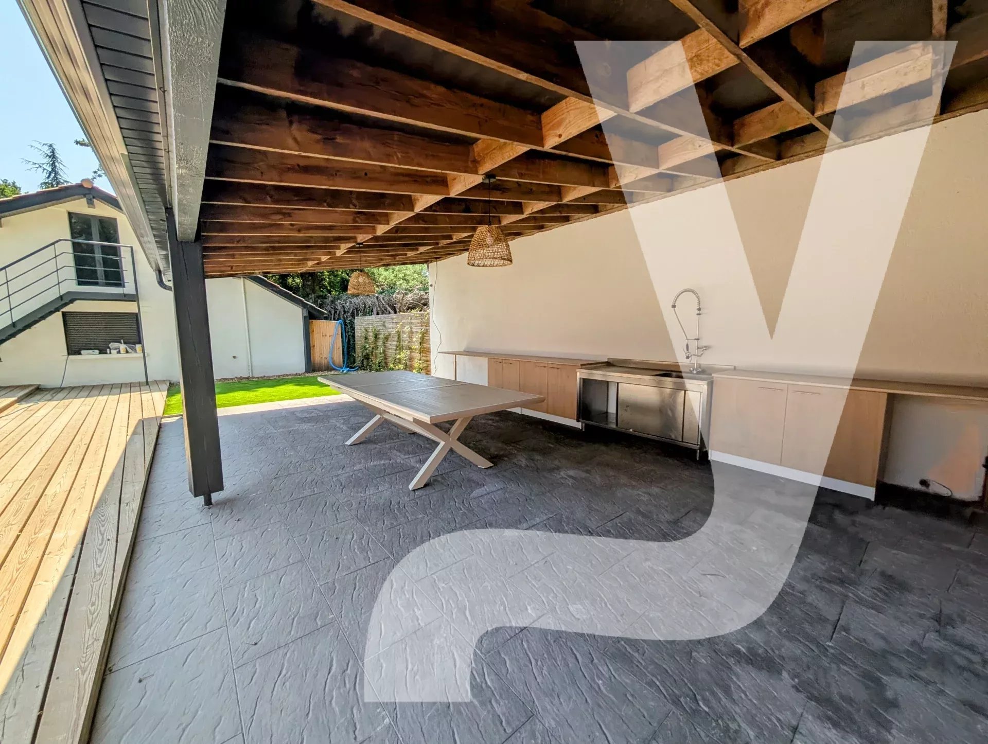 🏡 Maison rénovée 90 m² + dépendance 56 m² – Jardin, piscine et prestations de qualité Découvrez cette maison entièrement rénovée, alliant confort moderne et prestations haut de gamme. Elle offre un cadre de vie idéal pour une famille, avec un espace extérieur aménagé et une dépendance indépendante pour vos invités ou un projet locatif. ✨ Intérieur principal (90 m²) : 3 chambres, dont une suite parentale Salle de bain spacieuse avec douche et baignoire Vaste pièce de vie lumineuse avec cuisine ouverte équipée ✨ Dépendance (56 m²) : Chambre + séjour avec cuisine ouverte Salle d’eau et dressing Combles aménageables 🌿 Extérieur : Jardin soigné avec piscine Cuisine d’été conviviale Boulodrome pour profiter des moments en famille ou entre amis Garage à vélos/scooters, buanderie et rangements 💡 Points forts : Maison clé en main, prête à emménager, avec prestations de qualité et espace de vie modulable. Un bien rare, parfait pour allier confort familial et projet locatif rentable. Honoraire charge vendeur Consommation énergie primaire : 118 kWh/m²/an Consommation énergie finale : 51 kWh/m²/an Montant estimé des dépenses annuelles d'énergie pour un usage standard : entre 870 € et 1 220 € sur les années 2021, 2022 et 2023 (abonnements compris). Les informations sur les risques auxquels ce bien est exposé sont disponibles sur le site Géorisques : www.georisques.gouv.fr. Citylife Arcachon - Caisse de garantie Galian 120000 EUR - RCS 941806796 - CPI 33012025000000043 - RCP Galian
