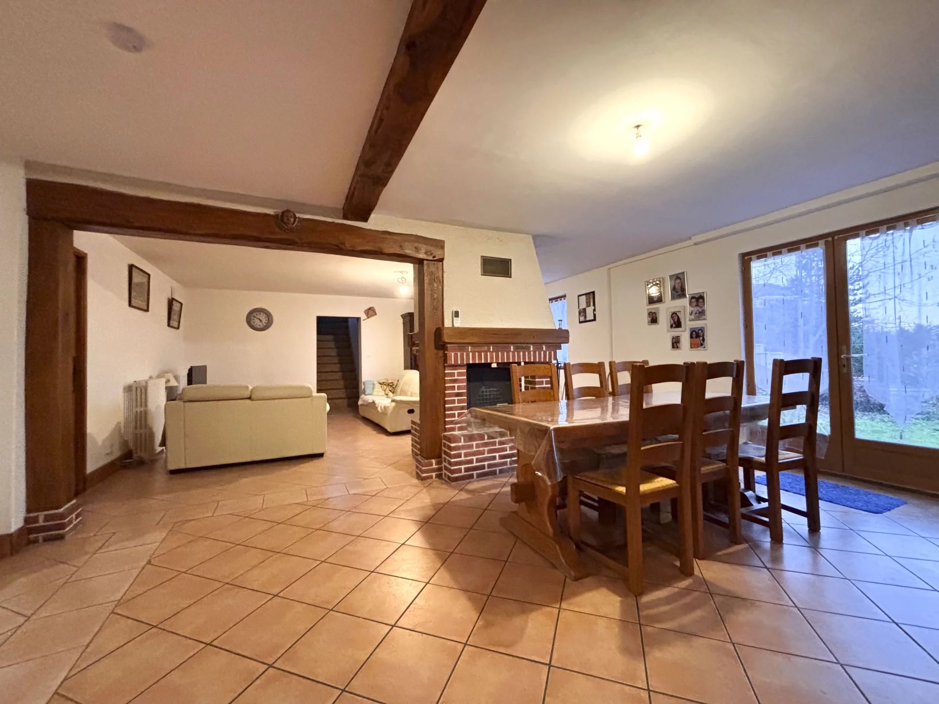 - Au rez-de-chaussée, vous découvrirez une belle salle à manger prolongé d'un grand salon lumineux , l’ensemble agrémenté d’une cheminée centrale apportant charme et convivialité à l’espace de vie.