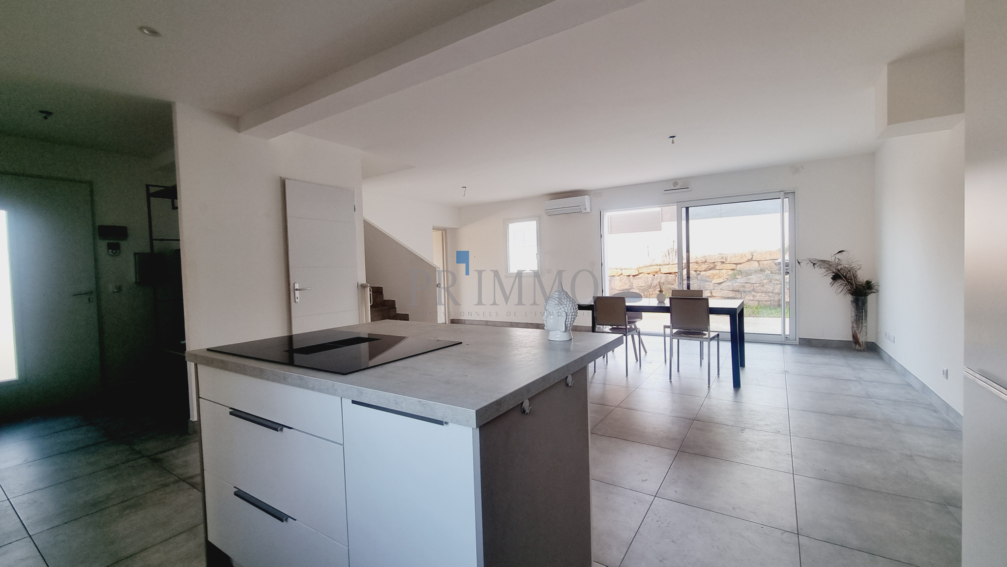 A découvrir sans tarder, très jolie contemporaine de type 6 pièces, construite en 2022, offrant des prestations modernes et un confort optimal. D'une superficie d'environ 125m2, elle se compose de 4 chambres plus un bureau dont une suite parentale de plain-pied avec salle d'eau et dressing, idéale pour une vie de famille confortable. La maison porpose un magnifique séjour avec cuisine ouverte d'environ 45m2, très lumineux, donnant sur une belle terrasse SUD, un espace de vie convivial parfait pour recevoir. Côté équipement, elle dispose de volets roulants centralisés SOMFY, de la climatisation, d'un ballon thermodynamique, garantissant confort et performance énergétique. Implantée sur un terrain de 700m2 pouvant accueillir une piscine en forme libre, la maison bénéficie d'un garage accessible directement par la maison. Un parking extérieur pour de nombreuses voitures, idéal pour recevoir. A proximité immédiate des commerces , des écoles et de l'accés autoroutier, cette maison clé en main est parfaitement adaptée à une famille recherchant modernité, sérénité et praticité.