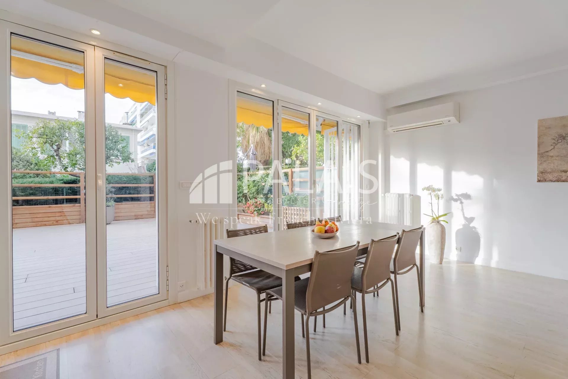 Vous serez immédiatement séduit par son extraordinaire terrasse de 54 m², un véritable havre de paix : sol en bois, belle luminosité, végétation soignée, arbres et plantes qui créent une atmosphère intime et chaleureuse. Un espace extérieur unique où profiter du calme et du climat niçois toute l’année.