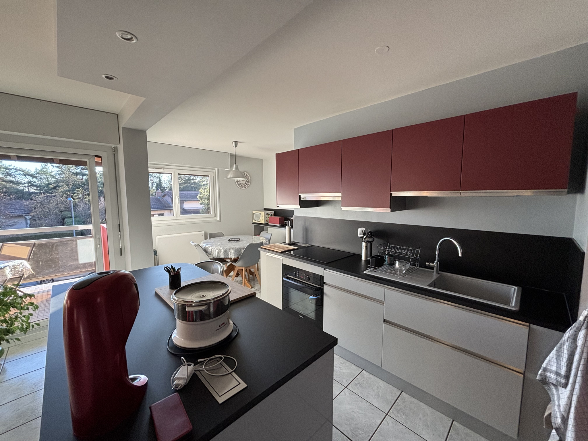 L'appartement se compose d'une entrée, d'un séjour lumineux ouvert sur la cuisine et la salle à manger, donnant directement accès à la terrasse. Ensuite, deux chambres, un bureau, une salle d'eau et un WC séparé. Enfin, une cave.