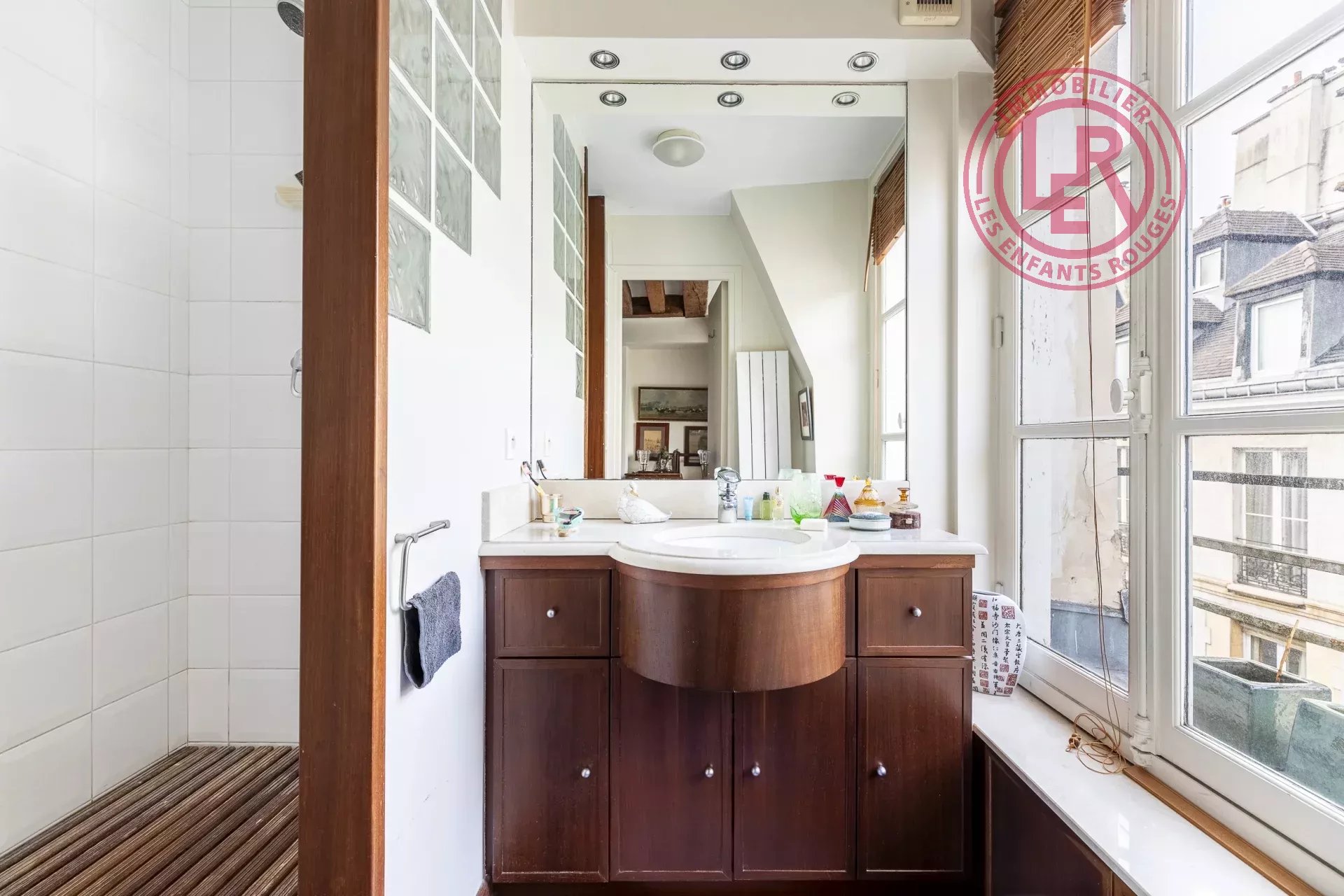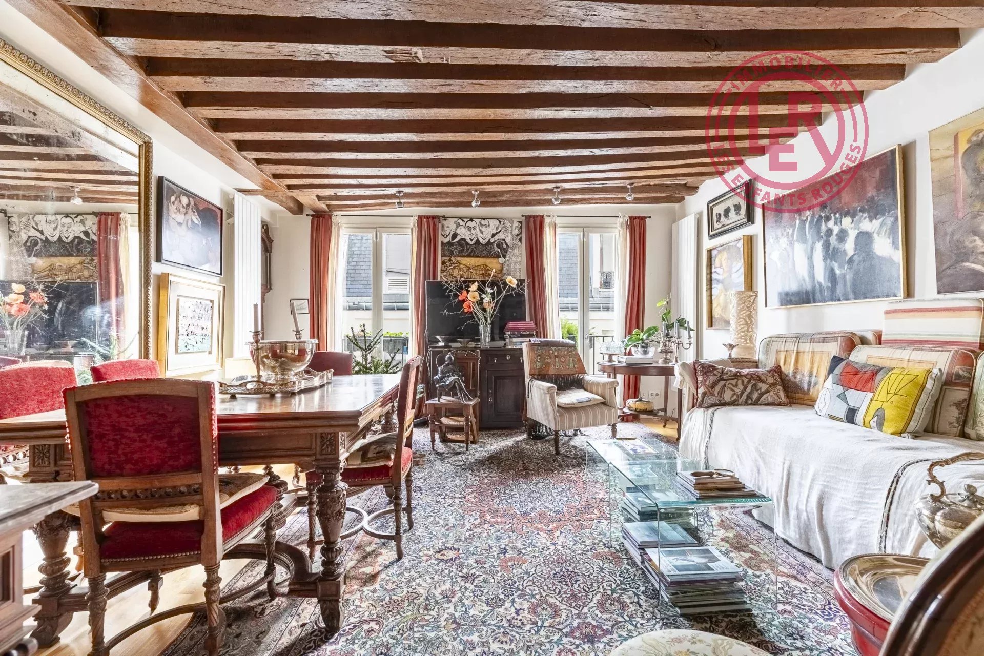 Idéalement situé au cœur du quartier Odéon, au troisième étage par escalier d’un immeuble en pierre de Paris typique de la fin du XVIIIᵉ siècle, et sécurisé par interphone et digicode, un appartement traversant offrant un calme absolu et ayant conservé tout le charme de l’ancien (parquet, poutres apparentes).