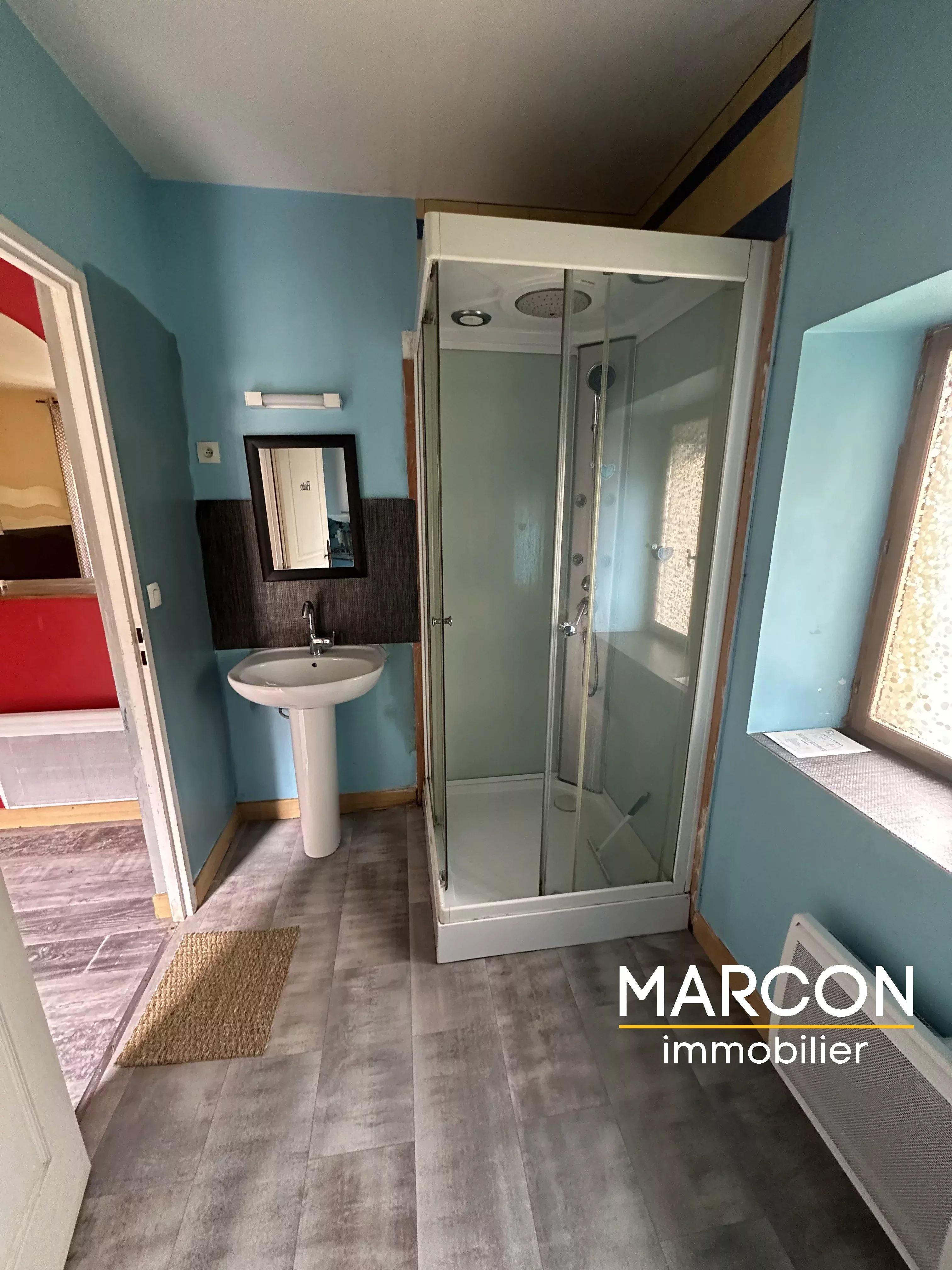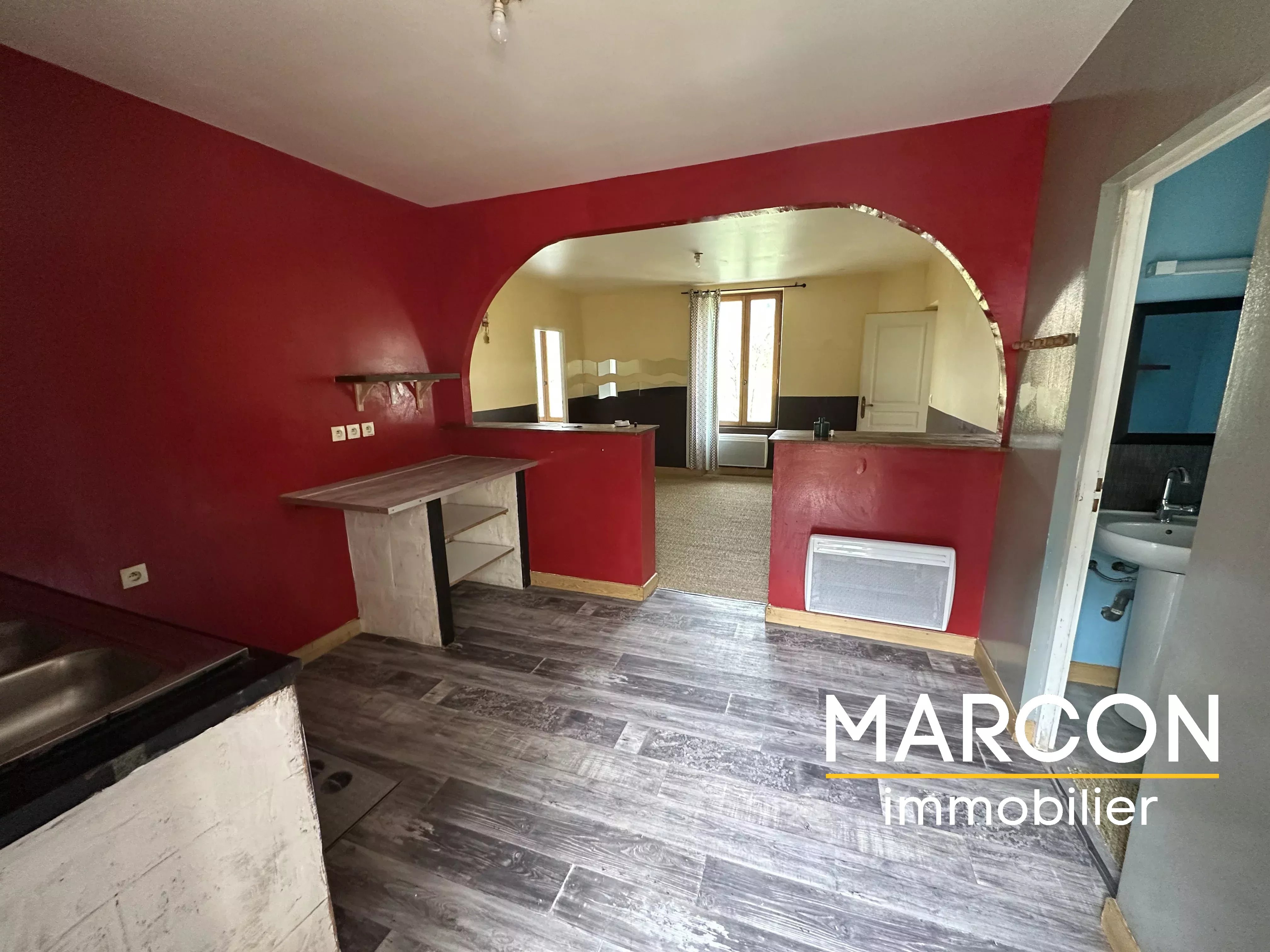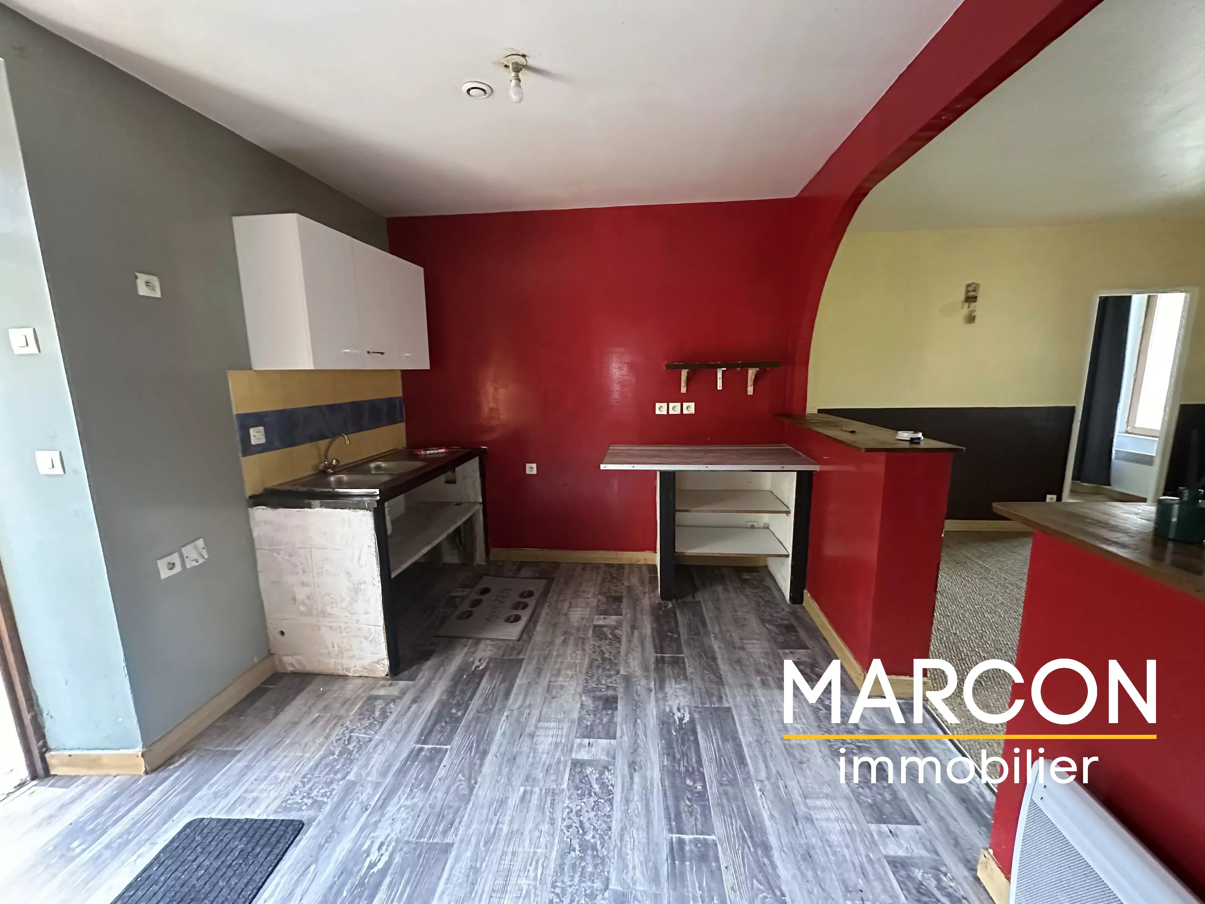 2°) Au 1er étage, un appartement F3 en duplex (loué 370 €/mois) comprenant: cuisine, séjour, chambre, salle d'eau + wc, 2ème chambre au-dessus. Chauffage électrique par convecteurs.