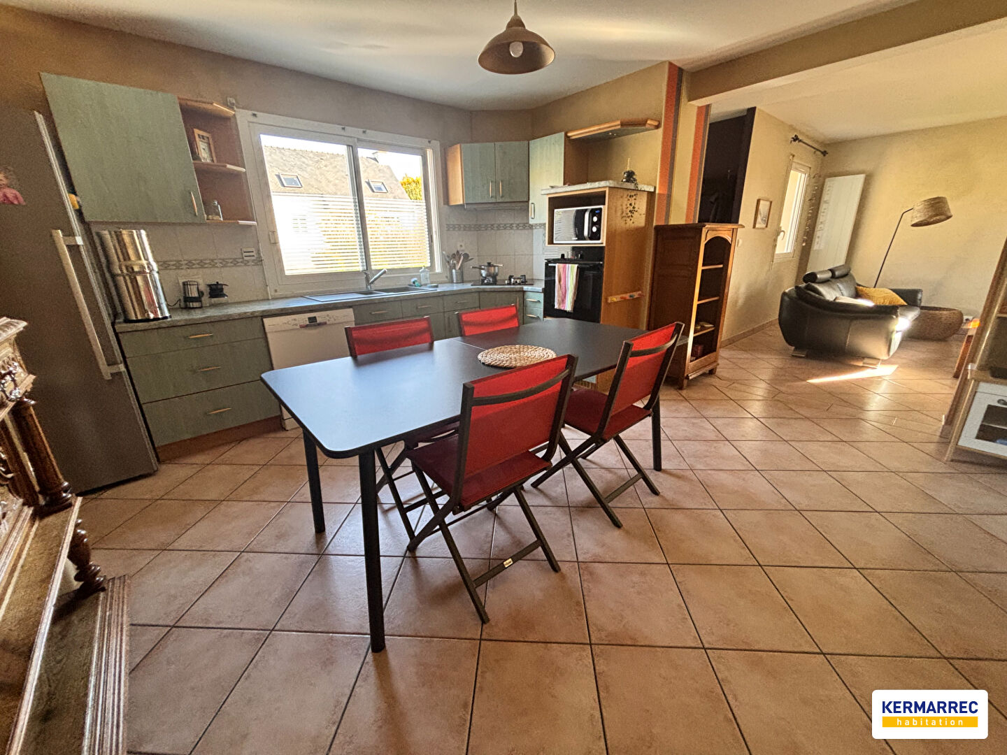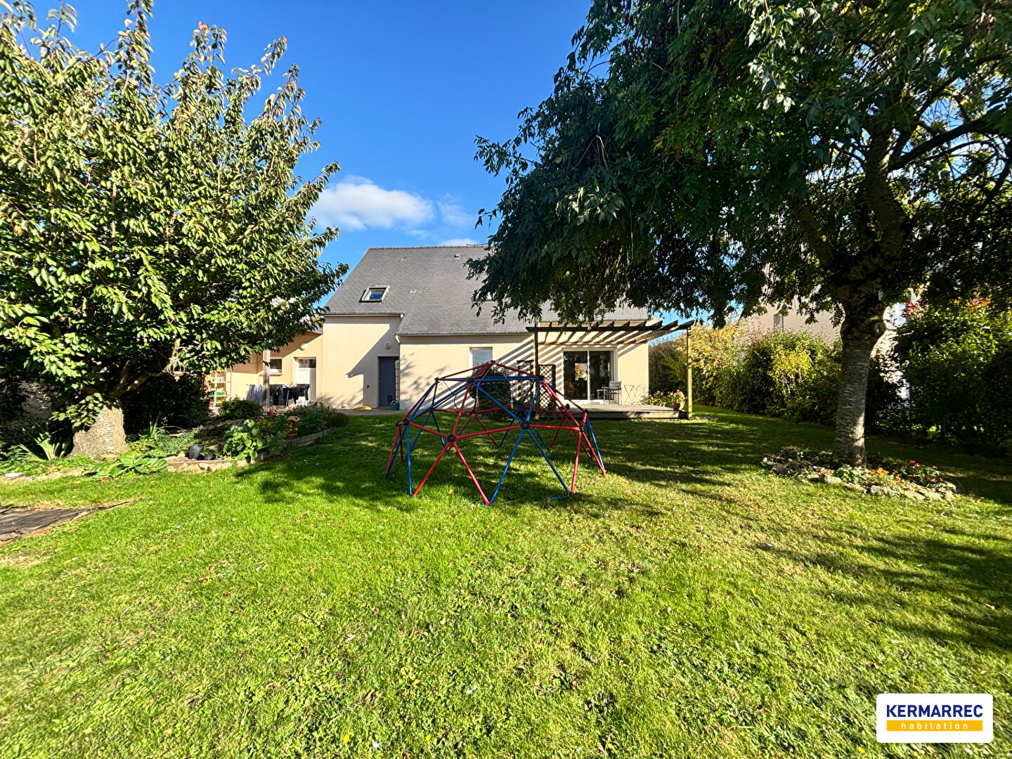 CHEZ KERMARREC A VENDRE A 5 MINS DE VITRÉ Quartier paisible en impasse maison traditionnelle de 1998 parfaitement entretenue comprenant au rez-de-chaussée une entrée, salon/séjour avec poêle à bois tout neuf, cuisine aménagée, une chambre avec placards et salle d'eau privative entièrement refaite, arrière-cuisine donnant accès au garage, une buanderie et un second garage avec 2 préaux réalisé en 2021. A l'étage une grande pièce palière desservant 4 chambres et une salle de bains. Un petit grenier. Une terrasse avec pergola. Le tout sur un beau terrain arboré de 728 m² exposé sud-ouest. Chauffage électrique avec radiateurs nouvelle génération installés en 2021. Le DPE ne prend pas en compte le poêle à bois nouvellement installé. Classe énergie : D - Prix HAI : 282 400 euros - Réf.3198 (4.59 % honoraires TTC à la charge de l'acquéreur.)
