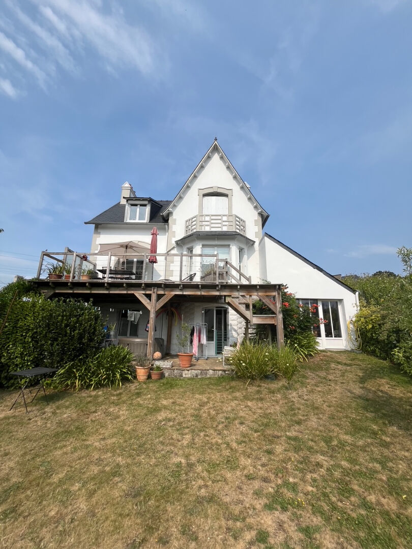 COMPROMIS EN COURS: Tout le charme des années 30 pour cette Maison T5 rénovée avec goût et construite sur un secteur calme et recherché de Morlaix. Agréable Pièce de Vie ornée d'une cheminée avec insert où vous profiterez des parquets, rosaces, et du bow-window. Derrière sa verrière vous découvrirez une Cuisine aménagée et équipée donnant sur une Terrasse en bois offrant une belle vue dégagée. L'étage quant à lui propose 3 Chambres dont 2 avec Balcon où le charme du parquet opère également. SDE. Le Sous-Sol quant à lui a intelligemment était aménagé pour offrir une Chambre donnant sur la Terrasse et le Jardin, SDE, Rangements. Buanderie et Atelier pour compléter ce bien. Jardin clos. A découvrir sans tarder ! (3.71 % honoraires TTC à la charge de l'acquéreur.)