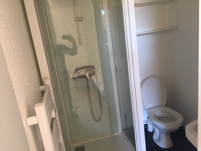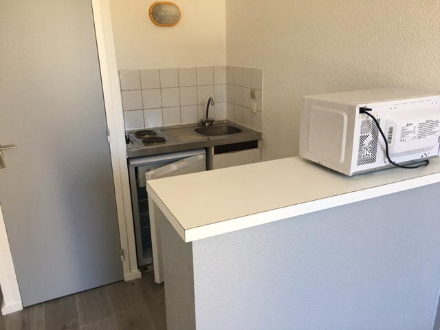 A LOUER ROANNE UNIVERSITE IUT Appartement de type studio sis 43, boulevard de Belgique situé au rez de chaussée d'une superficie de 29 m2 comprenant : séjour chambre avec placard de rangement (penderie, rayonnages), coin cuisine équipée avec kitchenette (2 plaques électriques, réfrigérateur, placard de rangement sous évier, placard de rangement supplémentaire, bar américain avec rayonnages donnant sur le séjour chambre) salle de bains avec cabine de douche, wc) .Chauffage individuel électrique. Interphone. Emplacement pour vélos. Dépôt de garantie : 290 euros. Frais d'agence : 200 euros TTC, Frais réduits pour les étudiants : 180 euros TTC.