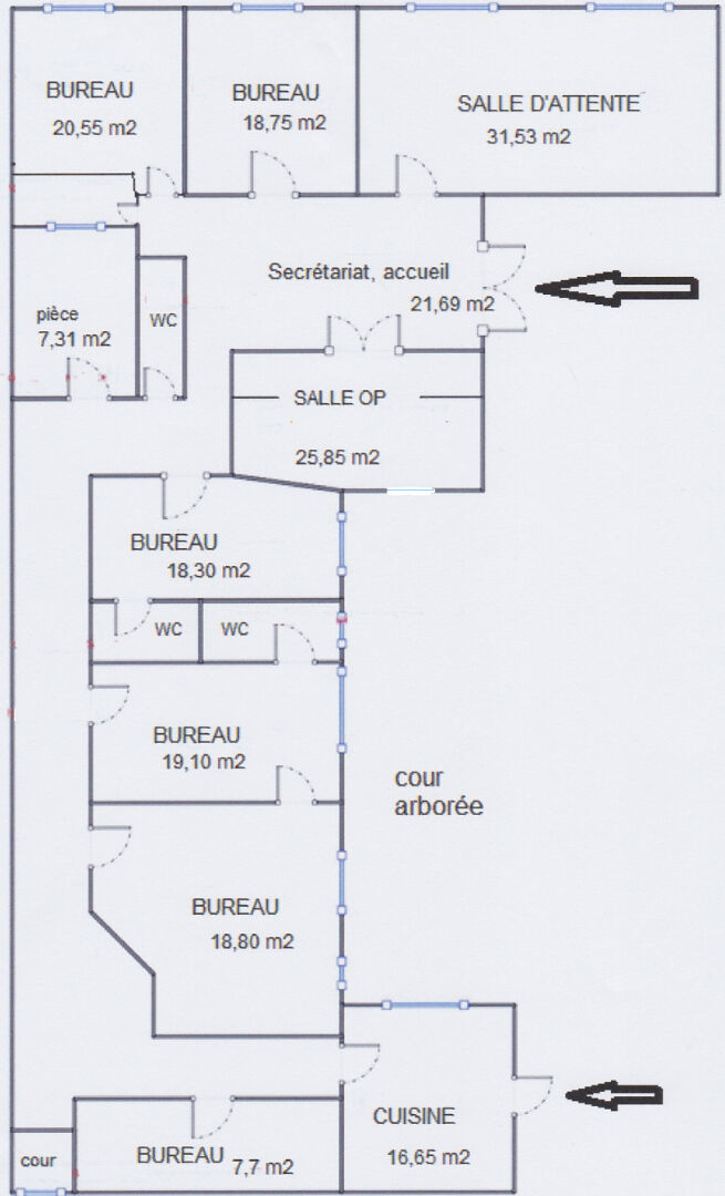 Quartier Foch/Victor Hugo. Dans un immeuble de standing en pierres de taille de 1890 avec gardienne et sécurisé. Un local professionnel traversant de 258 m2 en rez-de-chaussée et sur cour arborée au calme comprenant un accueil/secrétariat, une grande salle d'attente de 31 m2, 6 bureaux, une cuisine, sanitaires, 2 courettes. Beaucoup de charme avec une hauteur sous plafond de 3,20 m, parquet en point de Hongrie, cheminée, moulures. Deux chambres de service et deux caves complètent ce bien d'exception. Prix du bien 3.500 k euros + 5,7 % d'honoraires agence, soit un total de 3.700 k euros HAI. Possibilité d'acquérir 2 parkings en sus. Contact direct 0652740518 Muriel Garnreiter, muriel@rez-de-chaussee.com, RSAC 2018AC00169. Copropriété de 77 lots - dont 13 lots habitation.(). (RDC) Muriel GARNREITER (EI) Agent Commercial - Numéro RSAC : - .