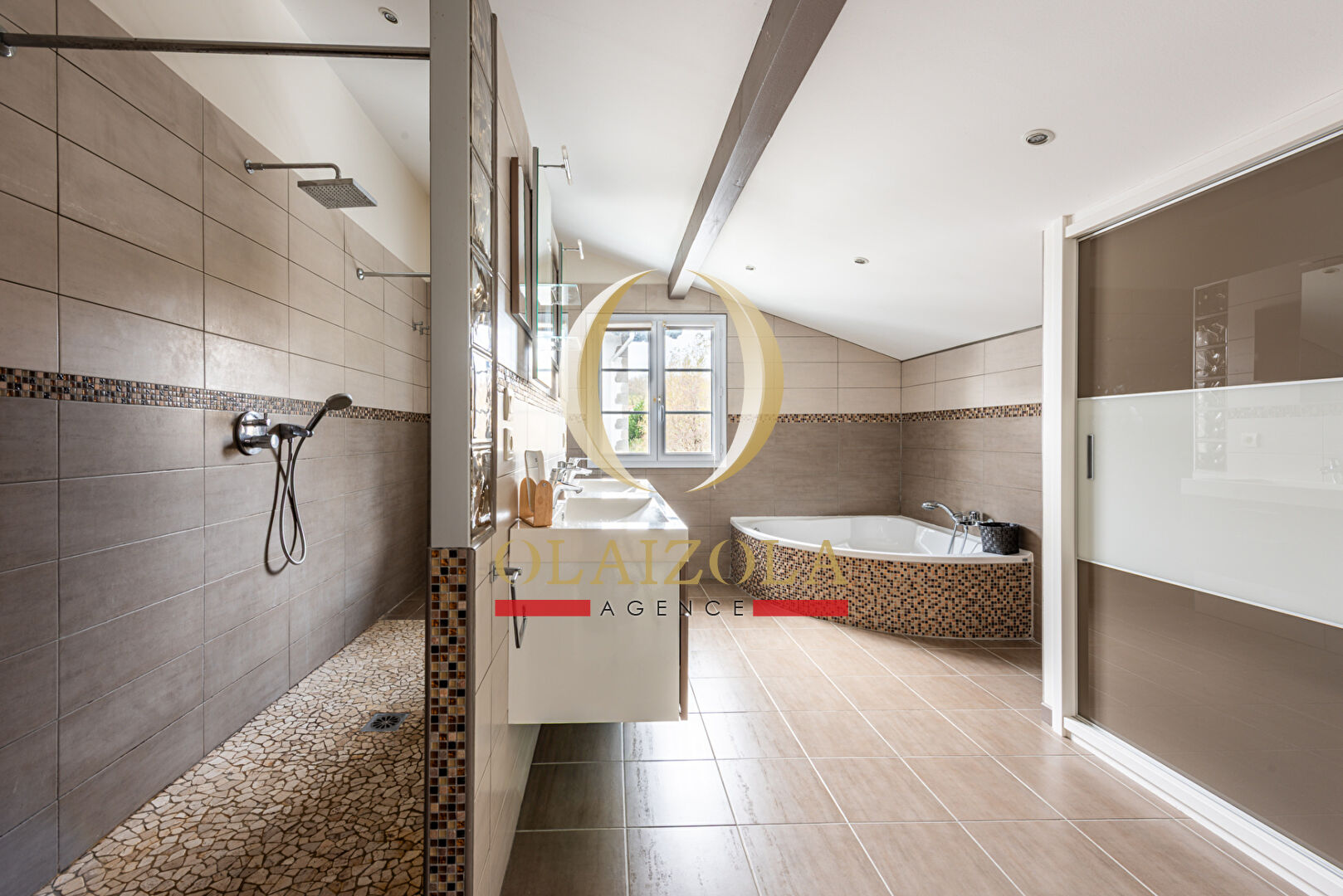 Construite en 2011 en auto-construction soignée, cette maison en excellent état général se situe dans un quartier calme et verdoyant de Saint-Pée-sur-Nivelle, à proximité immédiate des commodités. Édifiée actuellement sur un terrain d'environ 600 m² au sein d'une copropriété horizontale de seulement deux lots, elle bénéficie d'une belle exposition plein sud, sans vis-à-vis direct, et d'un environnement paisible. Offrant une surface habitable d'environ 150 m² au sol répartie sur deux niveaux, cette propriété séduira par son confort moderne et sa fonctionnalité. Le rez-de-chaussée s'ouvre sur une entrée accueillante menant à un vaste espace de vie comprenant un salon et une salle à manger, prolongés par une cuisine américaine entièrement aménagée et équipée. Cet espace baigné de lumière donne directement sur une terrasse ensoleillée et le jardin. Un espace indépendant, composé d'un WC, d'une salle d'eau et d'une pièce traversante, permet l'accès à un garage de 35 m² par l'intérieur. A l'étage, le palier dessert trois chambres lumineuses dont une avec un grand dressing, ainsi qu'une spacieuse salle de bains comprenant baignoire et douche. L'ensemble de l'étage, mansardé avec une belle hauteur sous plafond (supérieure à 2,4 m), offre un charme indéniable et un confort optimal. Le jardin, orienté sud, est joliment arboré et parfaitement entretenu. Il accueille également un espace de stationnement avec quatre places extérieures, ainsi qu'un abri couvert. Les prestations techniques sont à la hauteur : fenêtres en PVC double vitrage, volets en bois, chauffage au sol par pompe à chaleur air/eau, bonne isolation en laine de verre, et raccordement au tout-à-l'égout. La fibre optique est également installée. Cette maison récente, construite avec soin et nichée dans un cadre résidentiel calme, représente une belle opportunité pour une famille à la recherche de confort, d'espace et de tranquillité. Notre agence vous accueille téléphoniquement du lundi au samedi, de 8h à 19h, afin de répondre à toutes vos questions et de vous accompagner dans vos projets immobiliers. N'hésitez pas à nous contacter pour obtenir des informations personnalisées et un suivi attentif de vos démarches. Référence : OLAVJSJ1421 VENTE IMMOBILIER SAINT PÉE SUR NIVELLE HONORAIRES CHARGE VENDEUR Les informations sur les risques auxquels ce bien est exposé sont disponibles sur le site Géorisques : www.georisques.gouv.fr. Copropriété de 2 lots - dont 2 lots habitation. Jara SAUBOT DE JUAN (EI) Agent Commercial - Numéro RSAC : 819628702 - Bayonne.