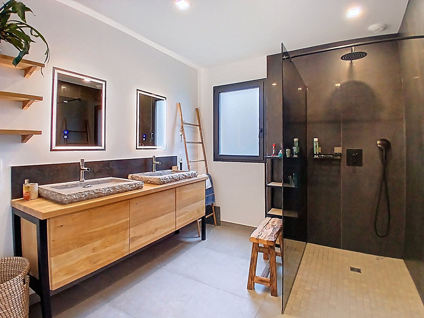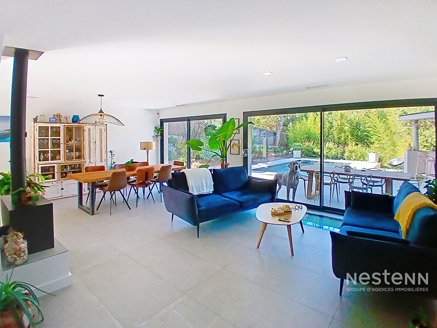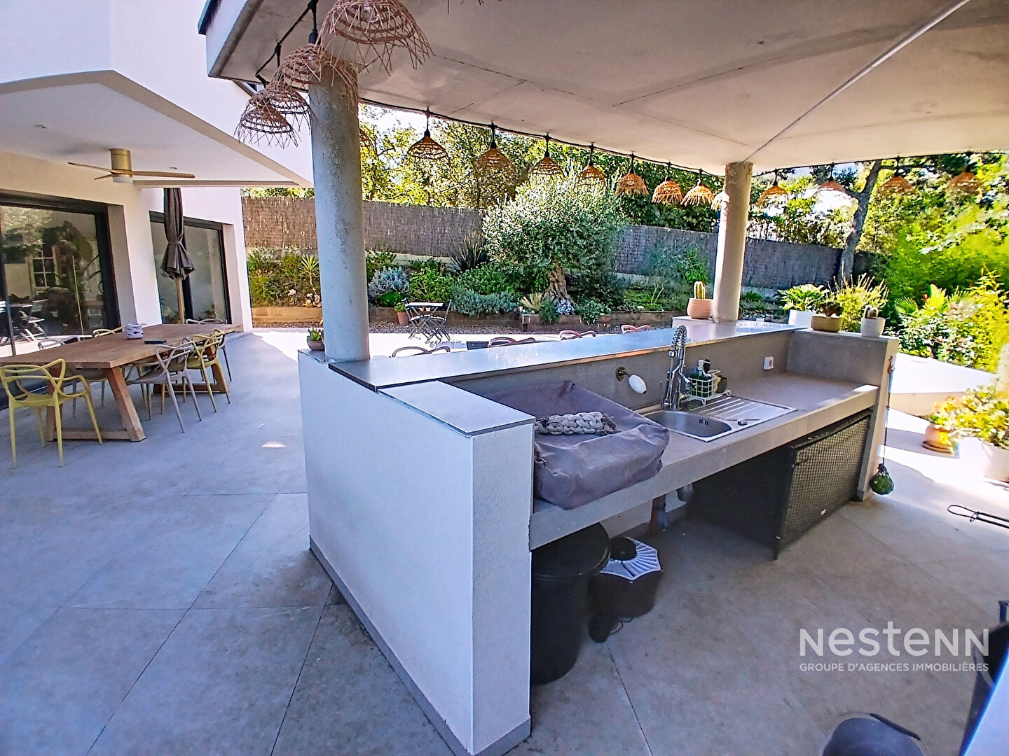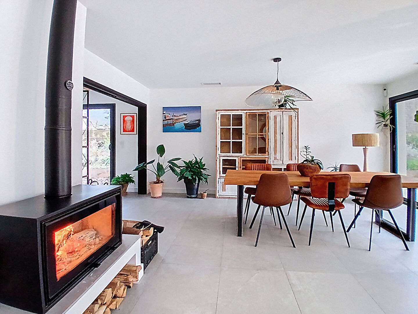 Découvrez cette magnifique maison à vendre, située à Villelongue Dels Monts, proche Argelès sur Mer, offrant un cadre de vie exceptionnel. D'une surface de 192m², cette propriété moderne construite en 2023 dispose de 5 pièces, dont 4 chambres spacieuses, dont 2 au rez-de-chaussée. Vous apprécierez la cuisine américaine aménagée et équipée, ainsi que le grand séjour de 47 m², parfait pour recevoir vos proches. Le confort est au rendez-vous avec un mode de chauffage par climatisation réversible et électrique, ainsi qu'un poêle à bois pour des soirées chaleureuses. La maison est également équipée de 19 panneaux solaires, garantissant une consommation énergétique optimisée. A l'extérieur, vous profiterez d'un terrain de 1040 m², d'une piscine maçonnée au sel de 7x3 mètres, et de deux terrasses pour profiter des journées ensoleillées. Le garage double et la cave ajoutent une touche de praticité à cette propriété. Située dans un quartier prisé et calme, cette maison est à proximité de plusieurs écoles, ce qui en fait un lieu idéal pour les familles. Les fenêtres en aluminium double vitrage assurent une excellente isolation. Ne manquez pas cette opportunité rare d'acquérir un bien de prestige dans un état général très bon, avec des équipements modernes tels que l'alarme, le portail électrique et la fibre optique. Contactez l'agence NESTENN Saint-Génis-des-Fontaines pour plus d'informations et pour organiser une visite. Grégory JEAN (EI) Agent Commercial - Numéro RSAC : - .