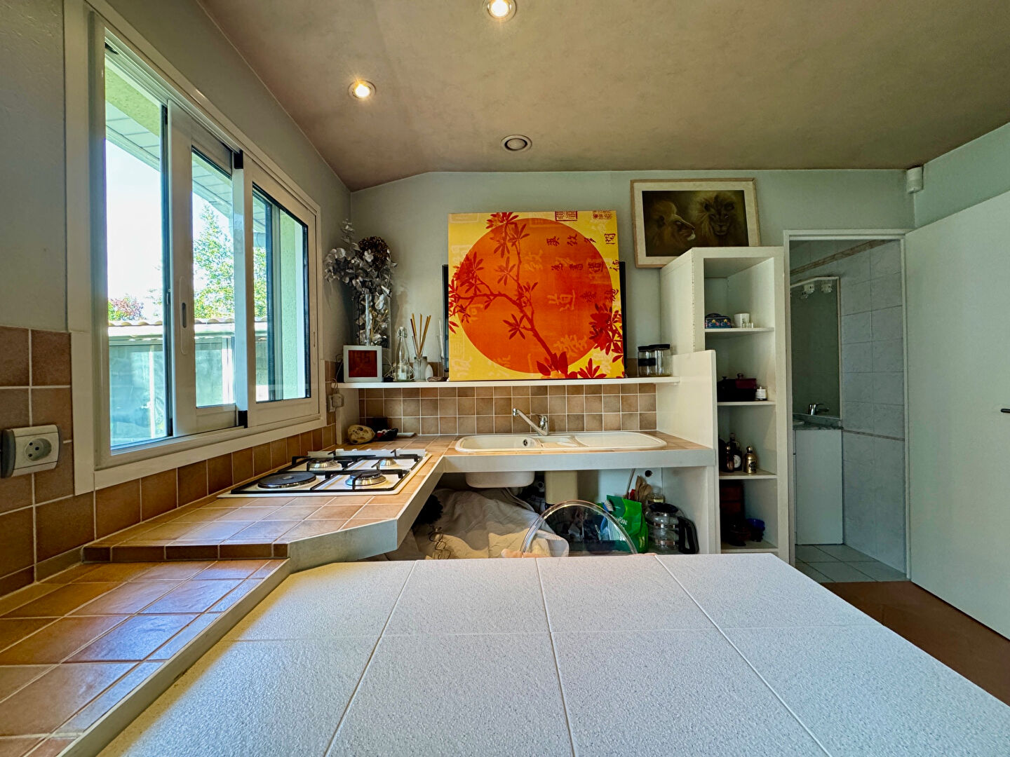 Dans une rue calme de Talence, à 10 minutes à pieds du tram B (arrêt PEIXOTTO) et de la faculté de Sciences, très belle maison rénovée de 135 m² habitables sur une parcelle de 830 m², avec un garage double et un studio indépendant de 22 m² pouvant offrir un revenu locatif ou idéal pour un enfant étudiant. La maison comprend un séjour de 43 m² orienté Ouest avec une cheminée (insert), une cuisine séparée aménagée et équipée, trois chambres, un bureau pouvant faire office de 4ème chambre, une salle de bains avec baignoire balnéo et douche hamam, un WC, un dressing et une buanderie. Le studio, avec sa propre entrée, dispose d'une pièce de vie avec cuisine aménagée ouverte et d'une salle d'eau avec WC. Le garage permet de stationner 2 véhicules et il dispose d'un bureau attenant de 10 m². L'ensemble est en parfait état et présente de belles prestations (climatisation réversible, volets roulants électriques, alarme, portail automatique). La maison, non mitoyenne, calme, est entourée d'un jardin paysager d'environ 550 m². (3.23 % honoraires TTC à la charge de l'acquéreur.)