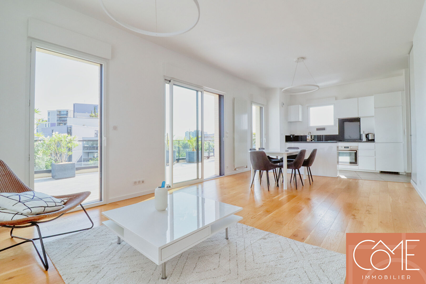 A VENDRE CHEZ CÔME IMMOBILIER - DERNIER ETAGE - APPARTEMENT D'EXEPTION AVEC TERRASE DE 65 M² - QUARTIER CLEMENCEAU - PROCHE GARE et METRO - 2 PARKINGS Le Cabinet Côme Immobilier vous propose ce bel appartement Type 3 en attique, situé au sein d'une résidence de très grand standing livrée en 2022., à deux pas du métro, des commerces, du centre-ville et de la gare. Accessible directement par l'ascenseur, ce bien rare combine confort et prestations haut de gamme, au coeur d'un quartier prisé. Il se compose comme suit : - D'un séjour lumineux avec accès direct à une splendide terrasse de 65,21 m² exposée sud-ouest, sans vis-à-vis avec vue entièrement dégagée. - D'une cuisine ouverte sur le séjour, contemporaine et entièrement aménagée et équipée. - De deux chambres avec rangements intégrés. - Salle d'eau moderne - Cellier et placards - De WC 2 places de stationnement en sous-sol sécurisé sont également proposé avec ce bien. Découvrez tous nos biens en vente sur notre site internet: come-immobilier.fr Réf.. MM-2486. Vidéo immersive sur demande. Les informations sur les risques auxquels ce bien est exposé sont disponibles sur le site Géorisques : www.georisques.gouv.fr (4.00 % honoraires TTC à la charge de l'acquéreur.) Copropriété de 57 lots - dont 26 lots habitation. (Pas de procédure en cours). Charges annuelles : 2340 euros.
