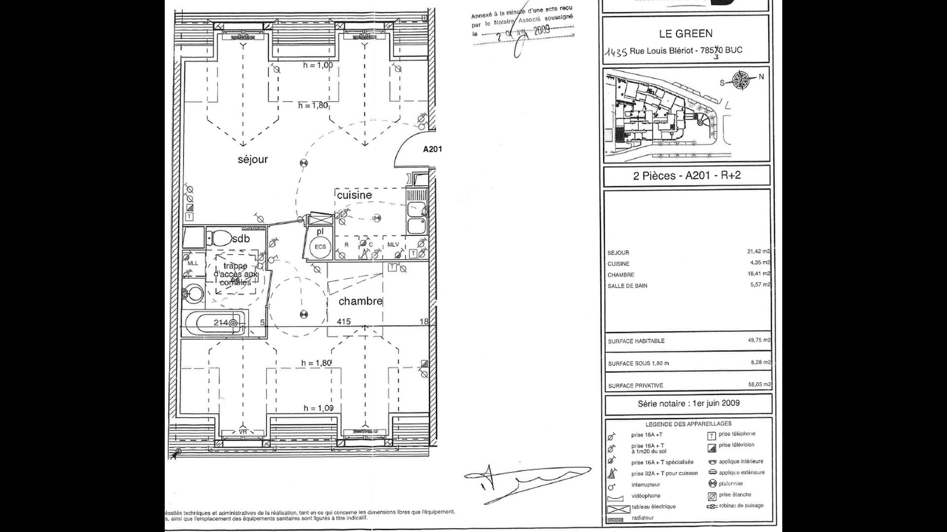 Proche Versailles et forêt, au 2ème et dernier étage d'une résidence de 2010, (avec ascenseur) un grand appartement F2 de 49.73 m² carrez (58,03 m² au sol) . On entre directement sur la pièce de vie avec son coin cuisine équipé, puis un petit couloir desservant la salle de bains avec WC amène à la grande chambre de 18 m² . Beaucoup de charme pour cet appartement atypique et fonctionnel. Une place de stationnement privative au sous-sol de l'immeuble. Le chauffage est individuel électrique. Proche toutes commodités : commerce, boulangerie, restaurant, bus vers la gare des Chantiers, et la forêt accessible des deux cotés de la rue . Diponible le 15 janvier 2026. EXCLUSIVITE Copropriété de 207 lots - dont 73 lots habitation. (Pas de procédure en cours). Charges annuelles : 1200 euros.