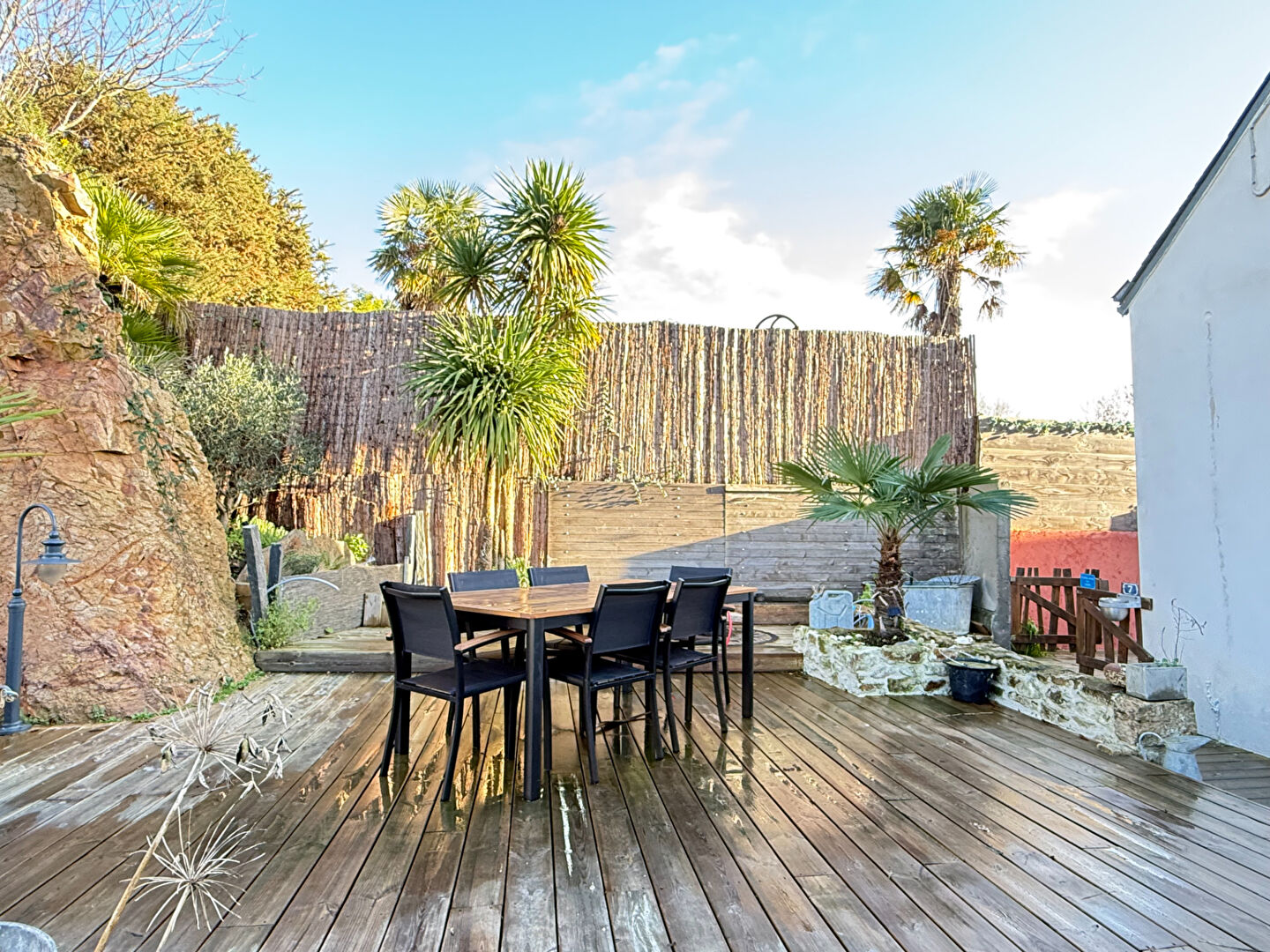 Idéalement située à Auray, à proximité immédiate des commerces et des commodités, cette très belle longère entièrement rénovée allie avec élégance le charme de l'ancien et le confort moderne. Dès l'entrée, vous serez séduit par le cachet authentique de la maison : pierre et bois mis en valeur avec soin, rénovation de qualité, atmosphère chaleureuse et familiale. La maison se compose au rez-de-chaussée : - d'une spacieuse cuisine familiale, entièrement équipée, ouverte sur la terrasse et le séjour - d'un salon-séjour convivial agrémenté d'un poêle à pellets, idéal pour des soirées chaleureuses - d'une chambre de plain-pied avec salle d'eau privative et dressing - d'un WC indépendant - d'une buanderie fonctionnelle A l'étage, vous découvrirez : - trois chambres confortables - une très grande mezzanine, offrant une belle vue dégagée, parfaite pour un espace bureau, détente ou salle de jeux - une salle de bain avec baignoire et douche - un WC indépendant Un petit grenier complète l'ensemble. A l'extérieur, vous profiterez d'un jardin agréable de 218 m², idéal pour les beaux jours, ainsi que d'un atelier / débarras, pratique pour le rangement ou le bricolage. Une maison pleine de charme, rénovée avec goût, rare sur le secteur, parfaite pour une famille ou pour ceux qui recherchent un cadre de vie paisible tout en restant au coeur d'Auray. A découvrir sans tarder ! (6.02 % honoraires TTC à la charge de l'acquéreur.)