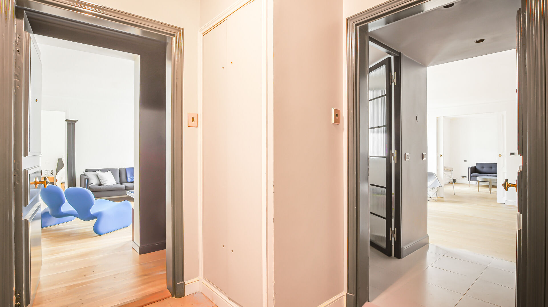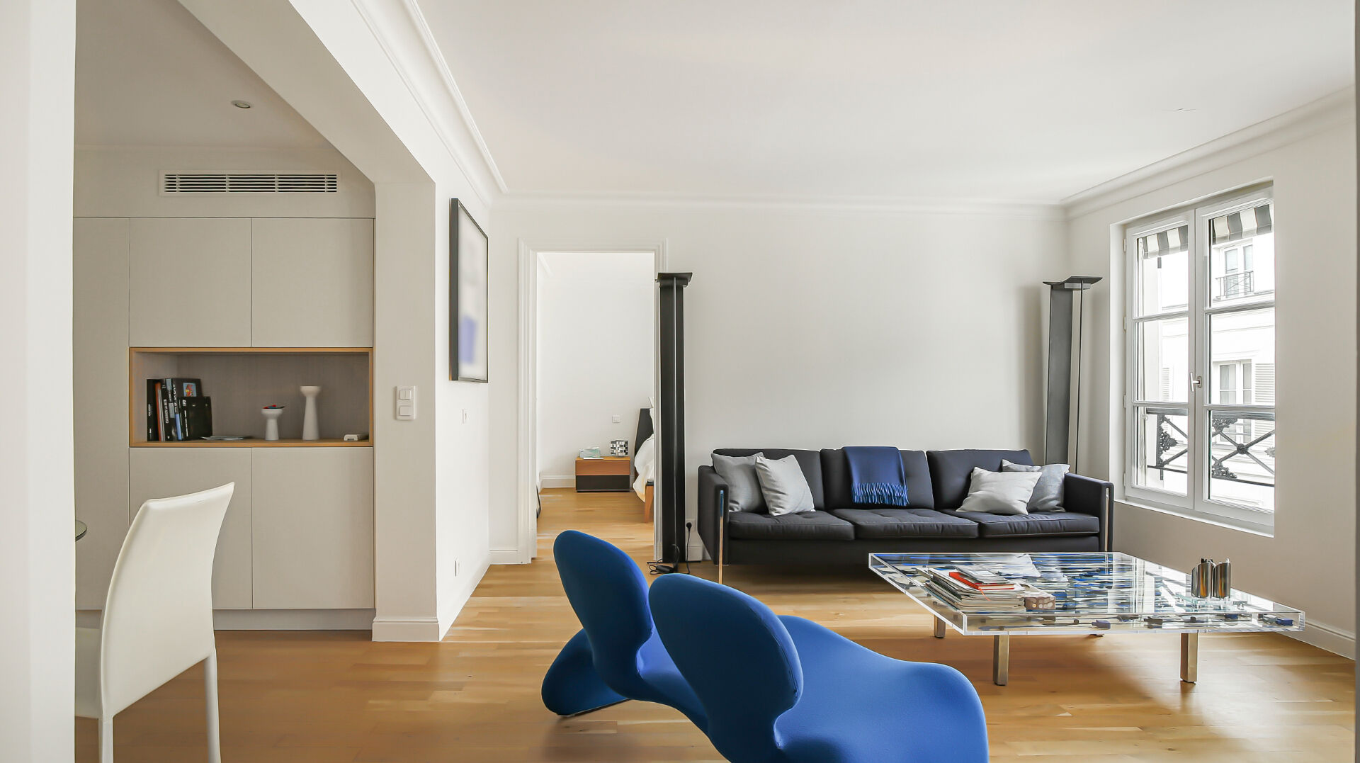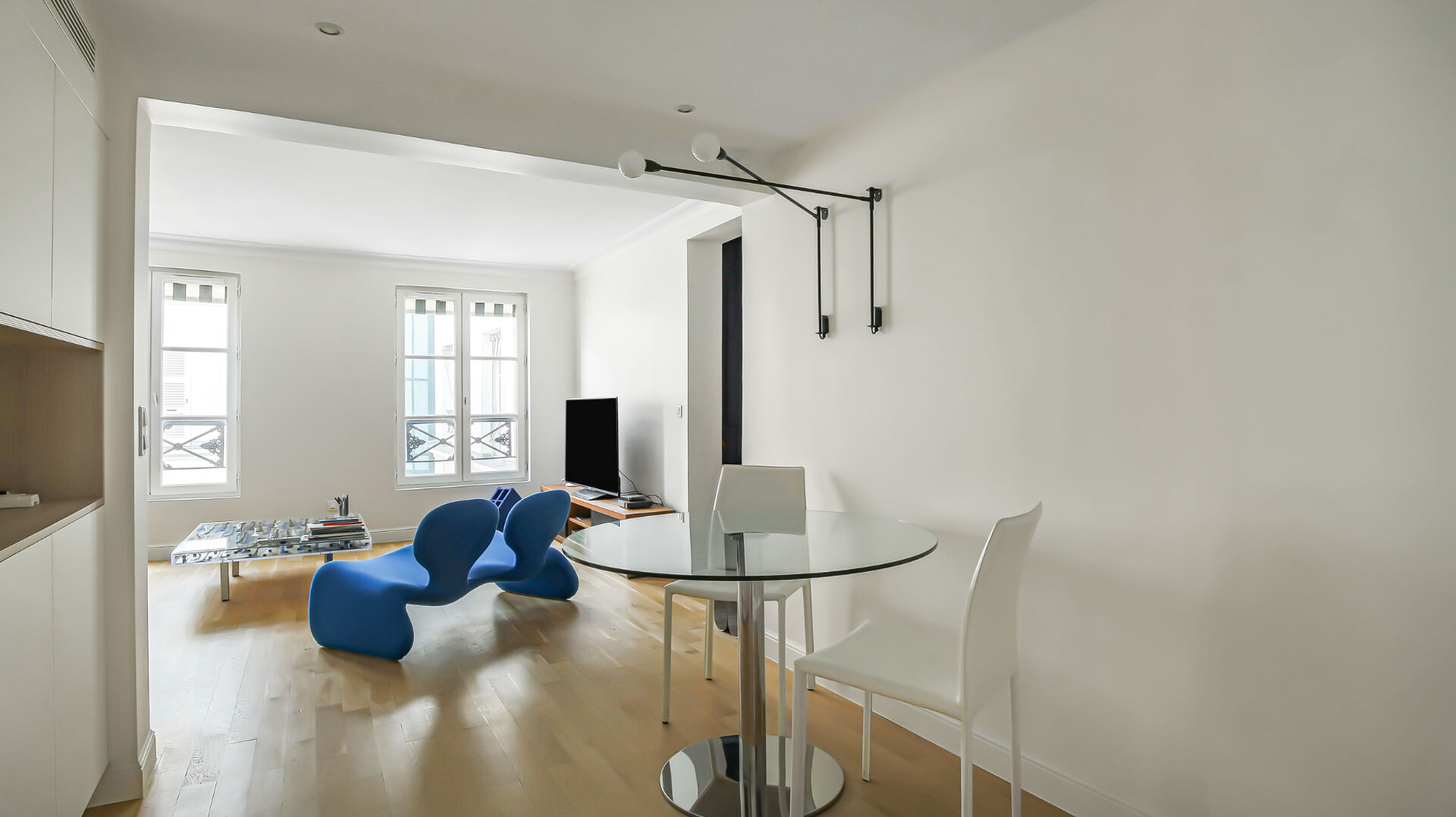 Au cinquième étage, seul sur la pallier, desservi par ascenseur d'un immeuble du XIXe siècle réhabilité et bénéficiant des services d'un concierge, découvrez ce charmant trois pièces entièrement climatisé présenté en deux appartements à réunir. Situé au calme sur cour, il constitue un pied-à-terre idéal ou une agréable résidence principale en plein coeur de Paris. L'adresse profite d'une excellente desserte et se trouve à seulement quelques minutes à pied des Grands Magasins. (5.00 % honoraires TTC à la charge de l'acquéreur.) Copropriété de 26 lots - dont 16 lots habitation. Charges annuelles : 6625.44 euros.