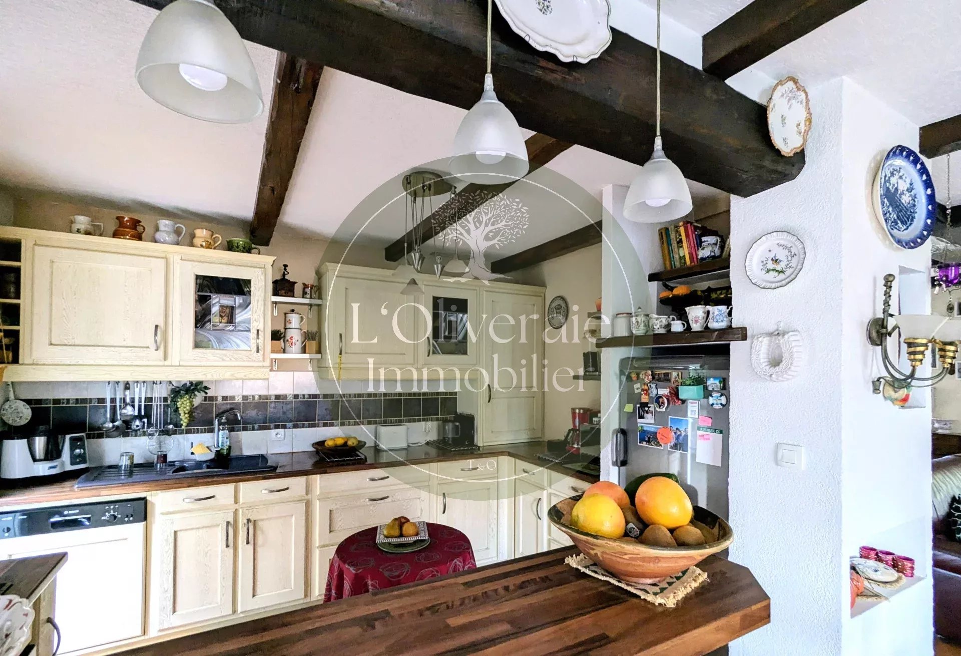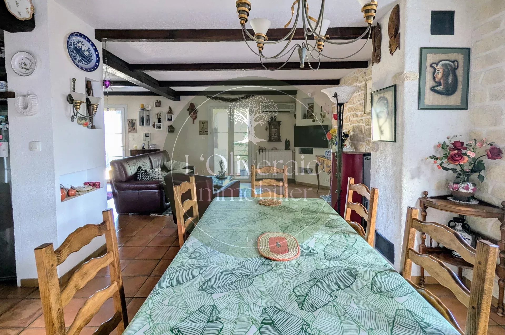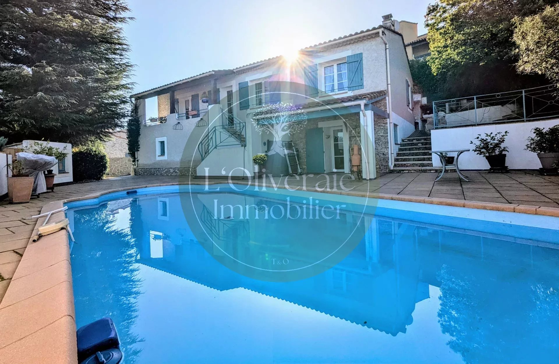 L’Oliveraie Immobilier, vous propose une maison T6 à vendre à La Destrousse, située au calme, à proximité des écoles, des commerces et des accès autoroutiers et de la future gare du tramway. Cette villa 6/7 pièces 160m² sur 760m² de terrain avec vue dégagée sur les collines se compose d’un premier niveau avec séjour-salle à manger cuisine, trois chambres, bureau, salle d’eau et wc. En rez de jardin, avec communication interne, un T2 de 60m². A l’extérieur bel espace piscine, grande terrasse avec barbecue et four à pizza. Garage, espace de rangement et une cave complètent ce bien. Double vitrage récent, poêle à granulé, tout à l’égout, arrosage automatique, portail électrique… Votre contact Tristan Bertin. Les informations sur les risques auxquels ce bien est exposé sont disponibles sur le site Géorisques http://www.georisques.gouv.fr Pour plus de détails contactez-nous ou consultez notre site pour découvrir toutes nos offres. L’Oliveraie Immobilier, votre agence immobilière à La Destrousse, vous accompagne pour la vente ou l’achat d’un bien immobilier sur les communes de La Destrousse, La Bouilladisse, Auriol, Peypin, Roquevaire et alentour.