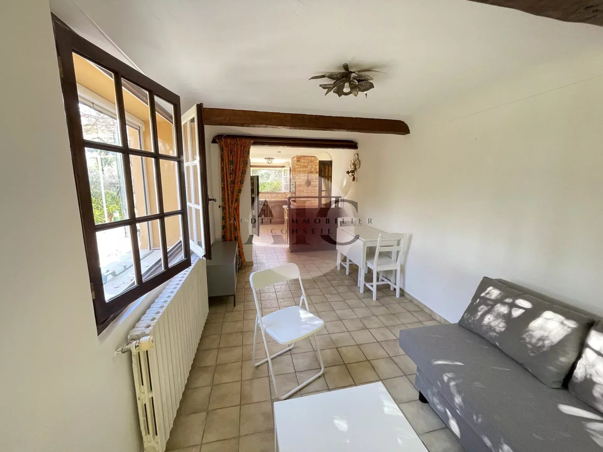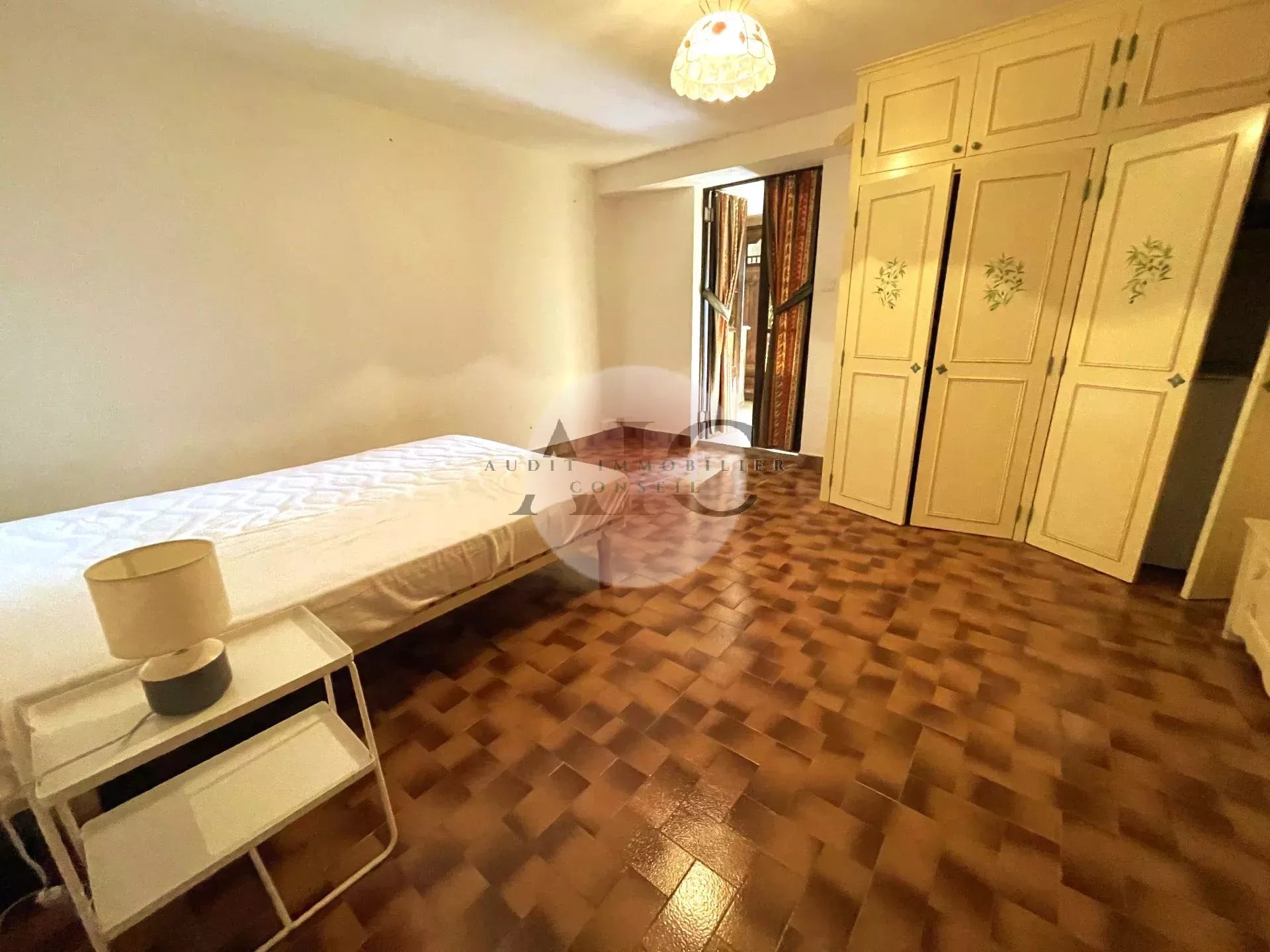 A LOUER MEUBLE: Appartement deux pièces en rez-de-jardin d'une villa individuelle (secondaire), d'une surface de 46m² avec stationnement, jardin privatif et accès piscine. Distribuée de plain-pied: une pièce de vie avec coin cuisine équipée, une chambre avec salle d'eau/wc. Accès facile, au calme sans vis à vis, proche de toutes commodités. LOUE 995€ dont un forfait de 320€ de charges comprises (eau, Elec, chauffage fuel, entretien jardin et piscine).