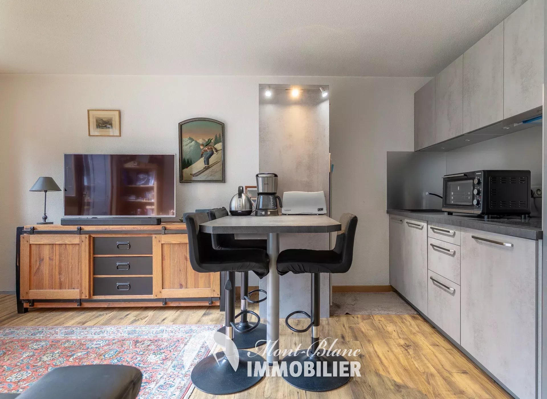Dans une des résidences les plus prisées de Chamonix, à seulement 15 minutes à pied du centre-ville et à proximité immédiate du golf et du télécabine de la Flégère. Situé au 3ᵉ et dernier étage, cet appartement de 2 pièces + chambre cabine d’une superficie de 36 m2, rénové récemment offre une vue exceptionnelle sur la chaîne du Mont-Blanc Il est ainsi distribué : entrée, pièce de vie avec cuisine équipée ouverte sur le séjour et accès sur un balcon de 6 m2 au balcon, chambre double avec placards intégrés, chambre cabine/bureau avec rangement, salle de douche et de toilettes séparées. Atouts supplémentaires : place de parking privative en souterrain, cave et casier à skis. Copropriété de 148 lots, calme et ensoleillée, ce bien est idéal comme pied-à-terre à la montagne et un investissement locatif en hiver comme en été.