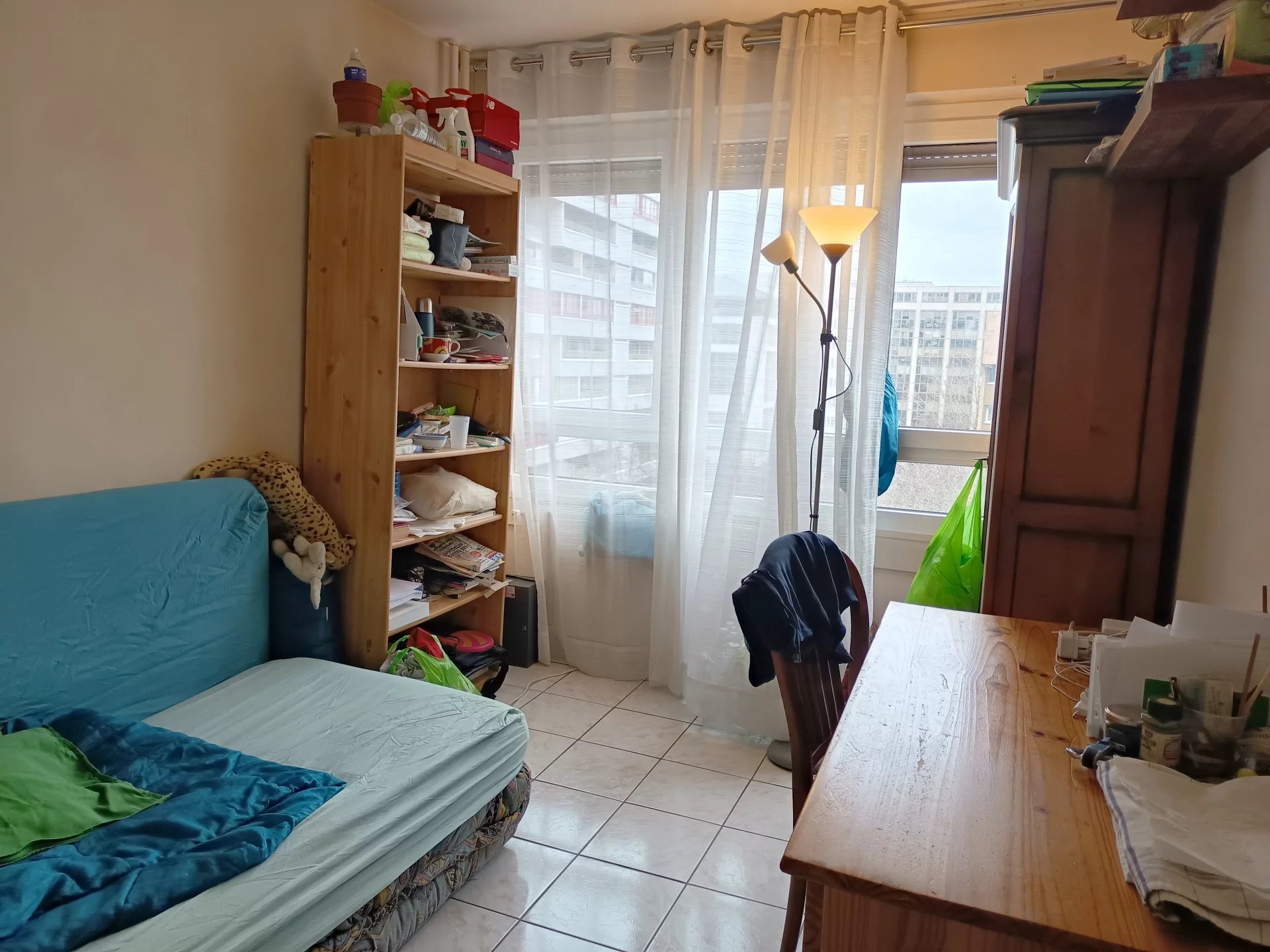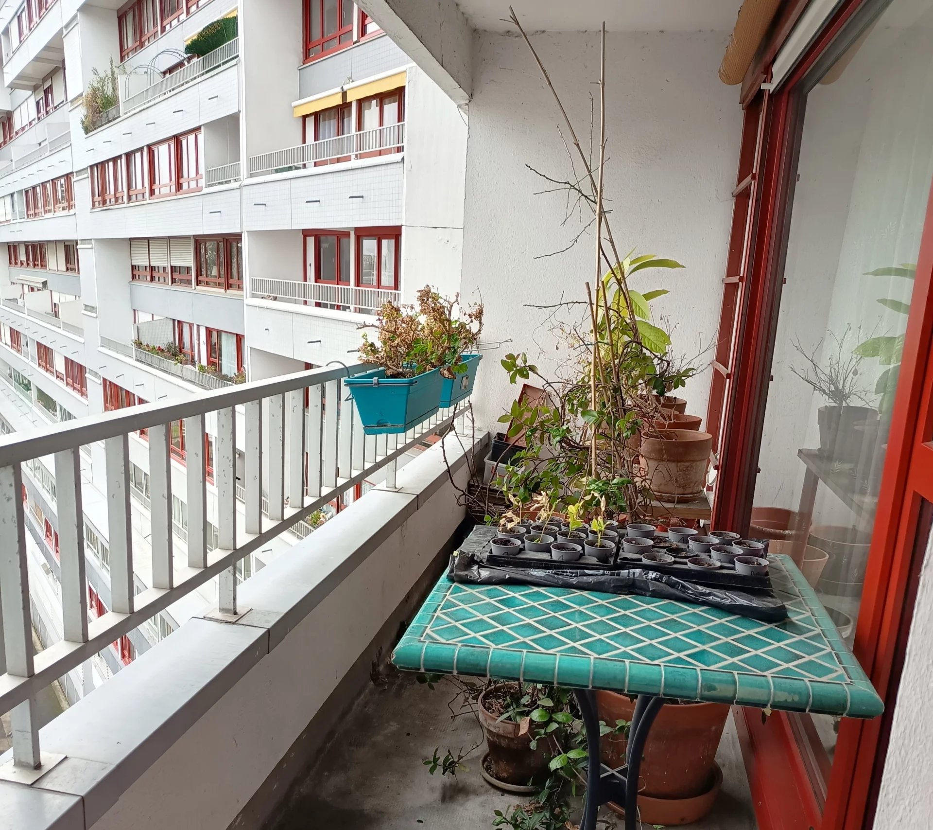 La pièce de vie et la cuisine ouvrent sur un agréable balcon donnant sur le parc Malraux avec une exposition sud ouest.