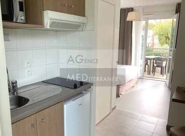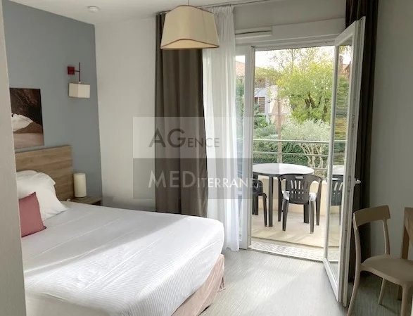 MANDELIEU LA NAPOULE - Dans résidence de tourisme avec piscine, STUDIO de 22,35 m² sous gestion touristique, en très bon état intérieur, avec climatisation réversible et profitant d'une terrasse. Avec parking privatif en sous-sol. Loyer garanti (469,92 € net/mois). Très faibles charges de copropriété. Bail commercial à échéance au 31/03/2028.