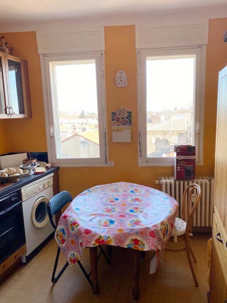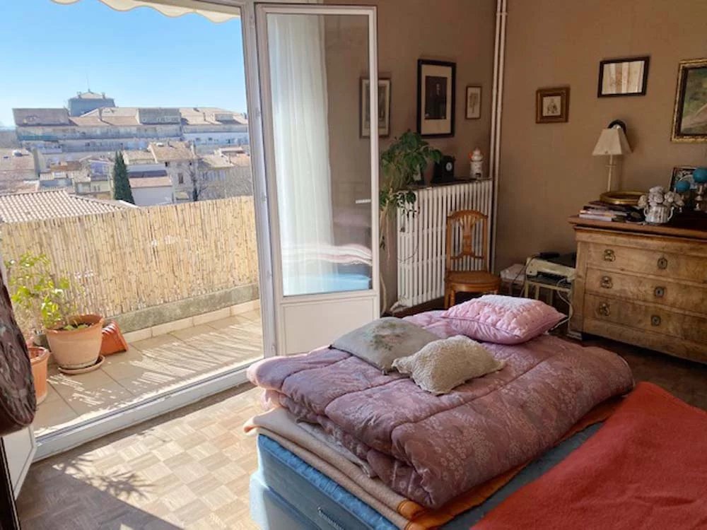 Avignon Intra-Muros, quartier central, au calme! Une très agréable Vue dégagée pour cet appartement de 3/4 pièces principales avec beau Balcon au Sud. Au 5° étage avec Ascenseur d'un joli, petit immeuble très bien tenu, cet appartement baigné de lumière de ????? m² habitables bénéficie de 3 expositions. Séjour double donnant sur le Balcon, 2 chambres, cuisine, salle d'eau et toilettes séparées... Cave. Habitable tout de suite, des travaux de rafraichissement s'imposent néanmoins. Soumis au statut de la copropriété (copro de 12 lots principaux). Charges copro courantes (y compris Chauffage): 2360 €/an