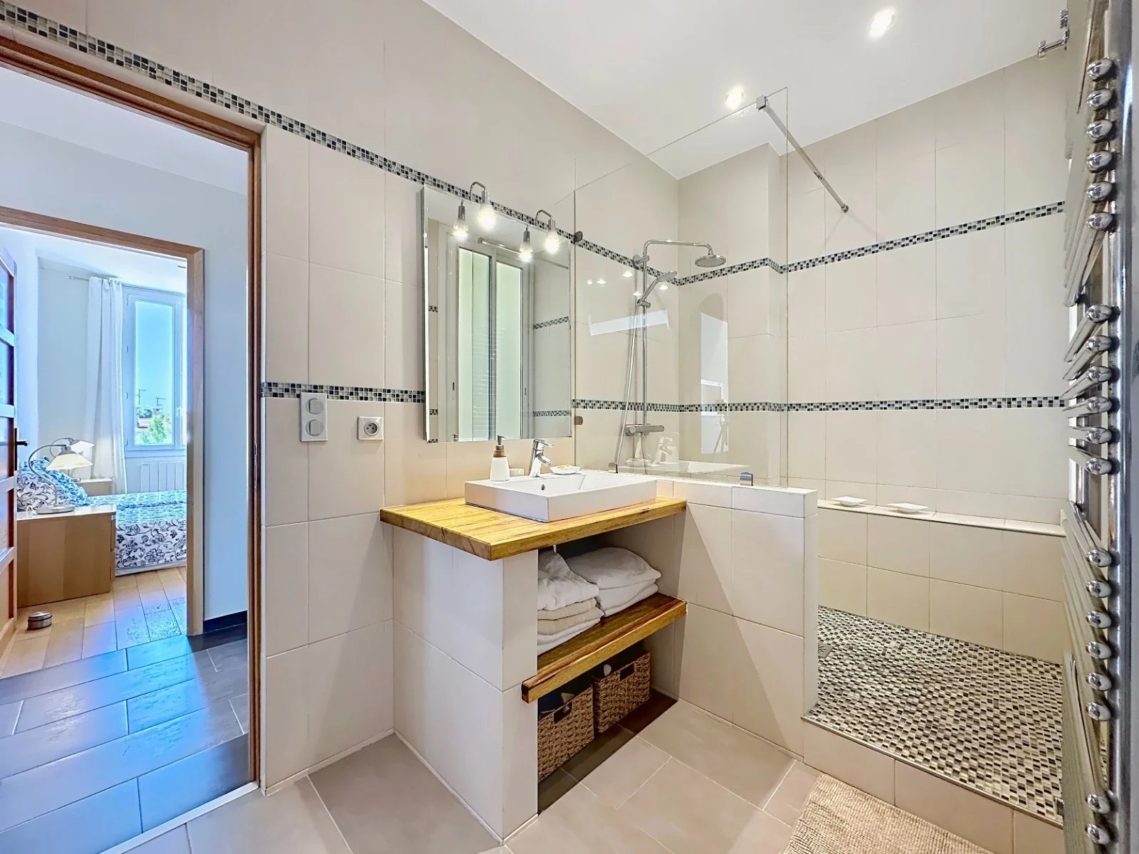 Doté d'une belle hauteur sous plafond, d'une climatisation nouvellement installée dans la pièce de vie, il bénéficie d’une luminosité exceptionnelle et d’un agencement pensé pour le bien-être.