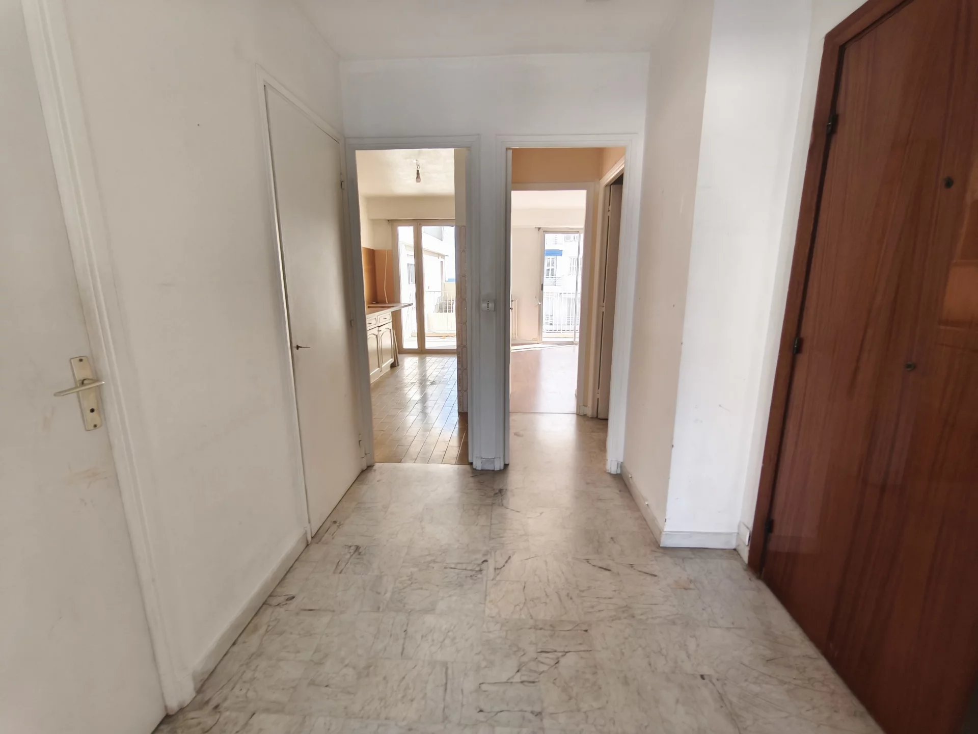 NICE RUE DE FRANCE. VUE MER. A DEUX PAS DE LA PROMENADE DES ANGLAIS. ETAGE ELEVE. TERRASSE ET BALCON. Dans un immeuble de très bon standing de 1976 au 4ème étage avec ascenseur. Appartement de type 2 pièces de 55m² (transformable en 3 pièces possible). Il se compose d'une entrée avec un dressing, un séjour de 21m² donnant sur une terrasse exposée nord/ouest soleil couchant, une cuisine indépendante, une chambre au calme donnant sur un balcon de 8m², une salle de bain et un WC indépendant, Traversant sud/est et nord/ouest. Une cave. Charges: 158€ par mois en tout collectif, chauffage, eau chaude et froide comprise. TF: 1325€. Lots: 54. Proche des commerces de proximité, tramway au pied de l'immeuble. Promenade des Anglais derrière l'immeuble, rue de France niveau Baumettes et Magnan.