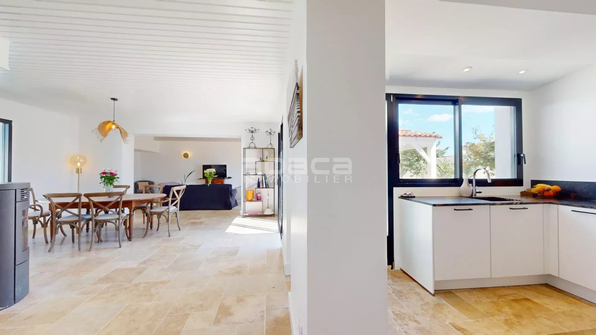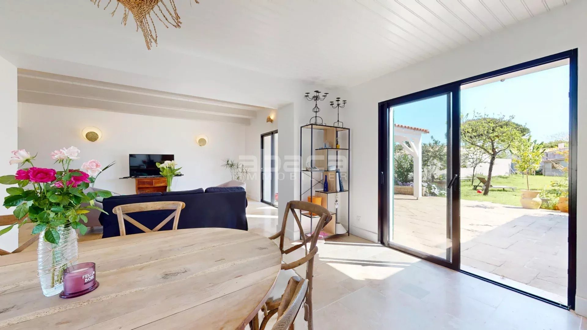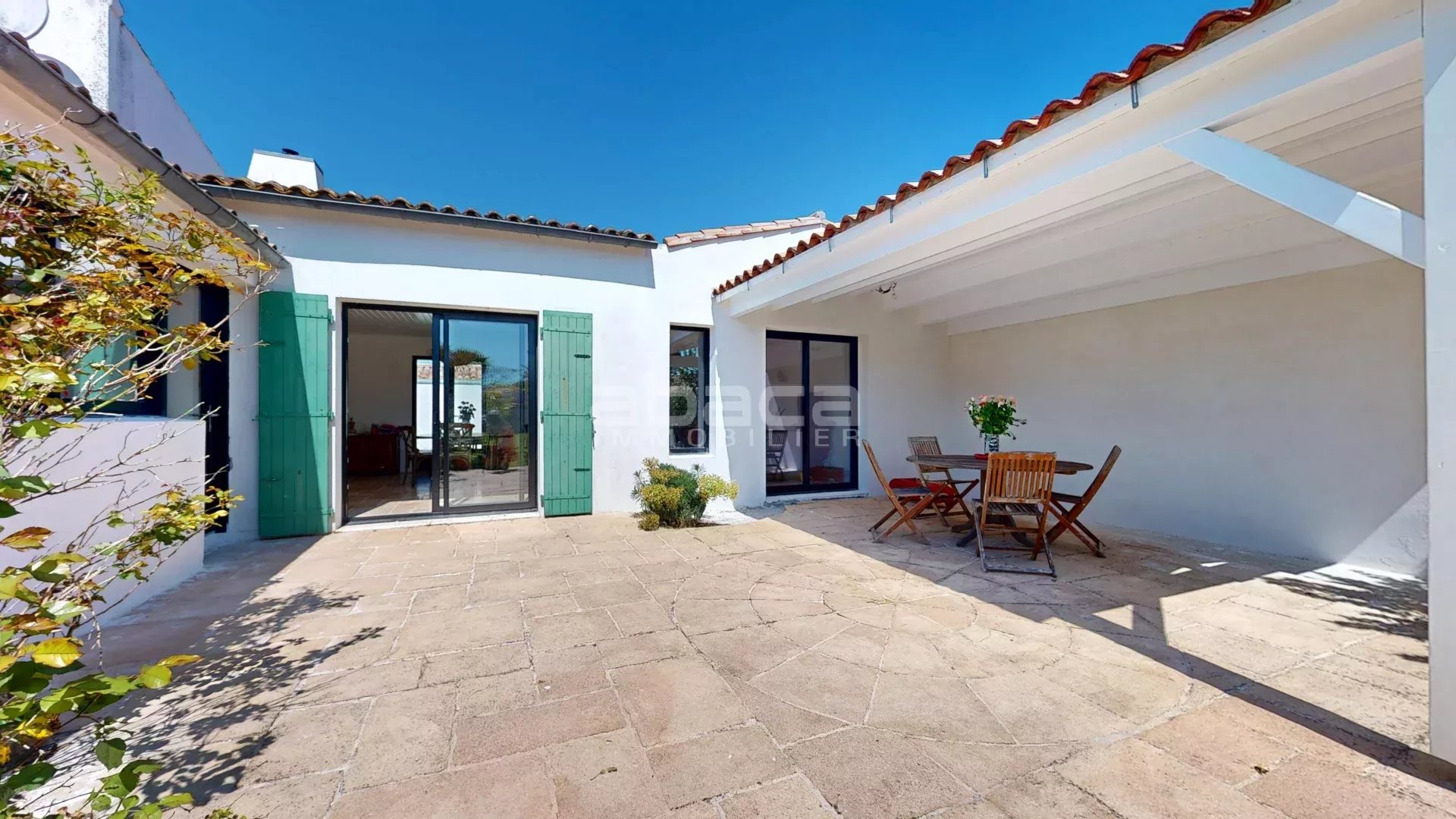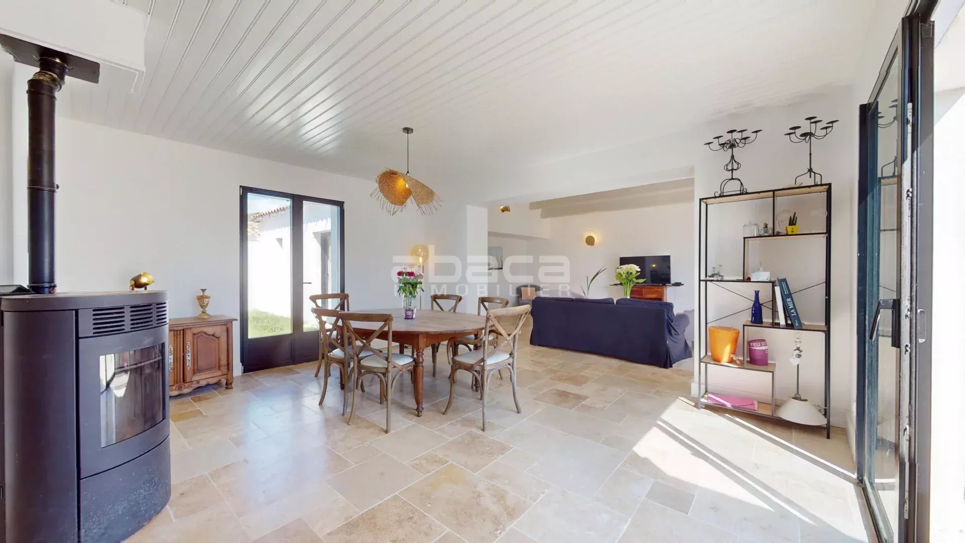 Dans le charmant village de Loix Maison de 145.91 m², sur un terrain de 1001 m² Composée d'une belle pièce de vie lumineuse, ouverte sur une terrasse et sur le jardin paysager et clos, une cuisine américaine aménagée et équipée, 4 chambres. Beau jardin paysager, préau.