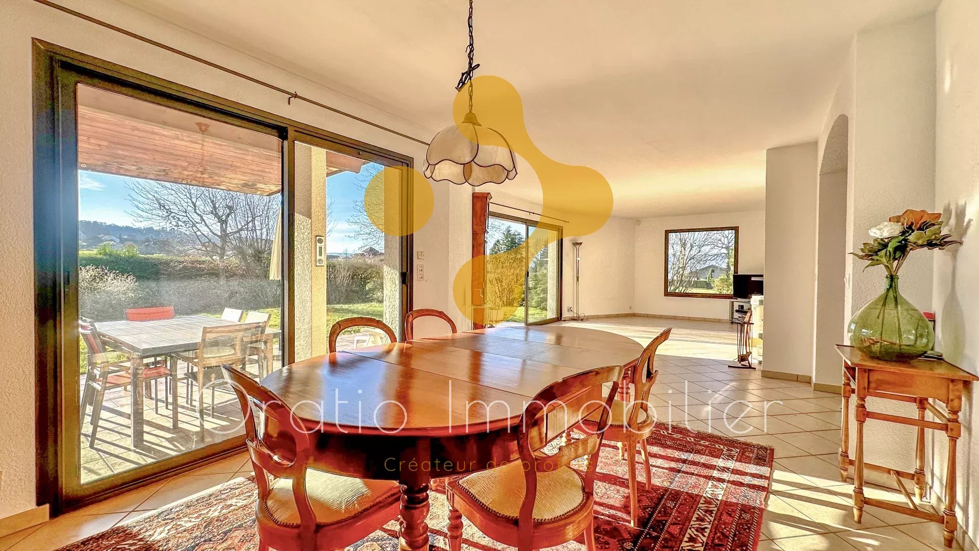 Découvrez sans tarder cette superbe villa familiale située à Présilly, proche de Feigères, dans un lotissement calme et résidentiel très prisé, en direction de la frontière genevoise. Cette villa d'architecte construite en 1994 d’environ 160m² utiles (140m2 habitables), propose un vaste séjour très lumineux, quatre belles chambres dont une au rez-de-chaussée, 3 salles d'eau, une cuisine aménagée, et un grand espace extérieur arboré de plus de 1000m2. Avec une exposition sud-ouest offrant une belle vue sur le village et la campagne environnante, elle convient parfaitement aux familles en quête de calme, d'ensoleillement et d’espace. La maison, parfaitement entretenue, bénéficie également d’un sous-sol complet d'environ 78m2 comprenant garage, buanderie, cave à vin, atelier, chaufferie, et dressing, permettant d’aménager de nombreux espaces à votre convenance.