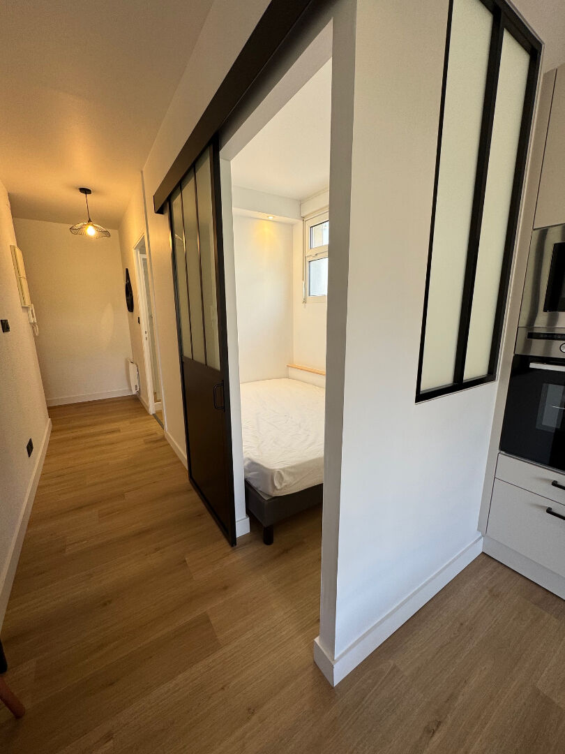 RENNES - RUE SURCOUF Au premier étage d'une résidence sécurisée et idéalement située, venez découvrir ce bel appartement de T1bis entièrement refait à neuf et comprenant : une entrée avec placard, une salle d'eau avec W.C, un coin nuit séparé, une pièce principale ouverte sur une cuisine aménagée et équipée (plaque de cuisson vitrocéramique, réfrigérateur, hotte, lave-linge). Un balcon avec vue dégagé et une place de parking en sous-sol complètent le tout. Libre de suite. Loyer : 800,00 euros + charges : 40,00 euros (entretien des parties communes, eau froide et ascenseur) - Dépôt de garantie : 800,00 euros - Honoraires : 314,47 euros. Référence : 800 - Tél : 02.99.79.77.73