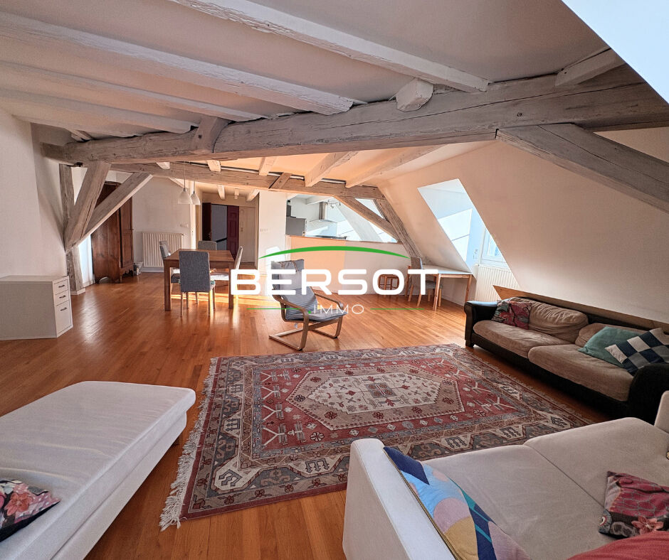 Situé en plein coeur du centre-ville de Besançon, cet appartement en duplex bénéficie d'un emplacement privilégié, à proximité immédiate des commerces, des services et des transports. Le premier niveau comprend une cuisine ouverte donnant sur un grand salon-séjour, offrant un espace de vie convivial et lumineux, WC indépendants, ainsi qu'un chaufferie / buanderie. A l'étage, l'espace nuit se compose de deux chambres, d'une grande salle de bains et WC indépendants. En annexe, un studio indépendant avec kitchenette et salle d'eau / WC constitue un véritable atout. Il peut être conservé comme logement autonome (idéal location étudiant) afin de générer un complément de revenus, accueillir un proche, ou être très facilement réuni à l'appartement principal pour créer une chambre supplémentaire, type suite parentale. L'agence Bersot Immobilier de Besançon vous propose un bien rare sur le marché, alliant emplacement central, beaux volumes et fort potentiel d'aménagement. Contact : Charline GULLAUD 06 35 29 05 54 / cgullaud@bersot.net