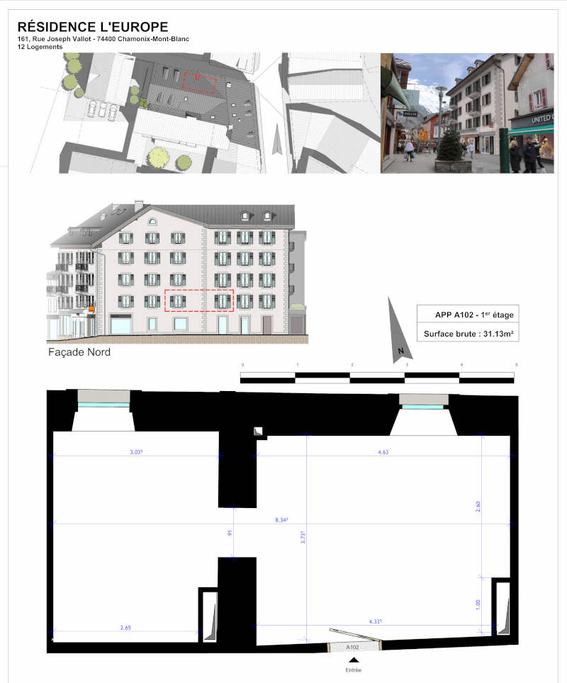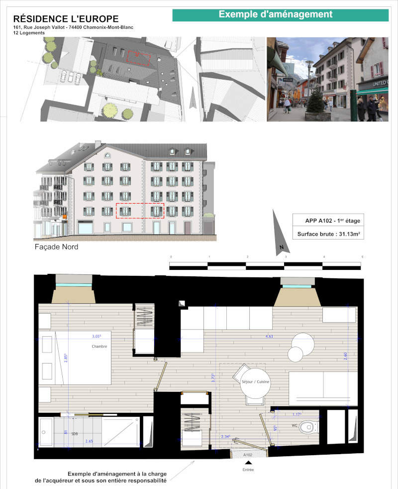 Dans un ancien hôtel situé au centre-ville, qui sera complètement rénové nous vous proposons cet appartement de 31m2, vendu en plateau brut*. Situé au 1er étage de la résidence, ce plateau peut être composé d'une pièce de vie avec coin cuisine et une chambre avec salle de bains, W.C. indépendant. En annexe, une cave et un casier à ski. Idéal investisseur ! La résidence : Une histoire de près de 140 ans C'est François Jullien Couttet, forgeron et maréchal ferrant qui entre 1887 et 1897 construit cet hôtel de 80 chambres au coeur de la rue Vallot. L'hôtel de l'Europe voit le jour en 1897, c'est la Belle Époque ! Il sera exploité jusqu'à la fin des années 50, puis transformé au fil du temps en appartements. 2025 marquera la renaissance de ce beau bâtiment La façade sera restaurée en conservant son architecture et une nouvelle toiture sera posée dans le style qu'elle avait autrefois. L'intérieur sera complètement refait avec création d'un ascenseur, de casiers à ski et de caves. * La copropriété L'Europe comprend 12 appartements du 1er étage au 4ème + combles. Au rez de chaussée, nous retrouvons l'accès aux étages et 3 commerces ne faisant pas partie du programme de commercialisation. *Les appartements sont vendus en plateaux bruts, l'aménagement intérieur sera à la charge de l'acquéreur. Pour tout renseignement complémentaire, contactez-nous. Nota : Les niveaux sont livrés bruts. L'emplacement précis des éléments porteurs et des gaines techniques, ainsi que, les côtes, les surfaces et autres éléments architecturaux sont susceptibles d'évoluer en fonction des impératifs constructifs et des tolérances d'exécution.