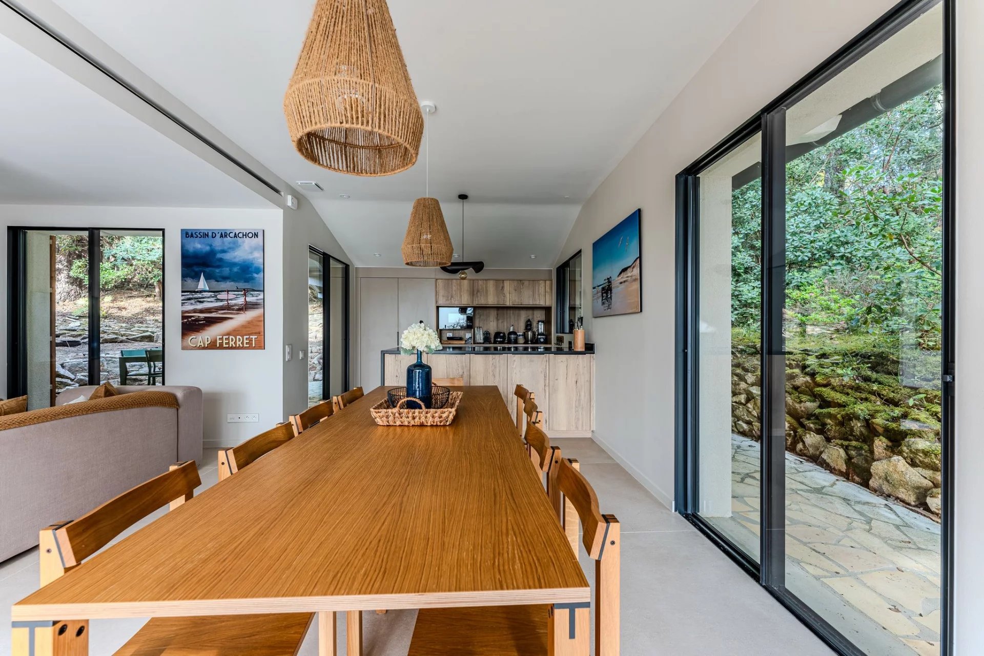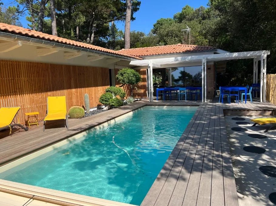 A 400 m de la plage au Pyla, cette villa d'architecte profite d'une magnifique vue sur la mer. La belle pièce à vivre donne sur une grande terrasse exposée plein ouest pour apprécier les plus beaux couchers de soleil. Les 5 chambres se répartissent sur les deux niveaux, 3 pièces d'eau, vestiaires et dressings aménagés. La cuisine ouverte est parfaitement équipée. La piscine de 3 x 9 m occupe un joli jardin paysager. Un bien d'exception avec vue mer et plage à pieds. Les informations sur les risques auxquels ce bien est exposé sont disponibles sur le site https://errial.georisques.gouv.fr/#/